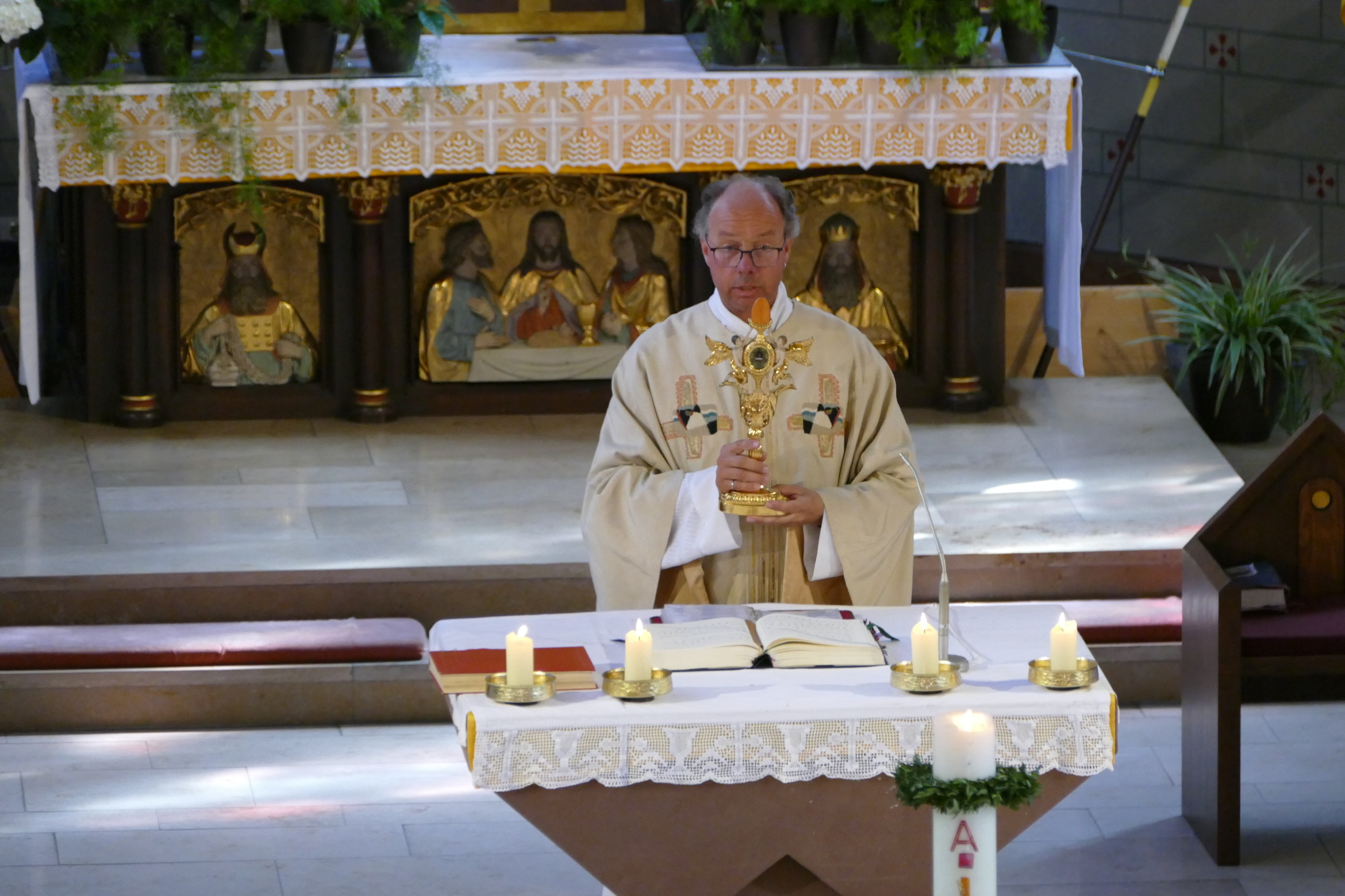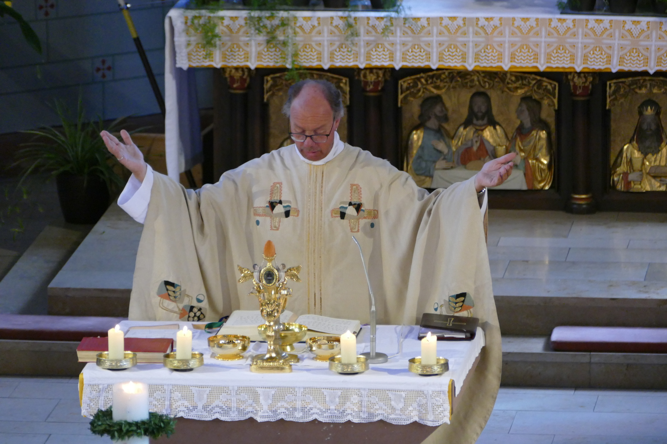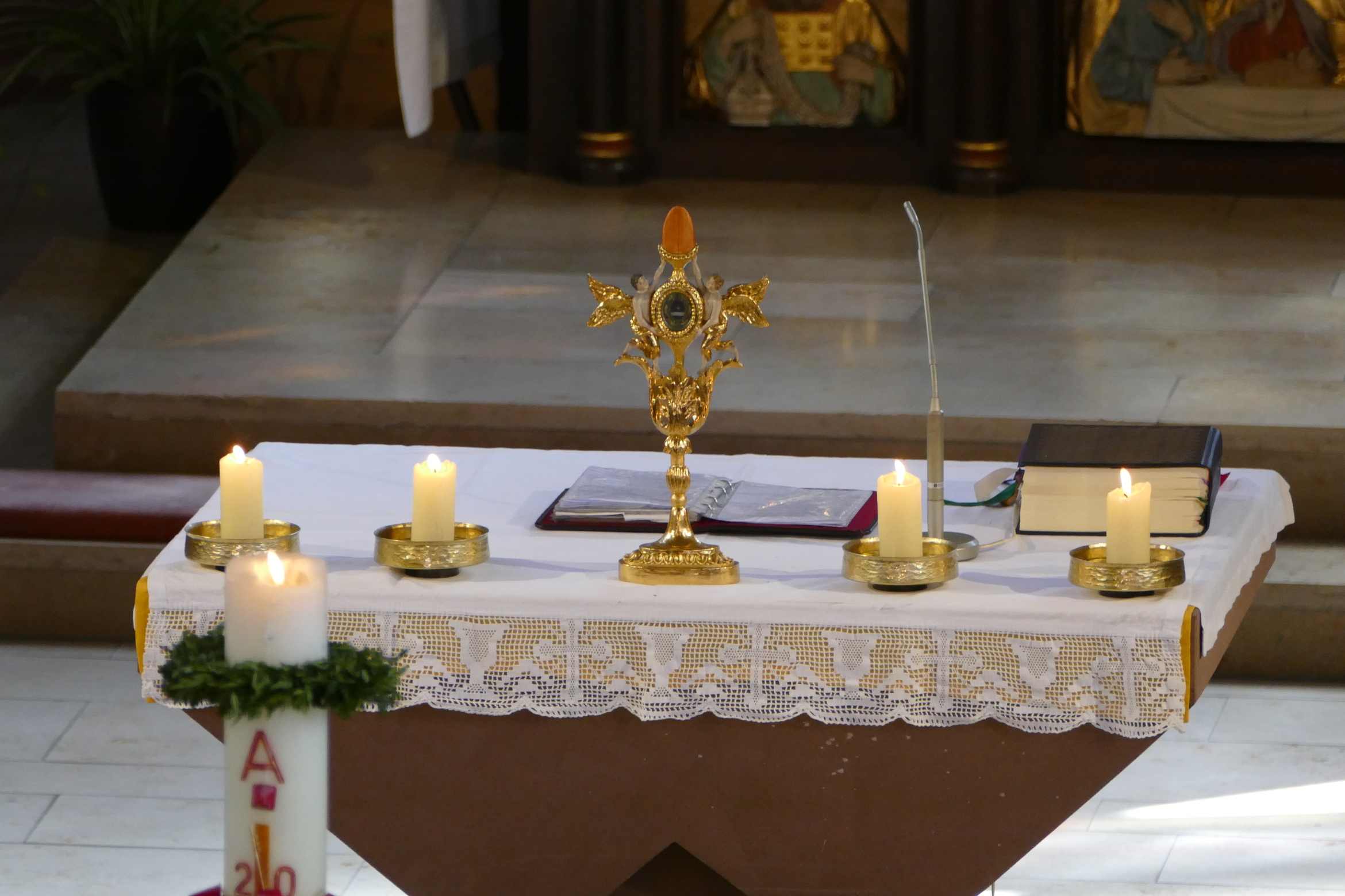 In der Fürbitten wurde um Kraft und Energie für die Aufgaben der Menschen, aber auch für die Rot Kreuz Mitarbeiter gebetet. Gerhard Schwab an der Orgel unterstützte den Gesang der Gemeinde. Die Messfeier schloss mit dem feierlichen Segen, der mit einer Reliquie des Heiligen Johannes Nepomuk, der Ortspatron der Marktgemeinde Kirchzell gespendet wurde.