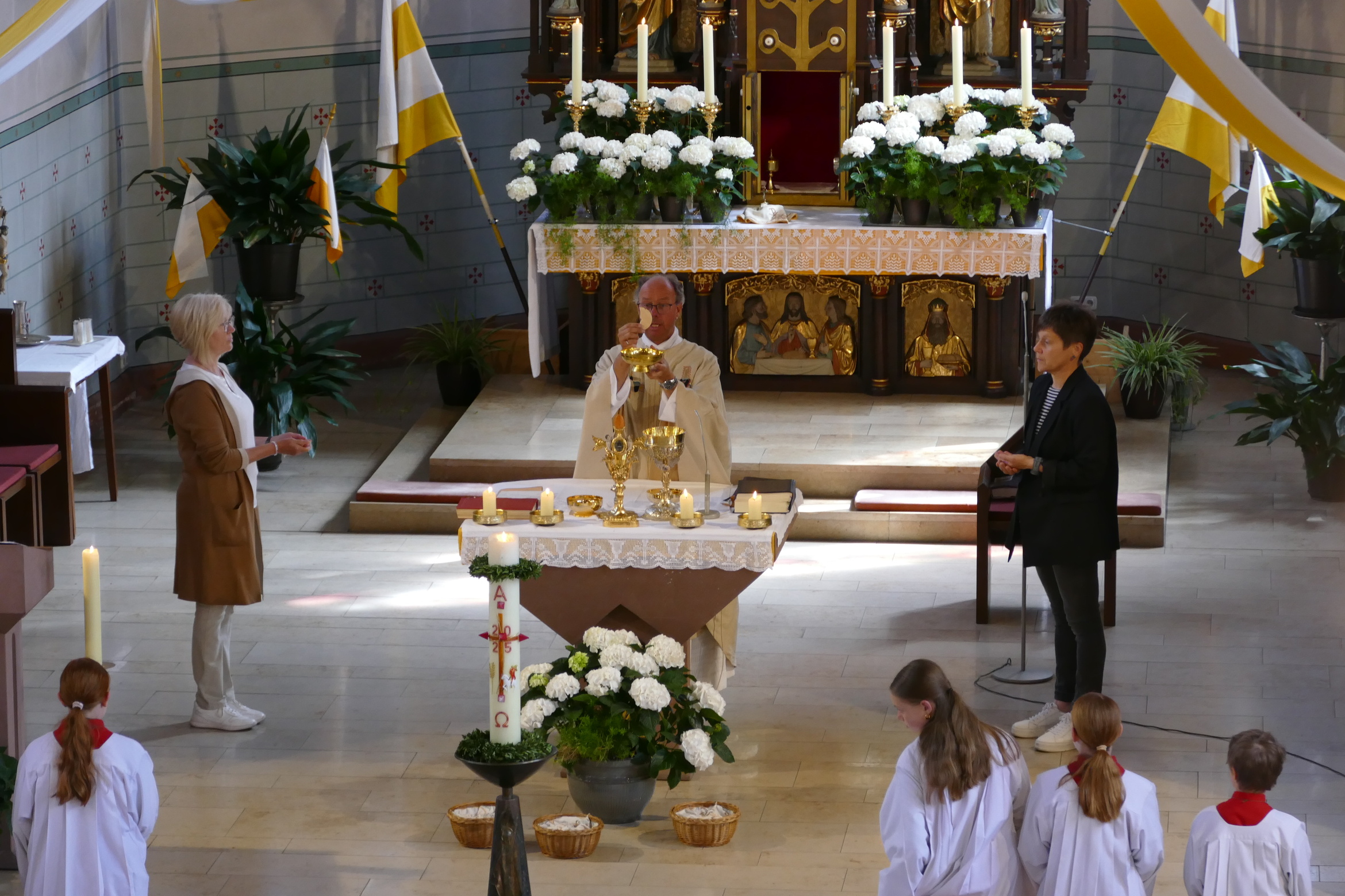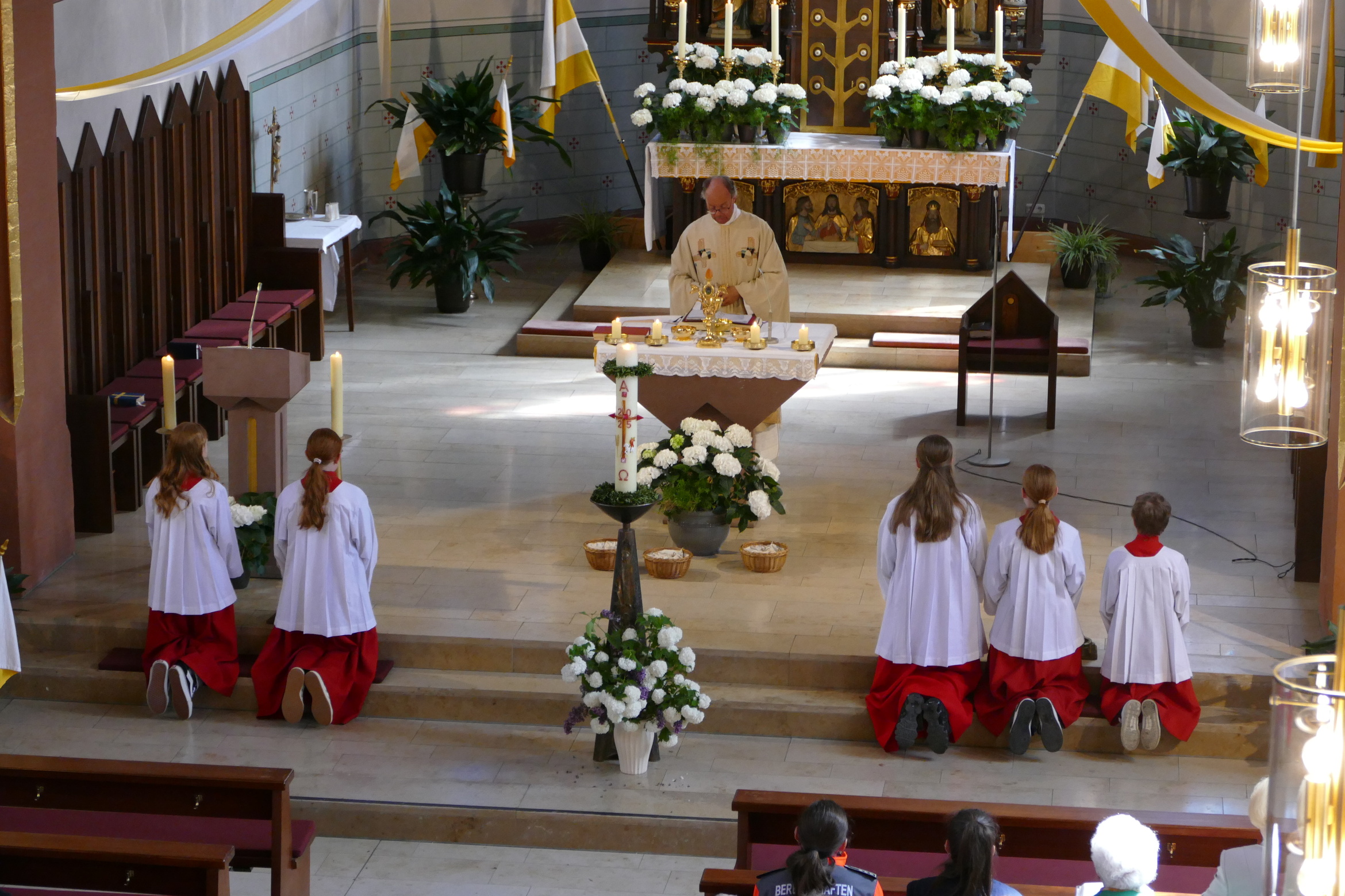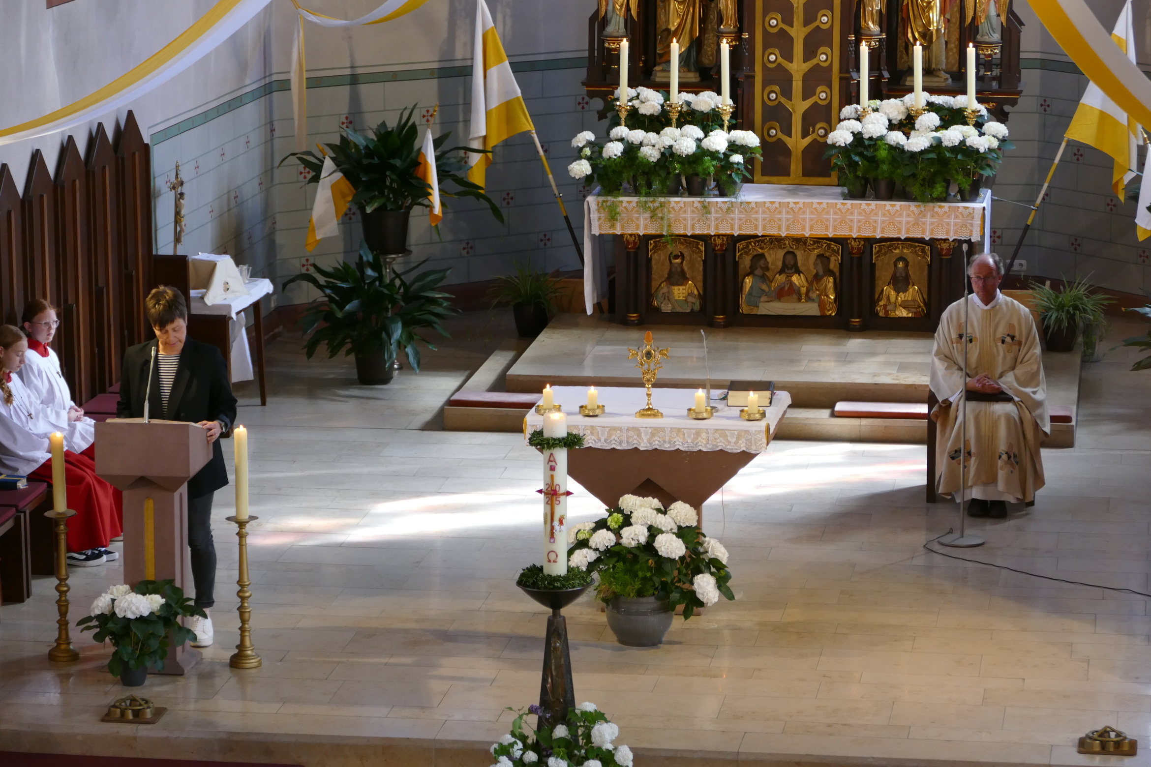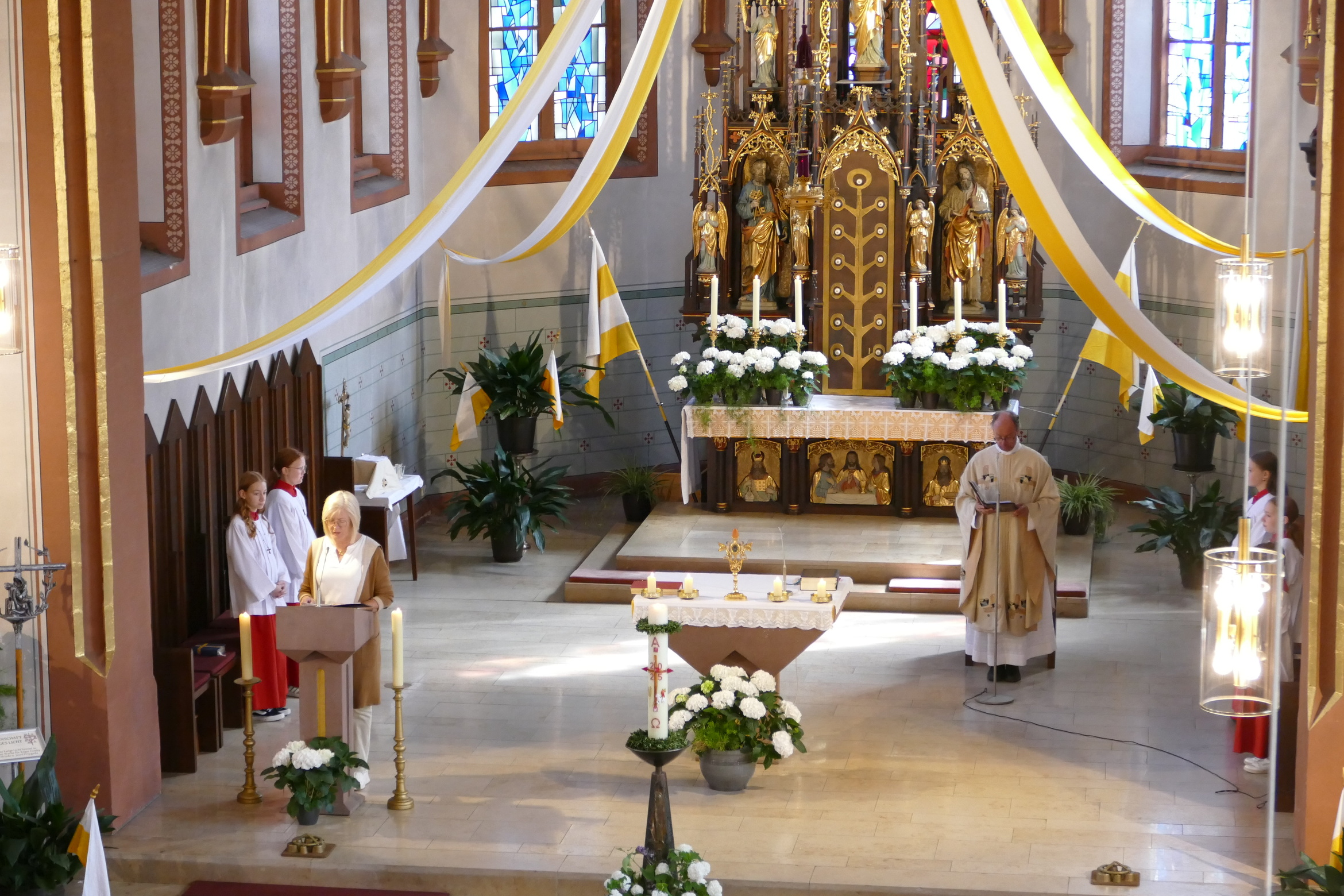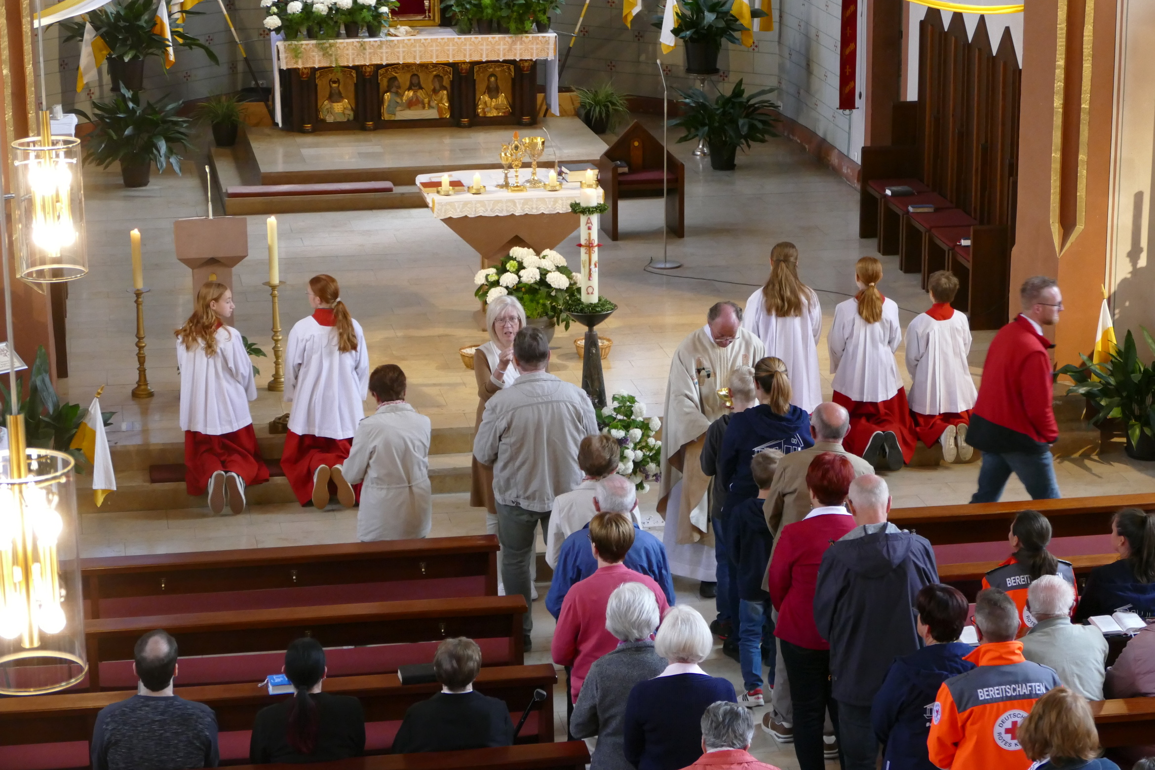 Er freute sich besonders auch über die musikalische Mitgestaltung der Schola der Chorvereinigung Großheubach, die unter der Leitung von Robert Müller dem Festgottesdienst eine besondere Note verliehen. Ausgehend vom Evangelium und dem Aufruf Jesu: „Liebt einander“, fragte Pfr. Prokschi nach den Erkennungszeichen von uns Christen. Dem Vorbild Jesu folgend sollen wir Nächstenliebe, Güte und Barmherzigkeit in die Welt hinein tragen. Die Mitglieder der Rot Kreuz Gruppe machen dies in besonderer Weise im vielfältigen Dienst an und für die Menschen.