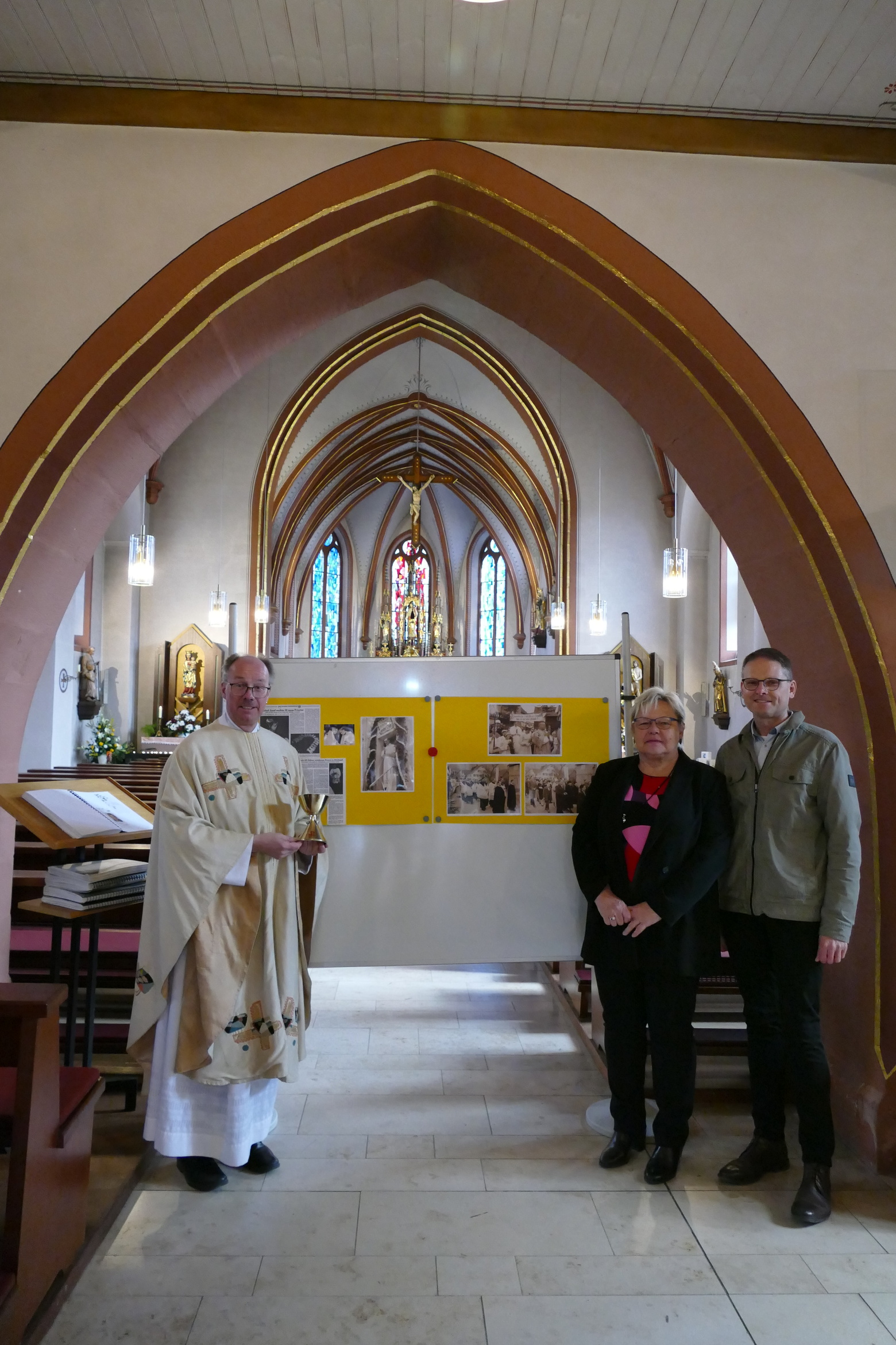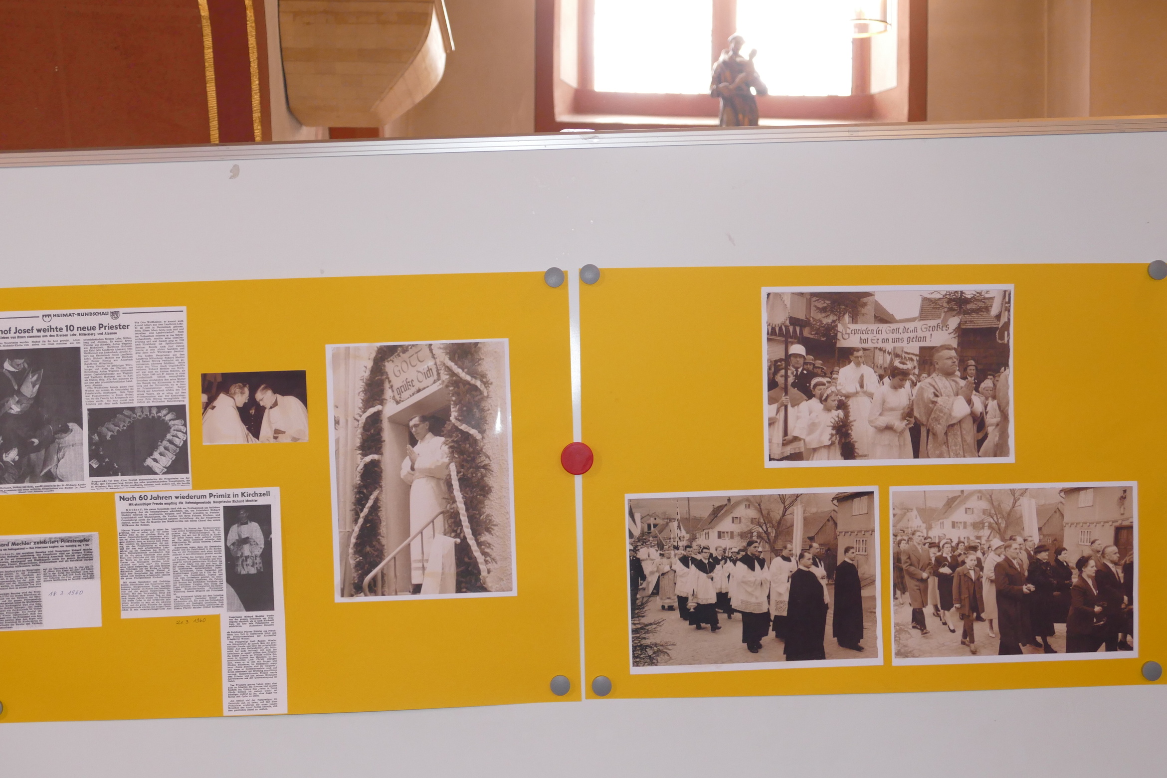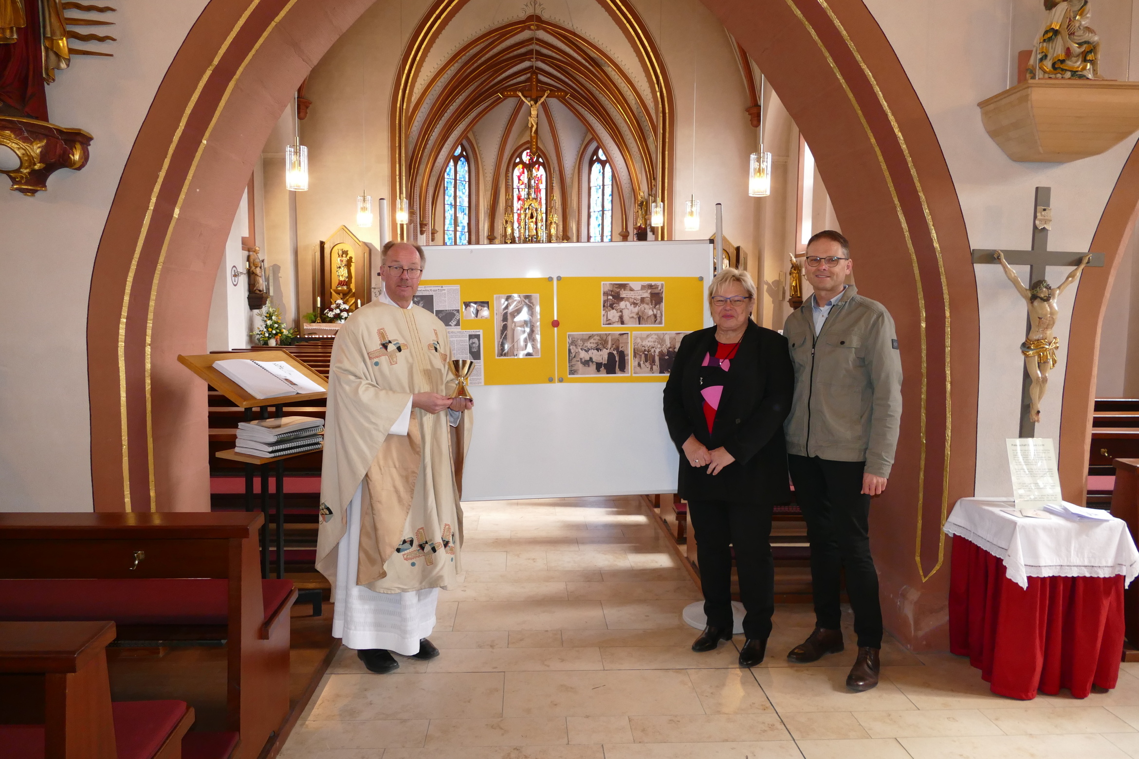 Am Josefstag 1960 fand in der Pfarrkirche Kirchzell die letzte feierliche Primiz statt. Pfarrer Richard Mechler, in Kirchzell geboren und in unmittelbarer Nähe zur Pfarrkirche aufgewachsen, wurde am 13.03.1960 in Würzburg zum Priester geweiht und konnte eben am 19.03.1960 seine erste heilige Messe, die Primiz, in seiner Heimatgemeinde feiern. Zum Josefstag 2025 nun, 65 später, gedachte die Pfarrgemeinde wie auch die Angehörigen der Familie des erst kürzlich verstorbenen Priesters. Pfarrer Michael Prokschi zog die parallelen vom heiligen Josef hin auch zum segensreichen Wirken Pfarrer Mechlers. seine stille und bescheidene Art, sein seelsorgliches Wirken nahe bei den Menschen. Auch in den Fürbitten wurde seiner gedacht. Aus dem Nachlass des Verstorbenen erhielt die Pfarrei die liturgische Gewänder, den Kelch wie auch verschiedene religiöse Gegenstände.
