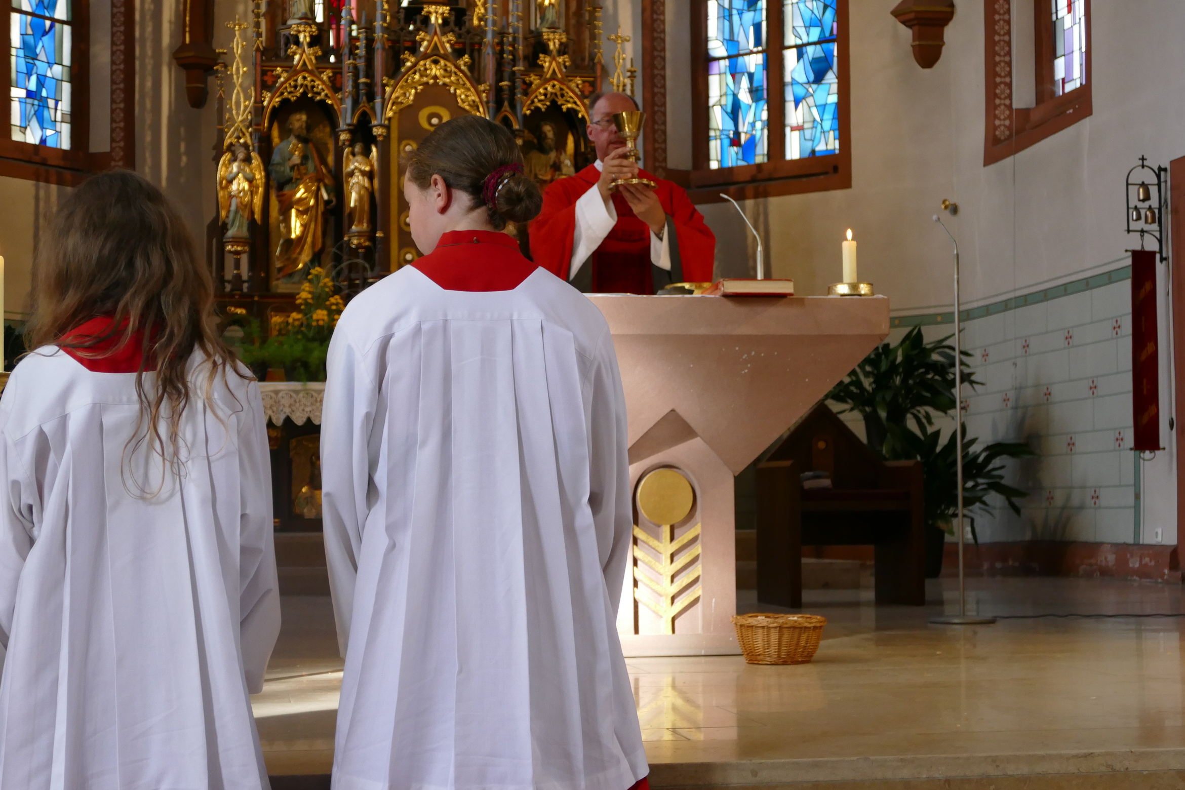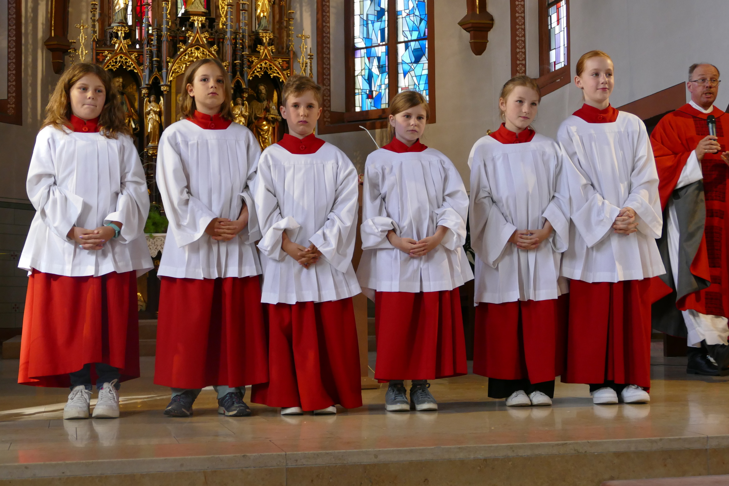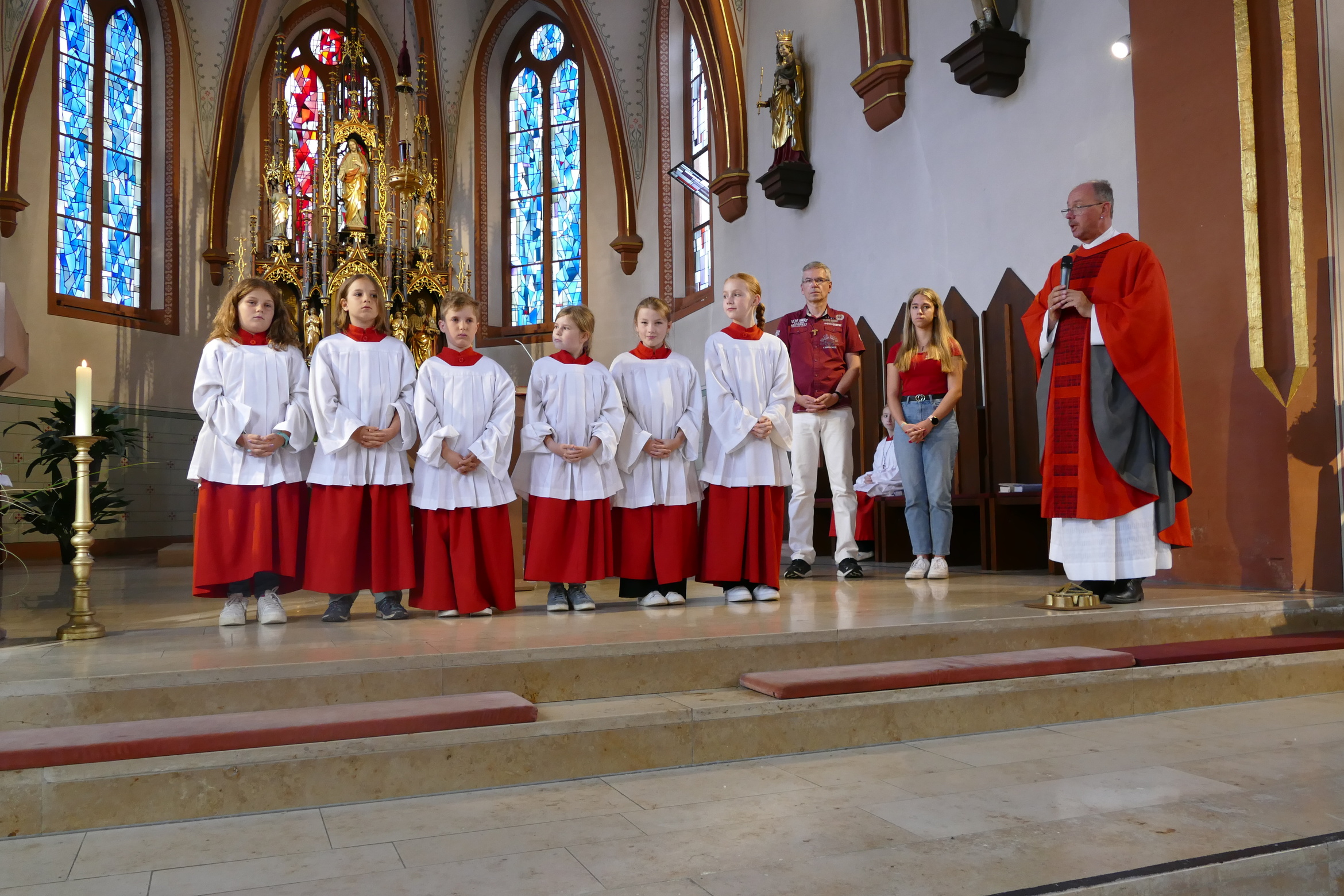 am Sonntag, 07. Juli. Pfarrer Michael Prokschi begrüßte im Besonderen die neuen Ministrantinnen und Ministranten, die sich bereit erklärt haben, den Dienst in den Gemeinden auszuüben. Ebenso begrüßte er die Mitglieder der Carneval Club Kirchzell, die den Gottesdienst mitfeierten und im Anschluss den Dämmerschoppen ausrichteten. In seiner Predigt ging Pfr. Prokschi auf die Frankenheiligen Kilian, Kolonat und Totnan ein, blickte auf unzählige Frauen und Männer in der Diözese, die bis heute die Botschaft des Glaubens durch ihr Leben verkünden. Auch die Ministranten geben so Zeugnis und verrichten einen wichtigen Dienst innerhalb der Gemeinde. Er wünschte den Buben und Mädchen viel Freude in ihrem Dienst, bat zugleich die Eltern und die Gemeinde, die Kinder zu unterstützen.
