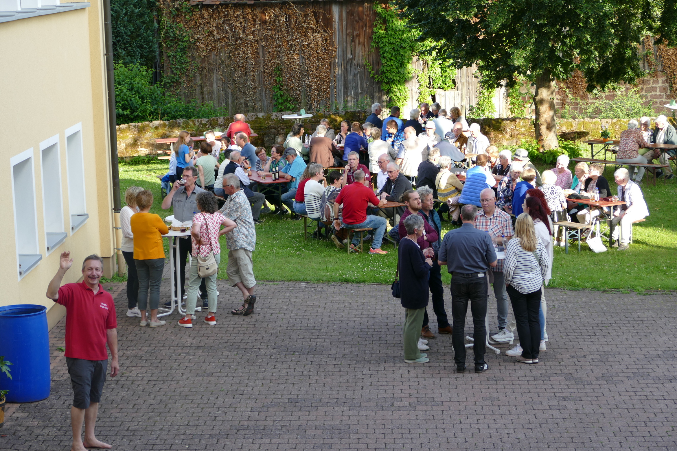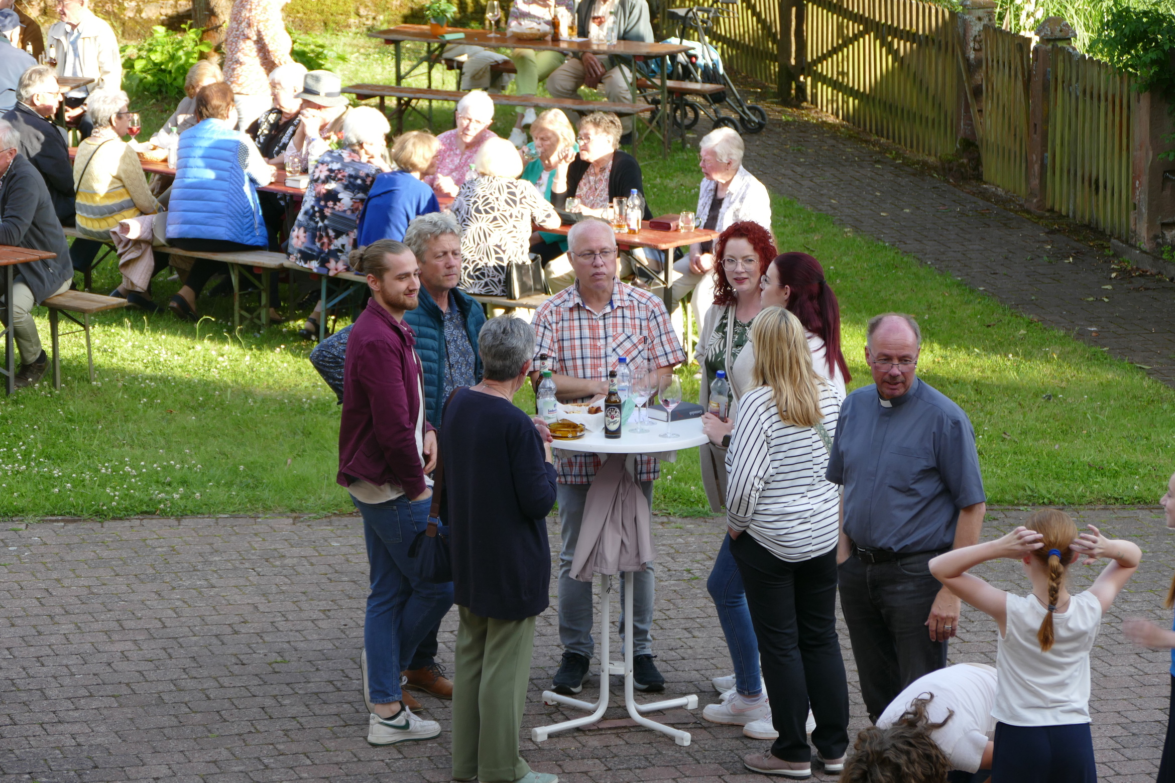 Im Anschluss an den gemeinsamen Gottesdienst gab es bei sonnigen Abendwetter den gemeinsamen Dämmerschoppen im Pfarrgarten, der vom Carneval Club gestaltet wurde.