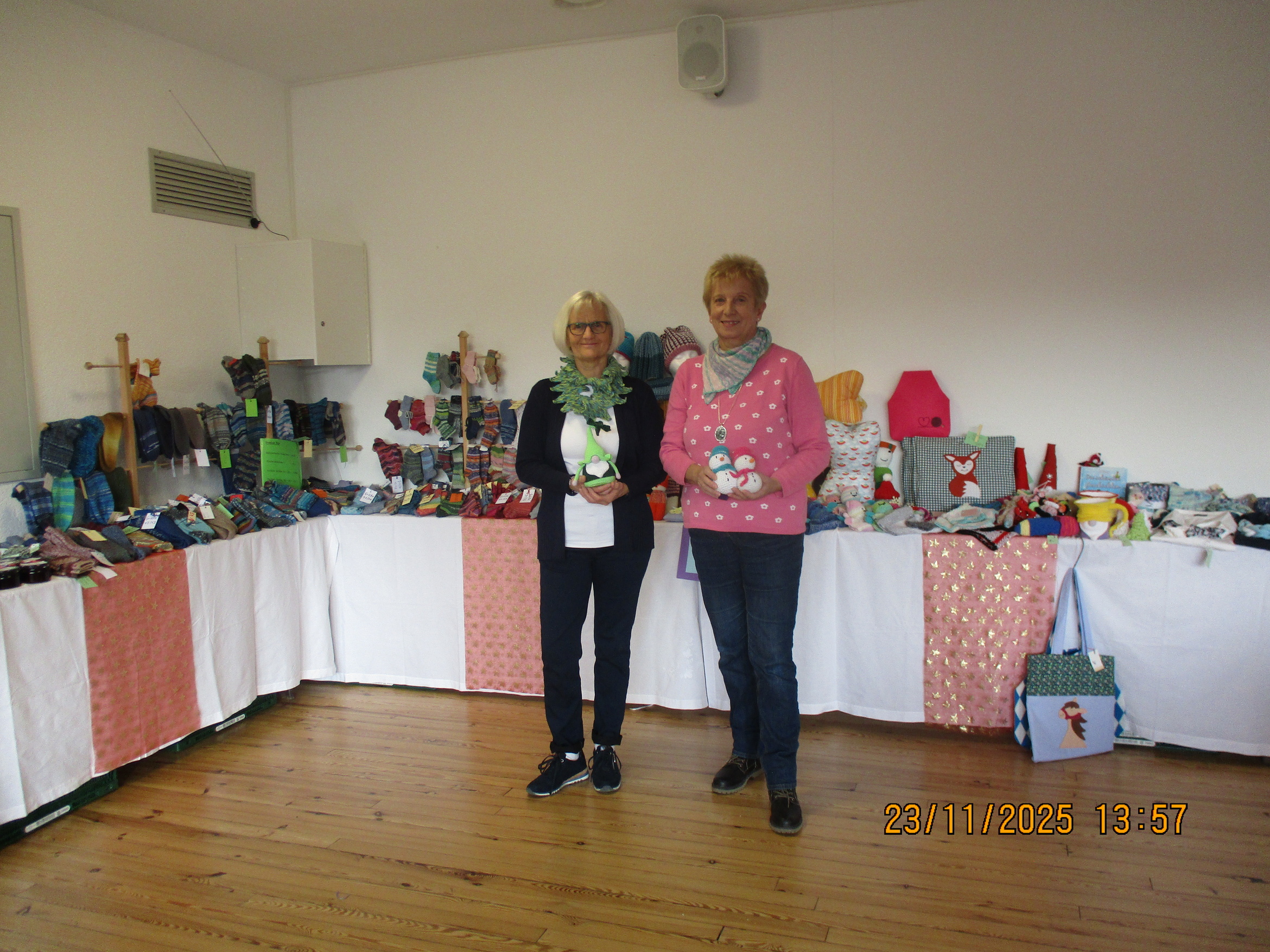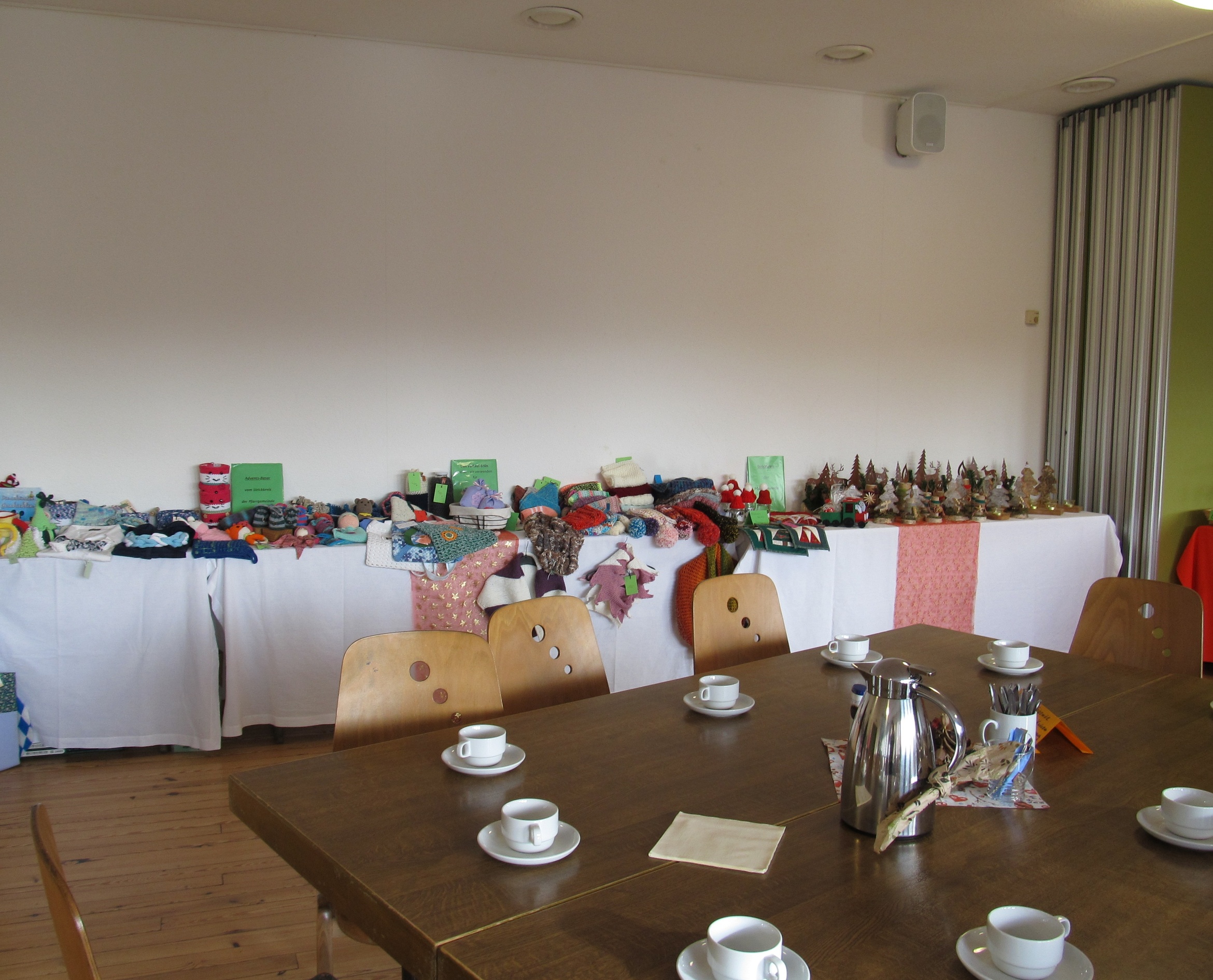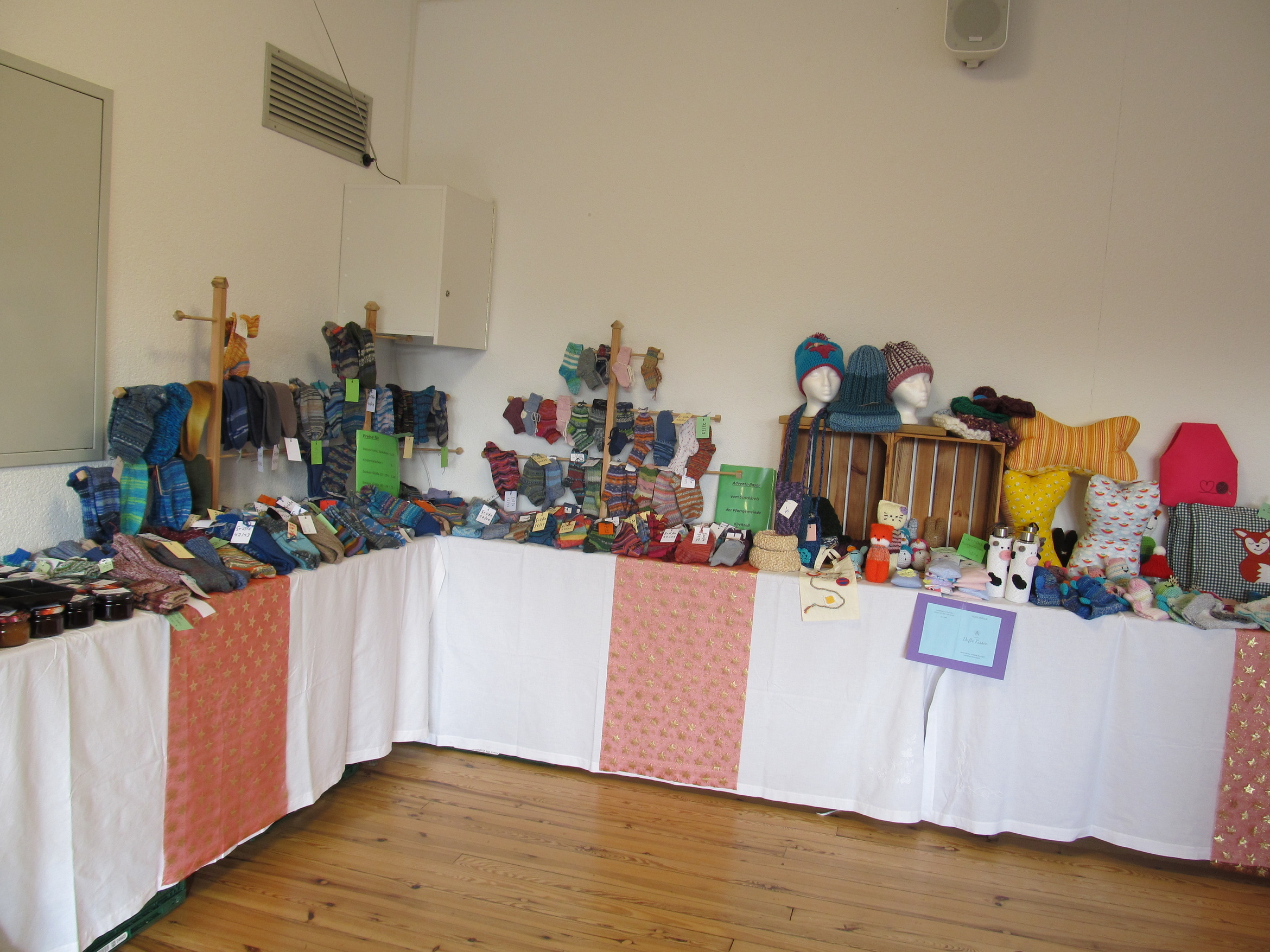 Außerdem konnten die zahlreichen Besucherinnen und Besucher selbstgebastelte Deko für die Advents- und Weihnachtszeit, selbstgestrickte Socken und weitere Handarbeiten als Weihnachtsgeschenke erwerben. Auch selbsthergestellte Gelees und Marmeladen wurden angeboten. Der Erlös wird für caritative Zwecke verwendet.