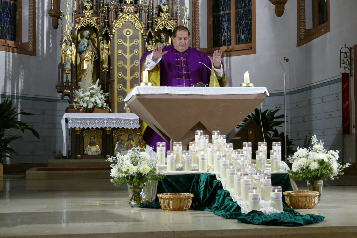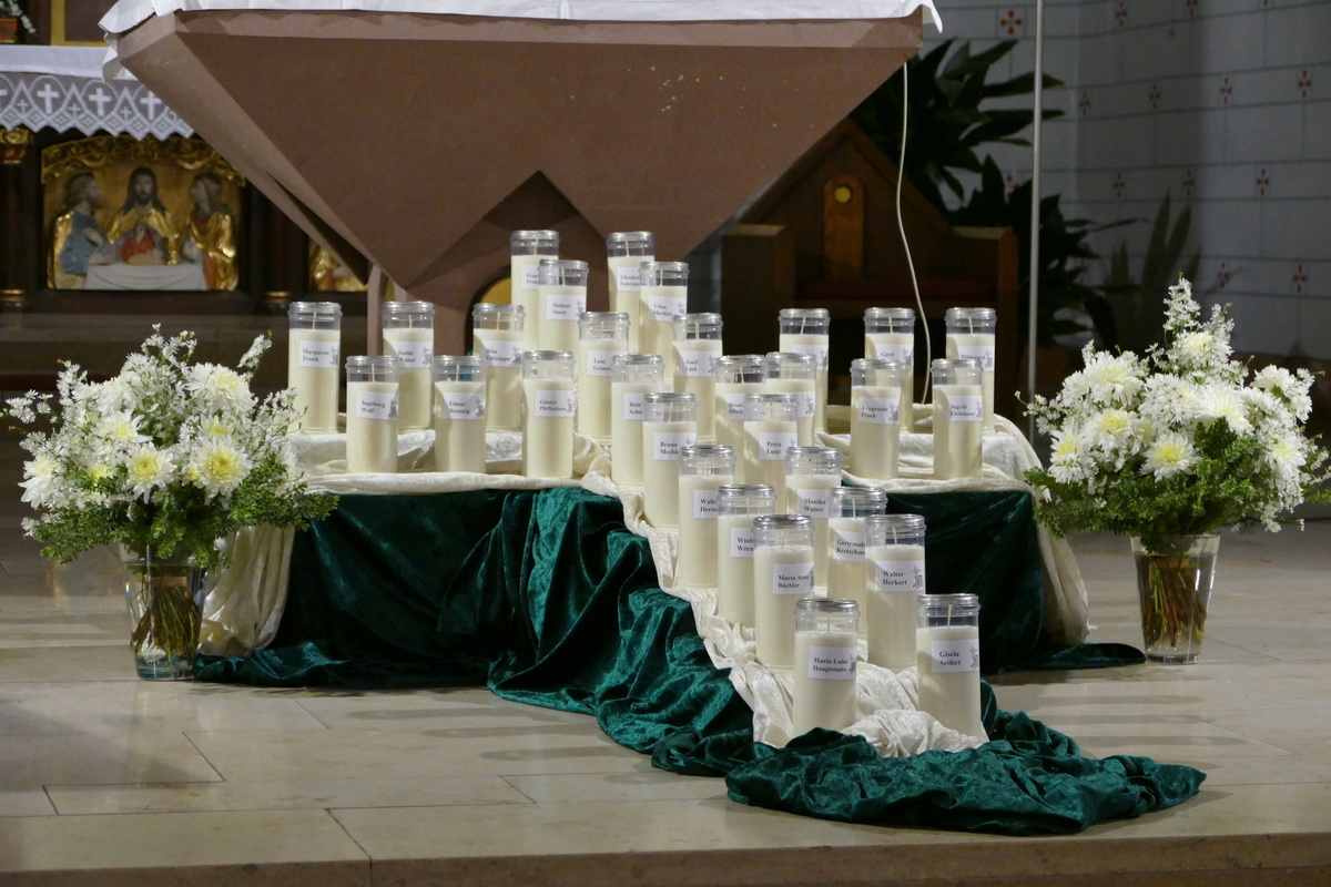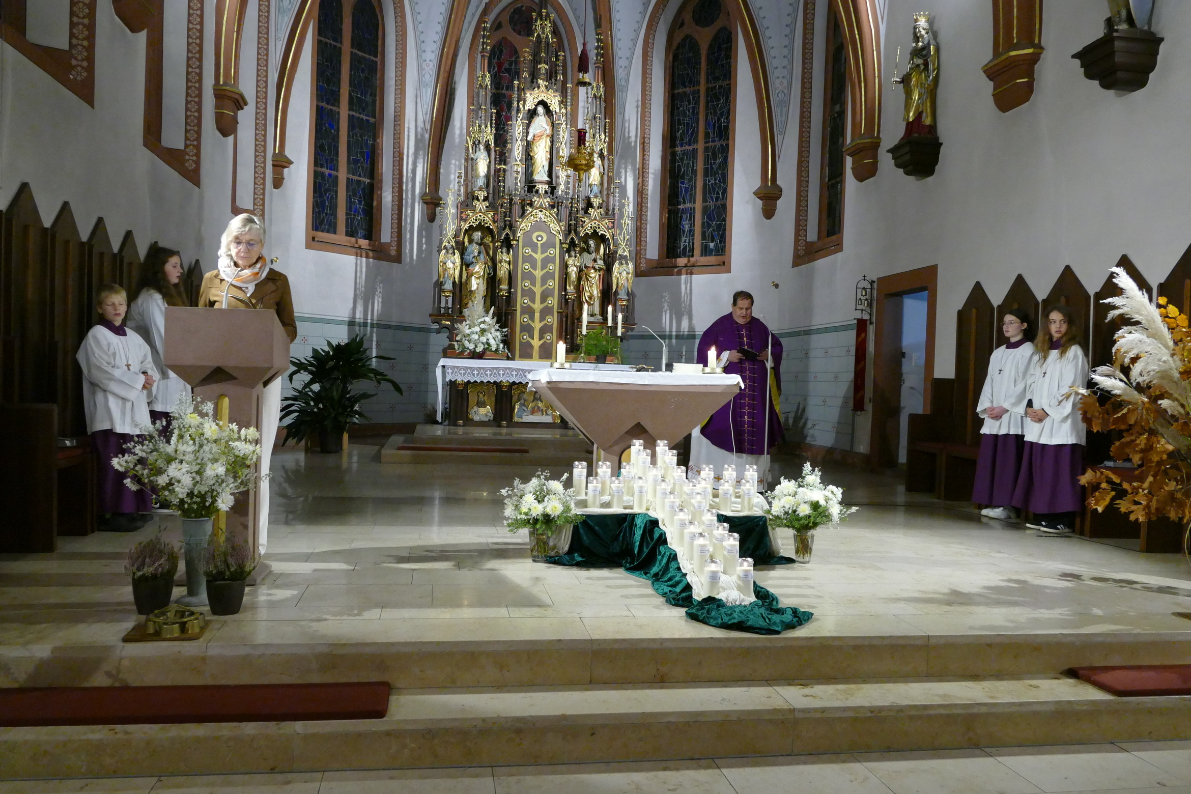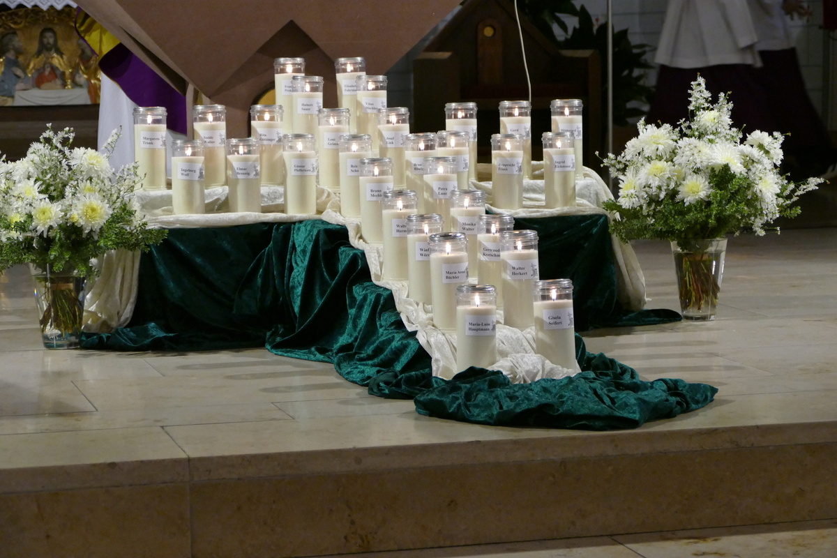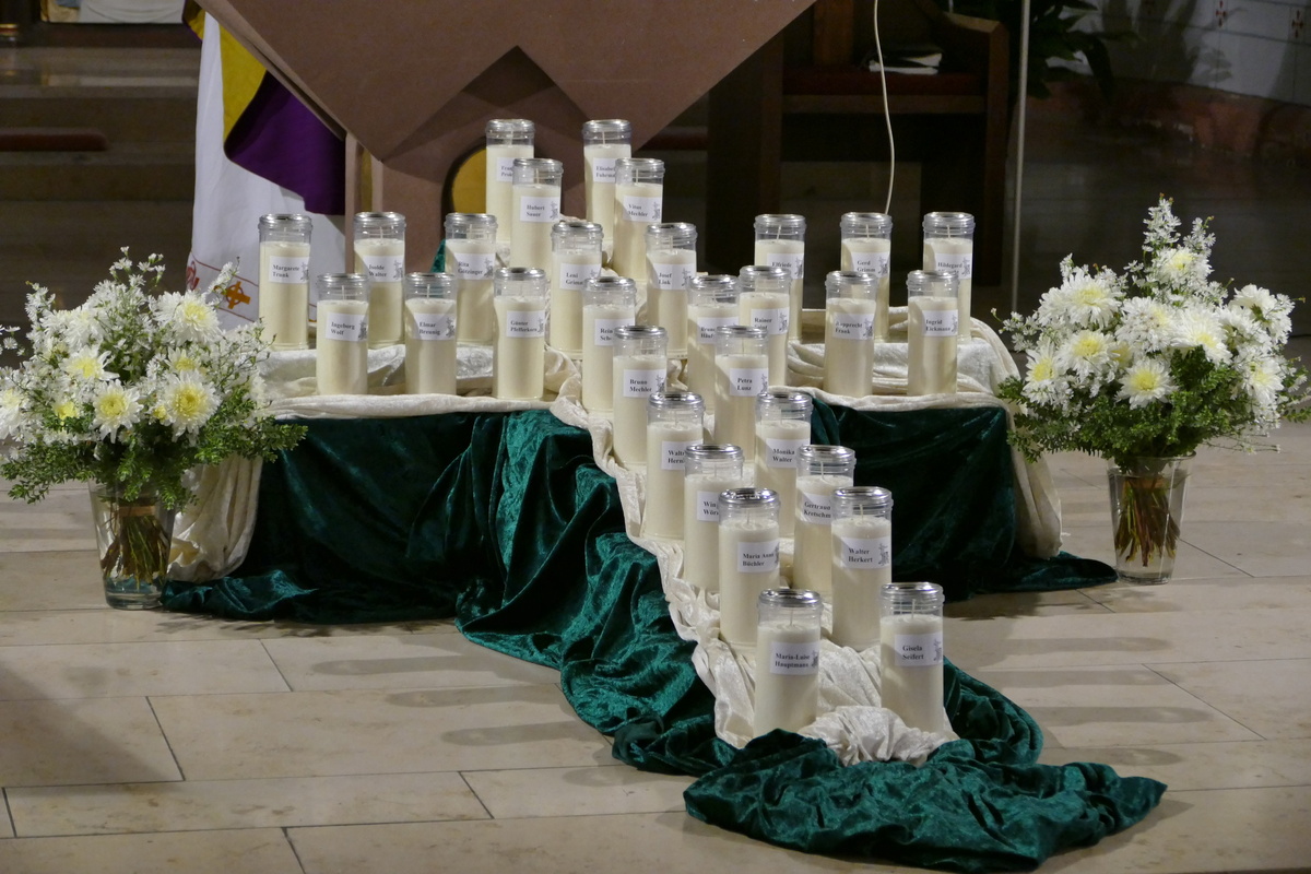Im Johannesevangelium ist es Martha, die den Worten Jesu vertraut, dass er Auferstehung und Leben sei. Diesen Glauben und diese Zuversicht wünschte Pfr. Wöber allen Angehörigen, die zum Gottesdienst gekommen sind. Unter dem Klang der tiefen Glocke wurden die Namen einzeln verlesen und für jeden Verstorbenen eine Kerze entzündet. Diese Kerzen konnten die Angehörigen später mit nach Hause bzw. zu den Gräbern nehmen.