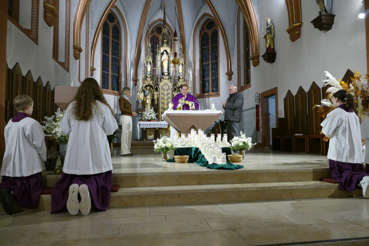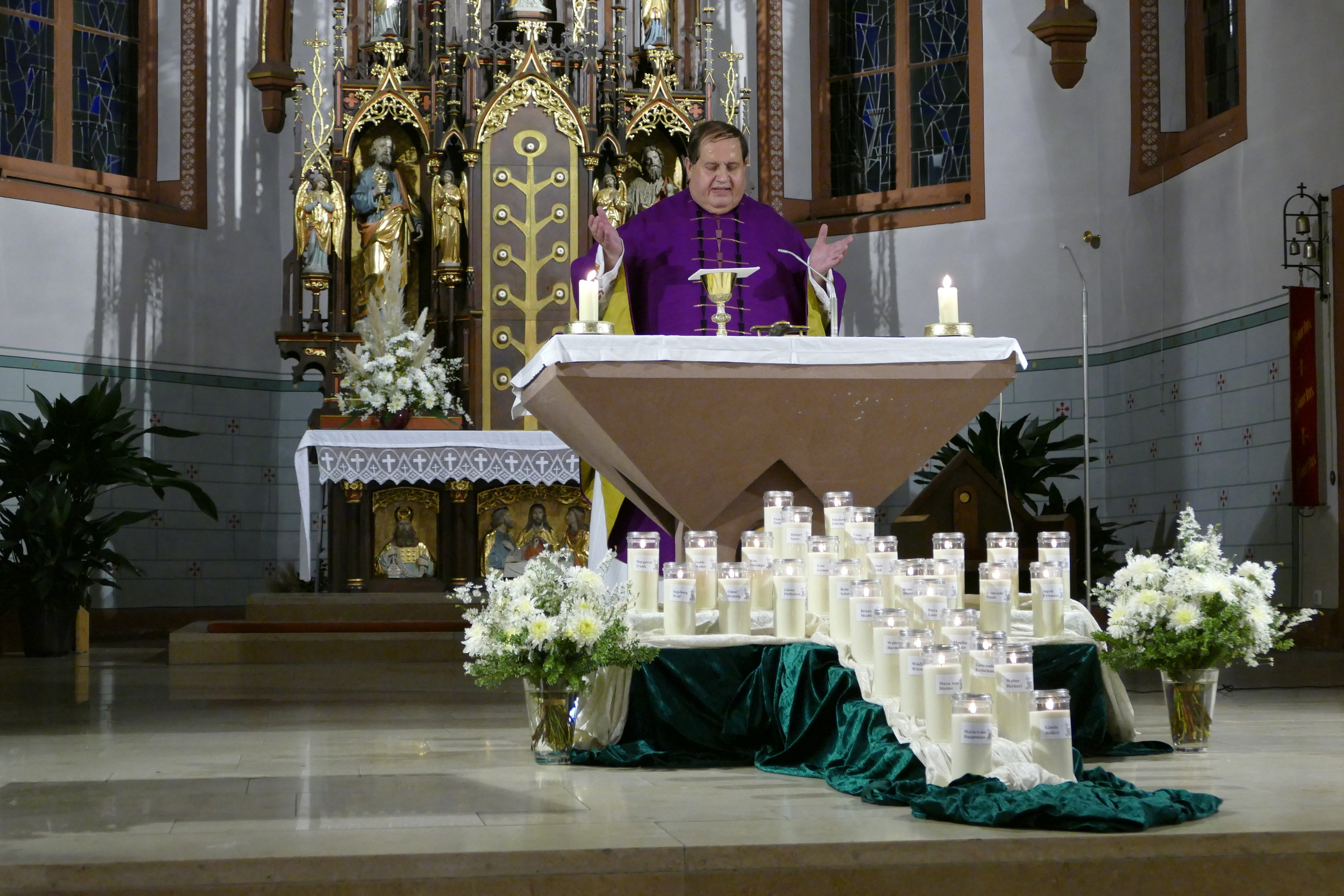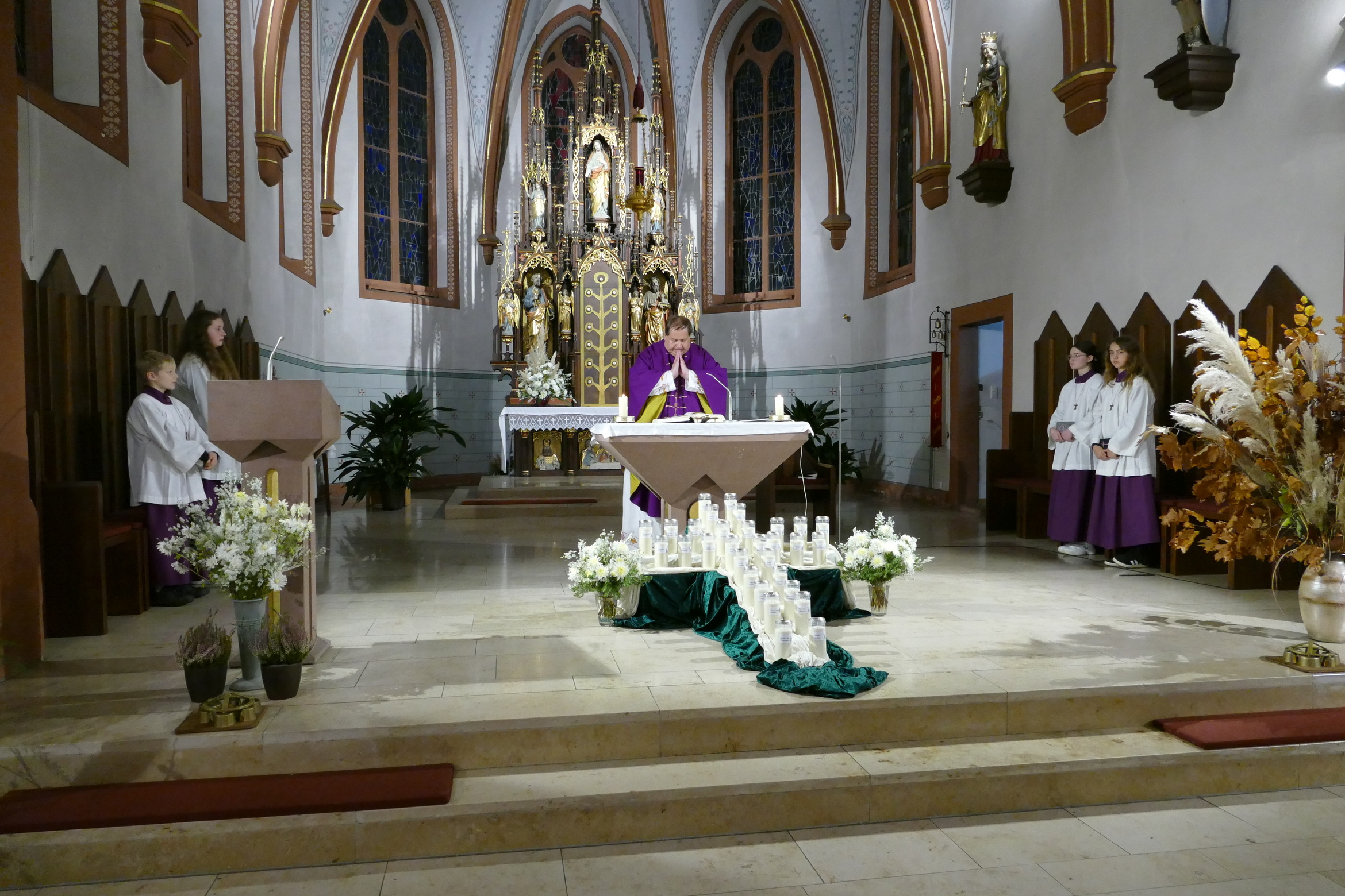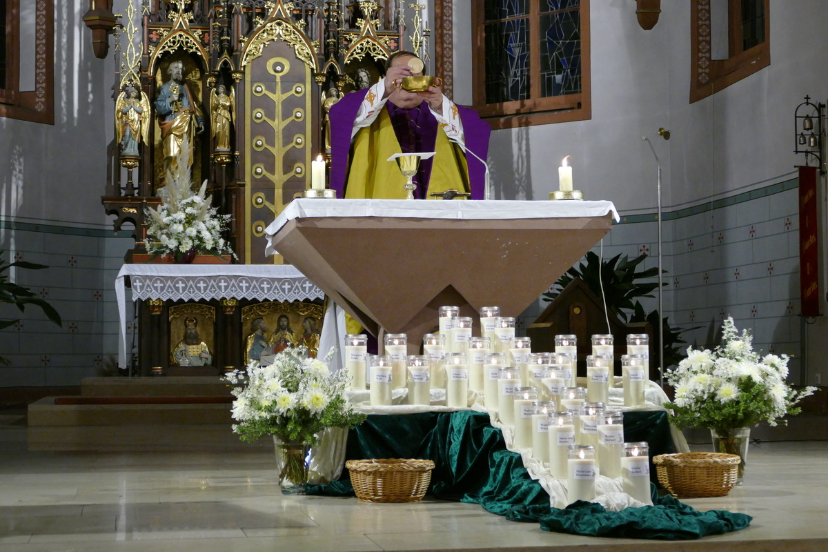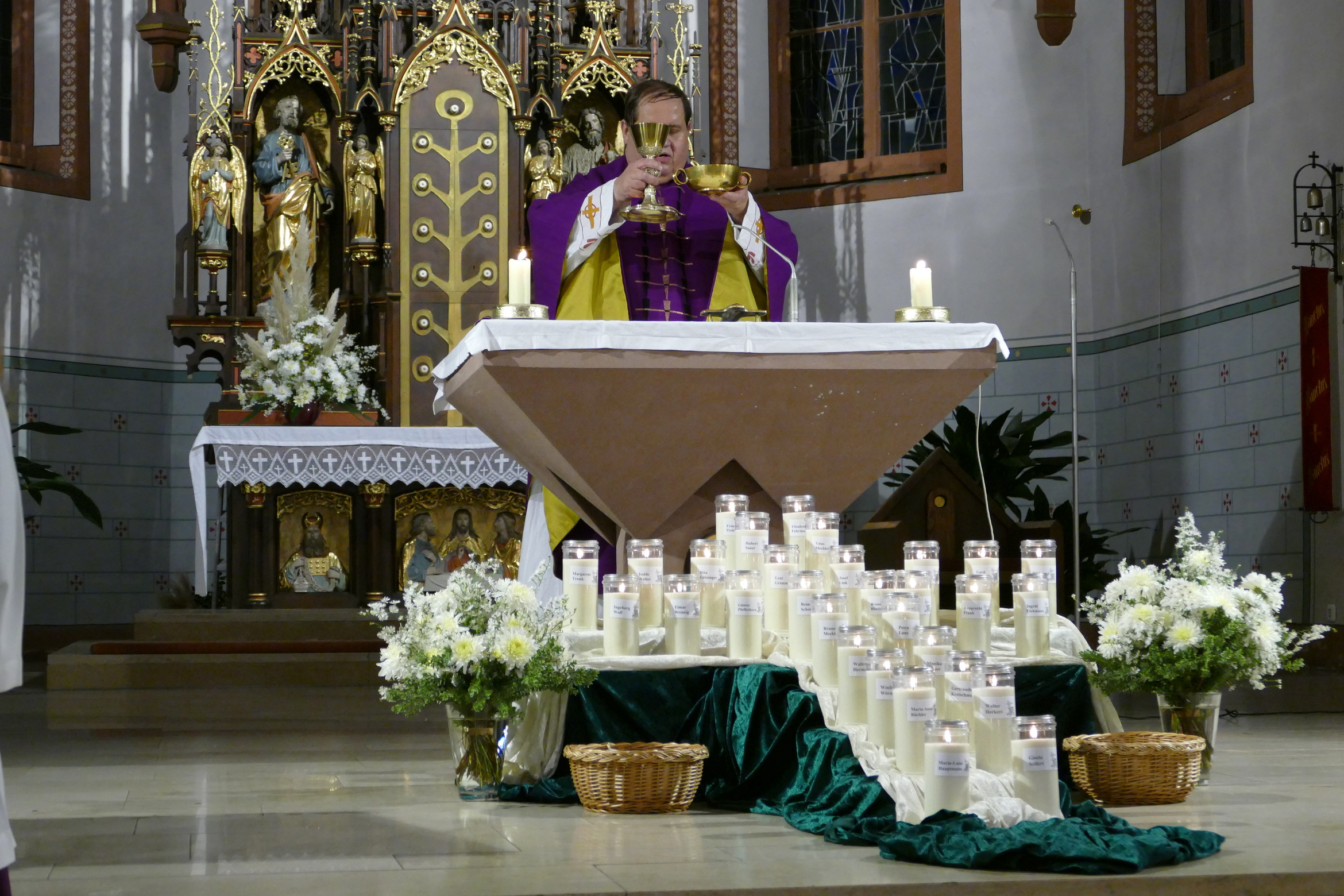 Im Johannesevangelium ist es Martha, die den Worten Jesu vertraut, dass er Auferstehung und Leben sei. Diesen Glauben und diese Zuversicht wünschte Pfr. Wöber allen Angehörigen, die zum Gottesdienst gekommen sind. Unter dem Klang der tiefen Glocke wurden die Namen einzeln verlesen und für jeden Verstorbenen eine Kerze entzündet. Diese Kerzen konnten die Angehörigen später mit nach Hause bzw. zu den Gräbern nehmen.