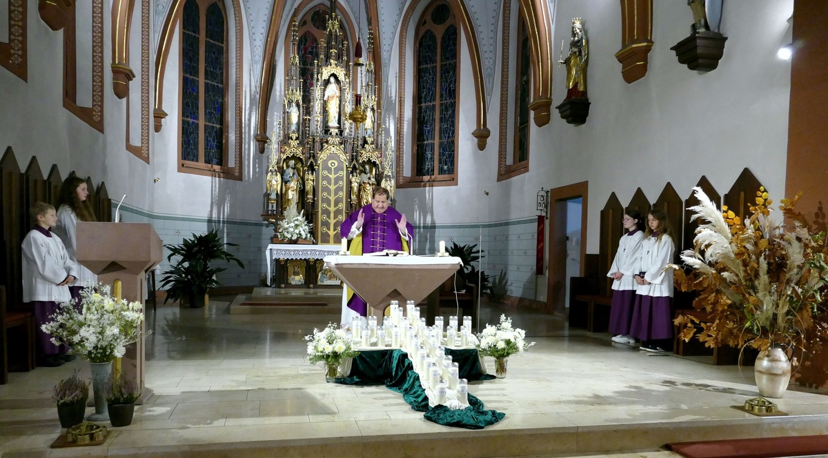 Von 30 Frauen und Männern musste von Allerheiligen 2024 bis Allerheiligen 2025 in der Pfarrei Kirchzell Abschied genommen werden. Zum Allerseelentag wurden auch heuer wieder alle Angehörigen eingeladen zum gemeinsamen Rosenkranzgebet und im Anschluss zum Gottesdienst. Pfarrer Christian Wöber fand zum Beginn der Predigt Worte und Gedanken, die viele der Anwesenden mit sich trugen: