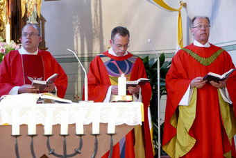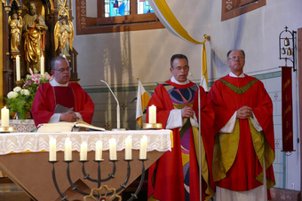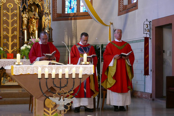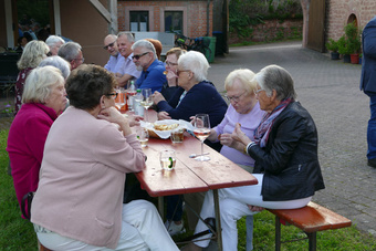 Nach dem Pfingstgottesdienst füllten sich schnell die Bänke und die Besucher freuten sich über das Zusammensein wie auch die Gespräche. Bis in den Abende hinein gab es viele gute Begegnungen.