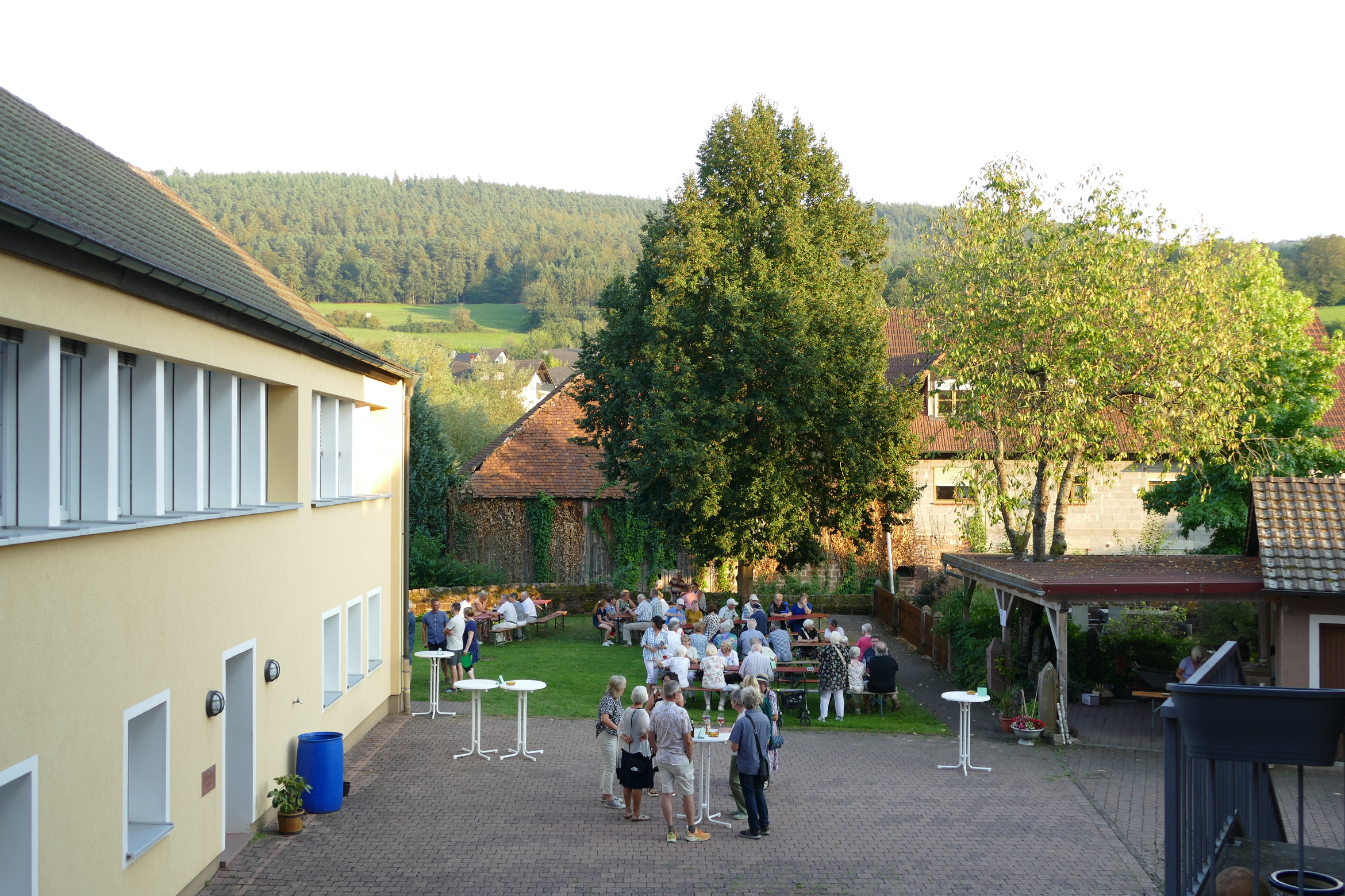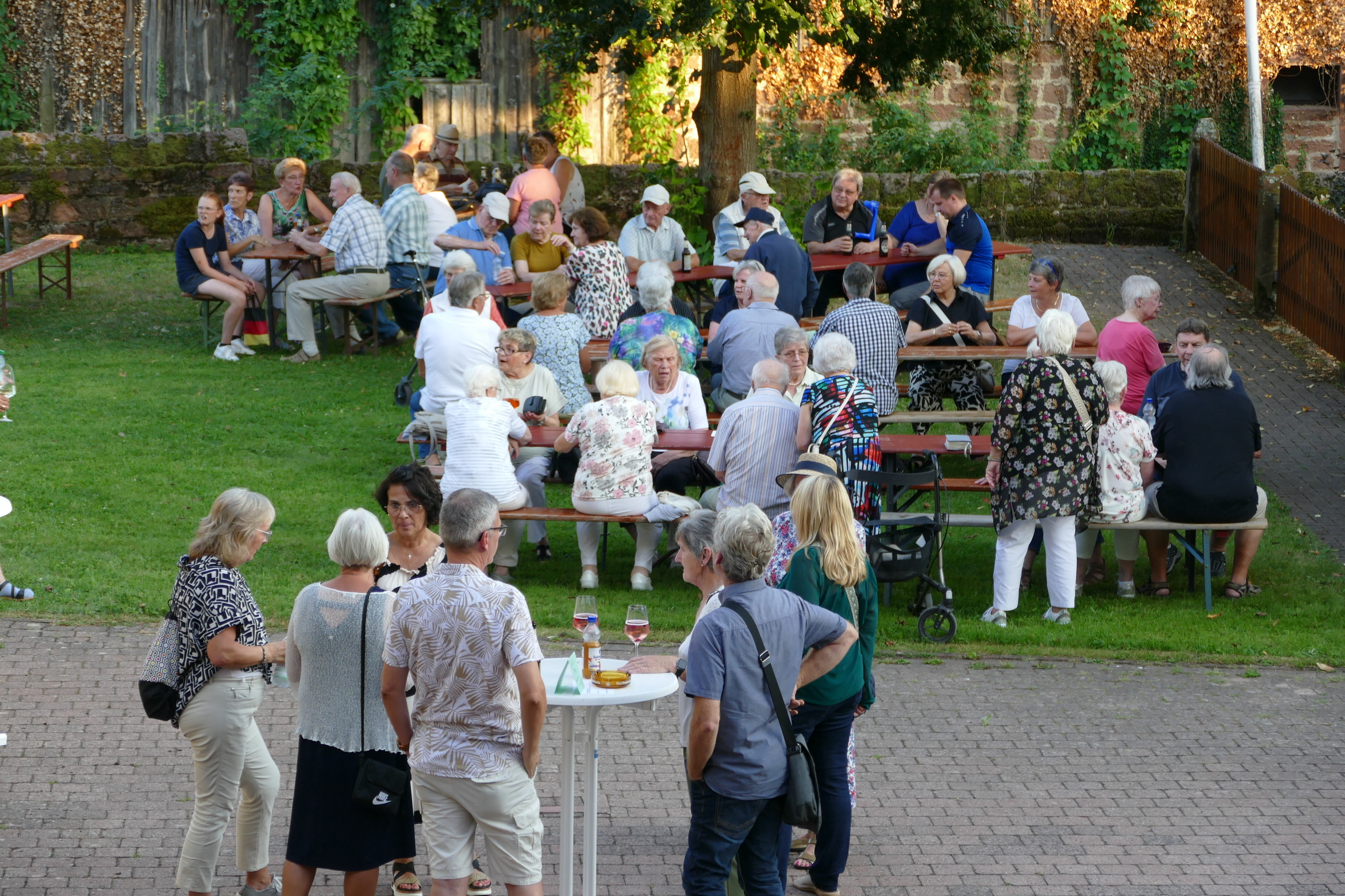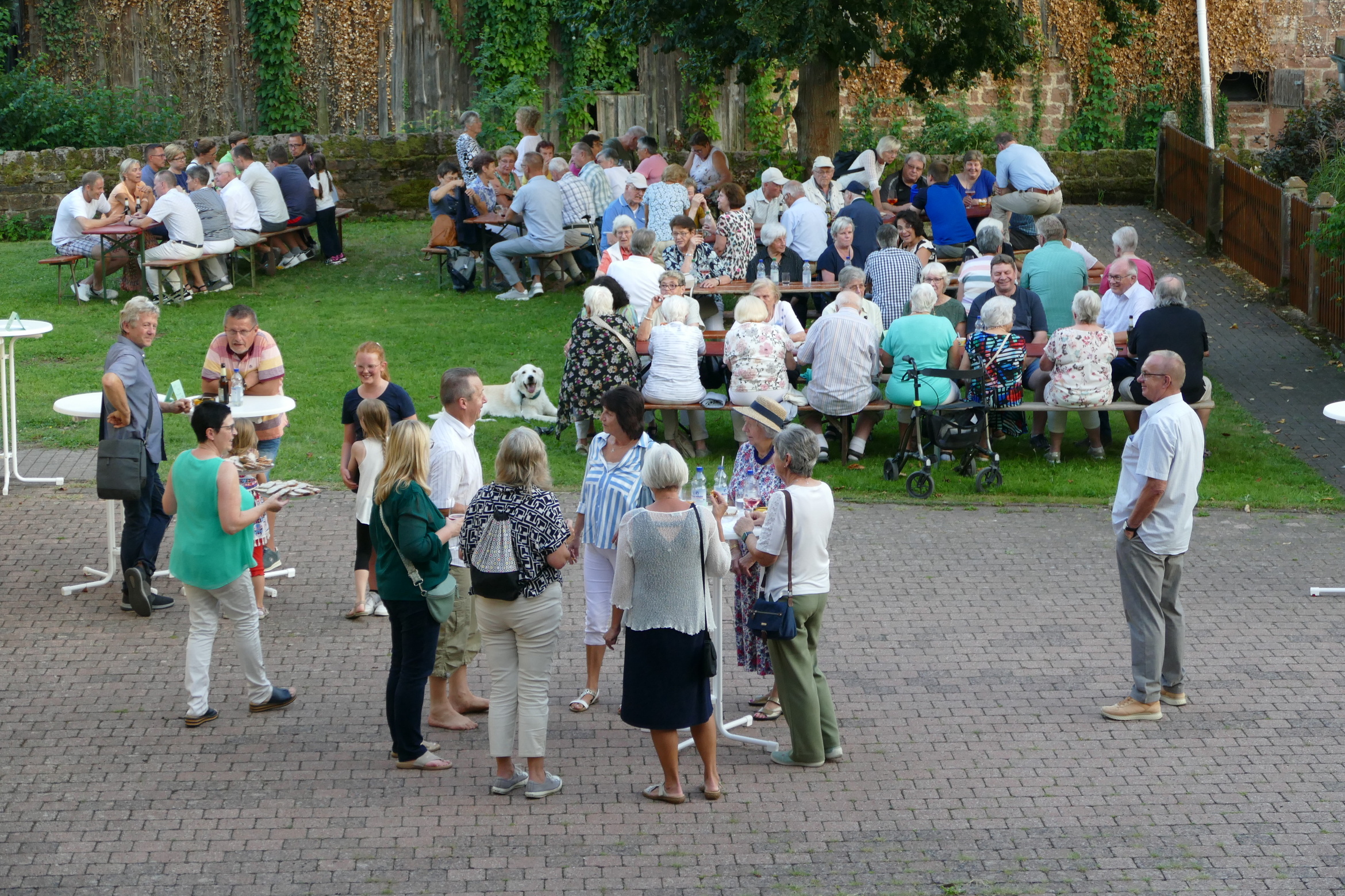 Hochsommerliche Temperaturen bis in den Abend hinein lockten viele Menschen zum Gottesdienst am Sonntag abend in der Kirchzeller Pfarrkirche und zum anschließenden Dämmerschoppen im Pfarrgarten.