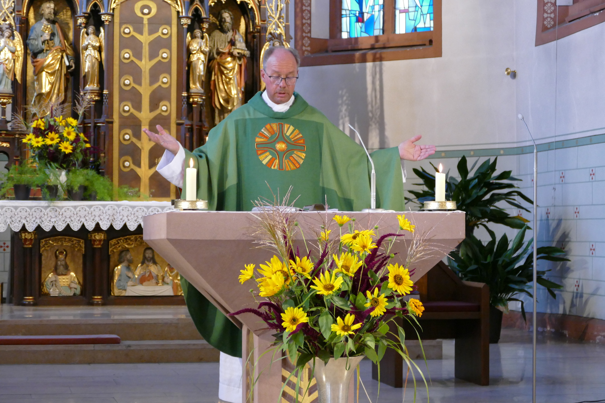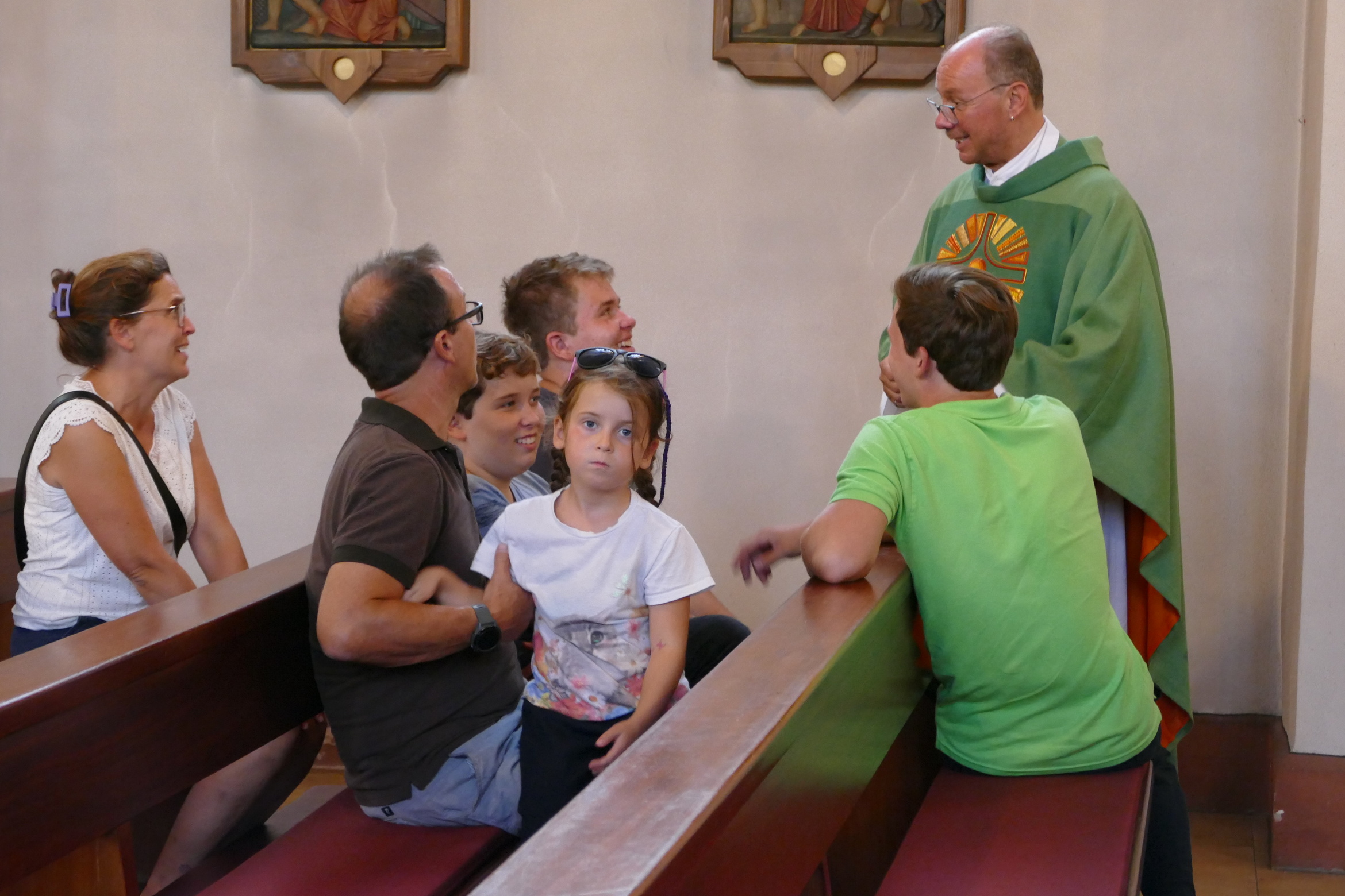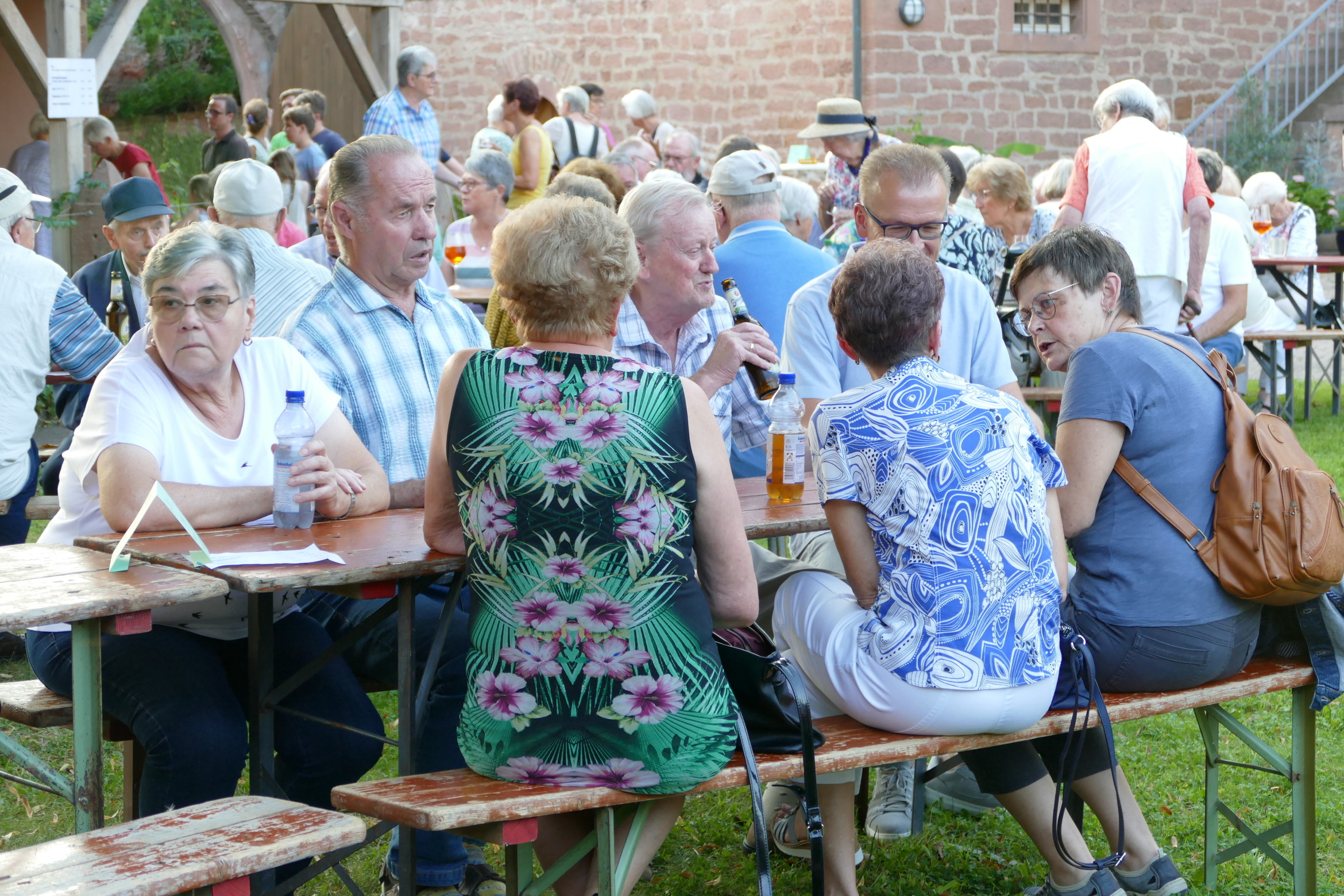 Hochsommerliche Temperaturen bis in den Abend hinein lockten viele Menschen zum Gottesdienst am Sonntag abend in der Kirchzeller Pfarrkirche und zum anschließenden Dämmerschoppen im Pfarrgarten.