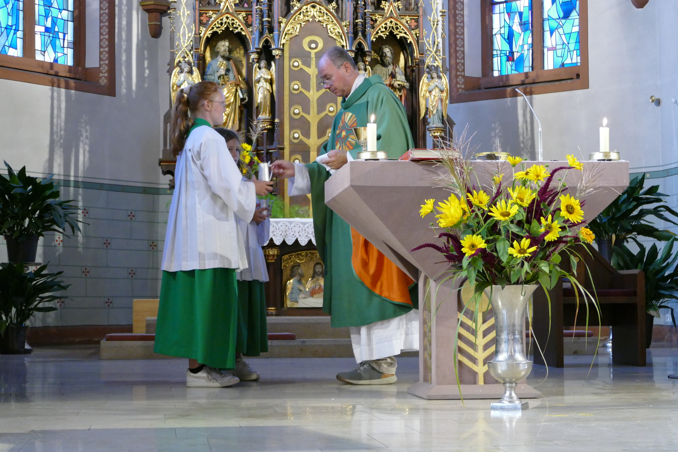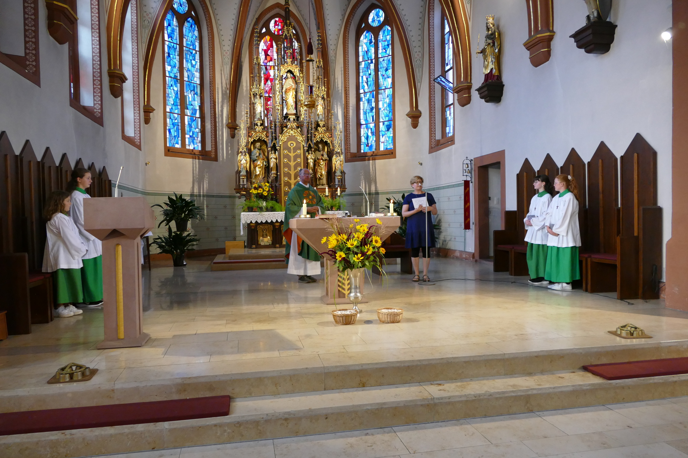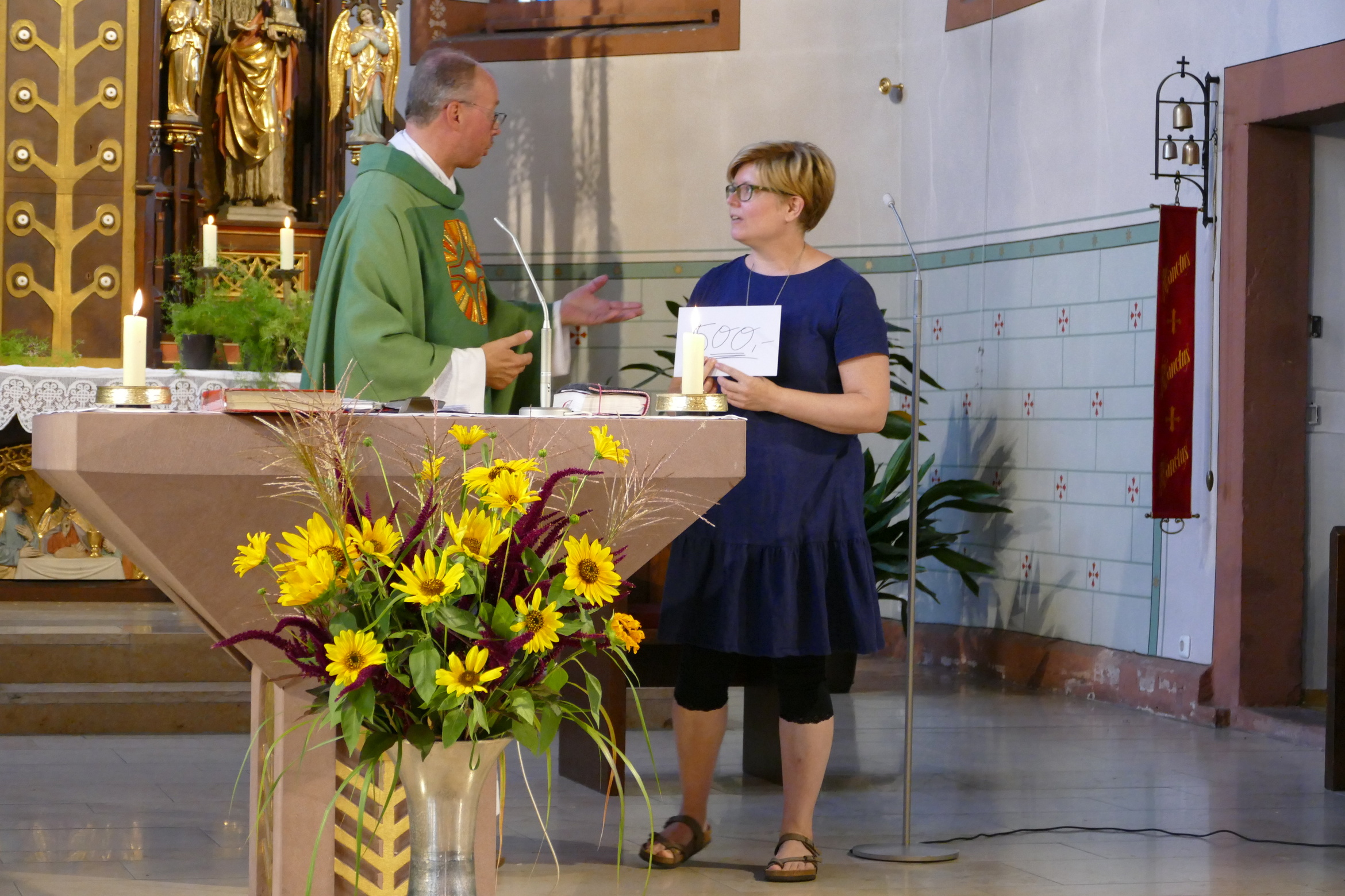 Der Gottesdienst wurde von Gerhard Schwab an der Orgel mit begleitet, im Rahmen der Messefeier wurde auch die Spende an den ökumenischen Kinderhospizverein in Miltenberg / Kleinheubach übergeben. 500€ von der diesjährigen Kräuterbüschelaktion kommen dem Verein zugute, der mit seiner Arbeit Familien in schwierigen Situationen unterstützt.