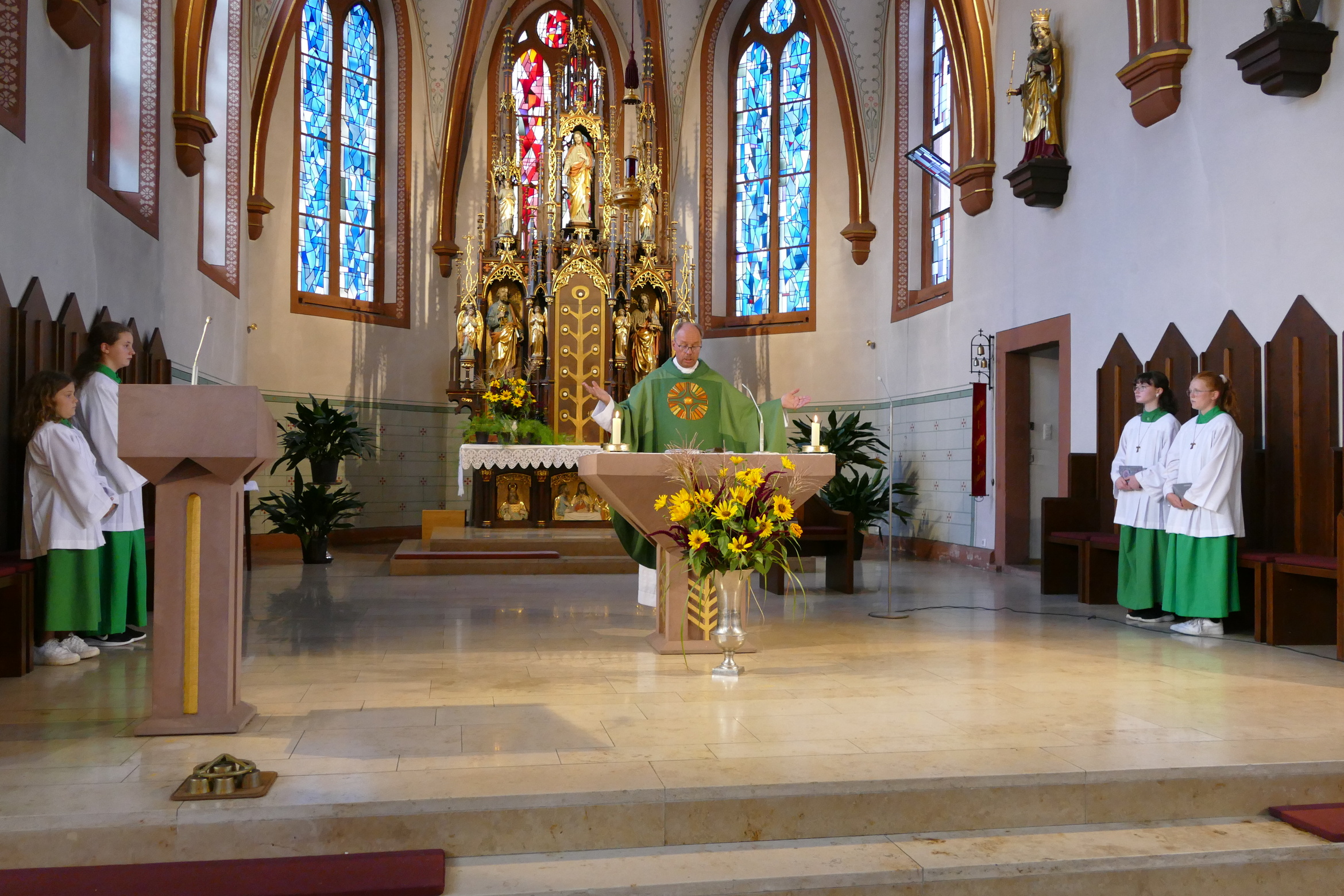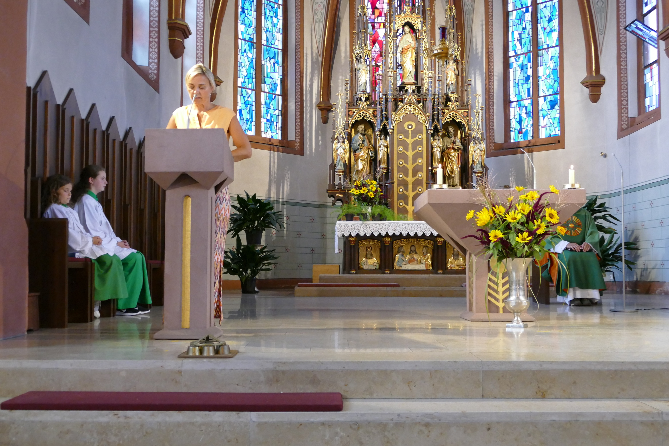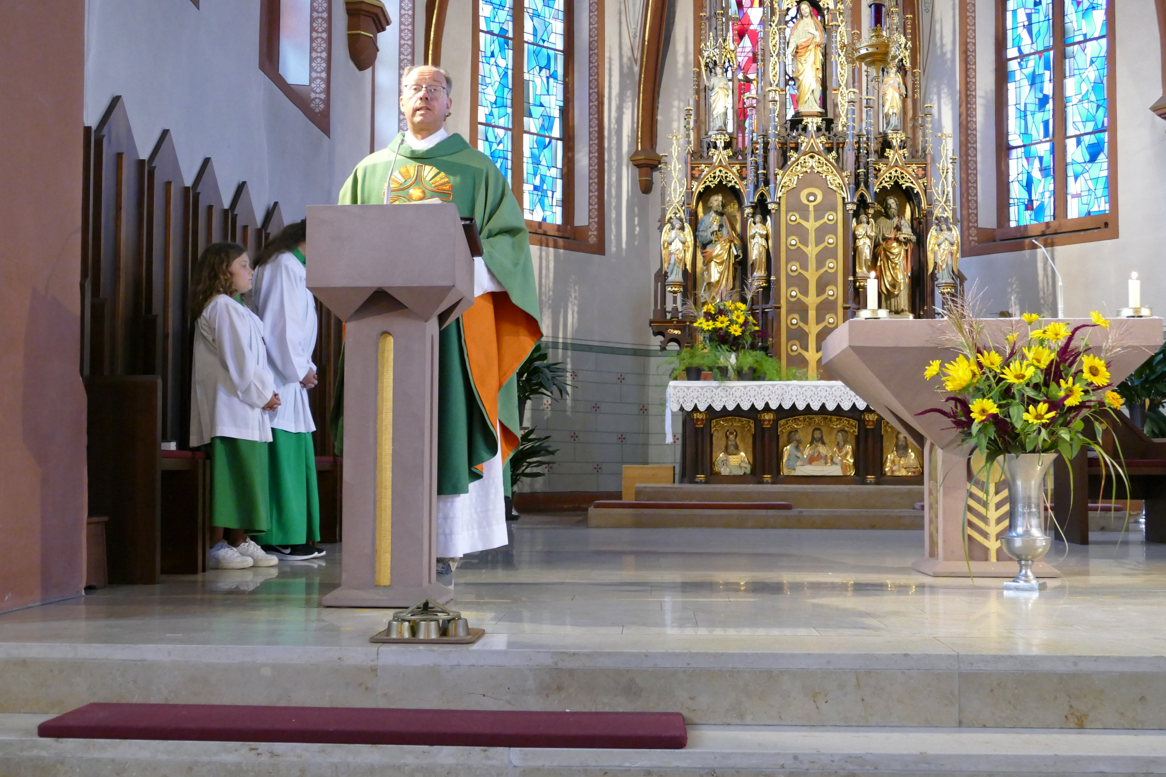 Der Gottesdienst wurde von Gerhard Schwab an der Orgel mit begleitet, im Rahmen der Messefeier wurde auch die Spende an den ökumenischen Kinderhospizverein in Miltenberg / Kleinheubach übergeben. 500€ von der diesjährigen Kräuterbüschelaktion kommen dem Verein zugute, der mit seiner Arbeit Familien in schwierigen Situationen unterstützt.