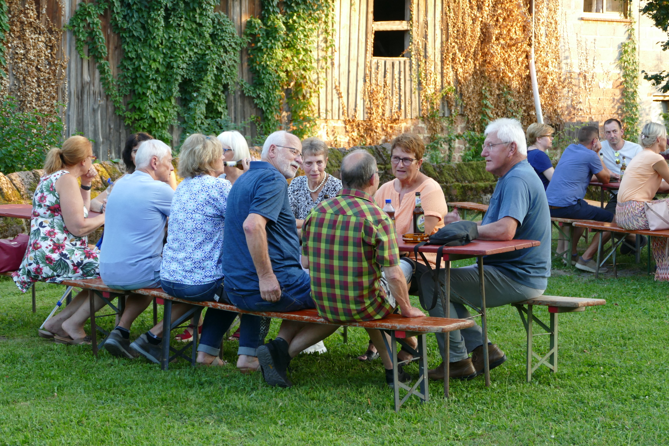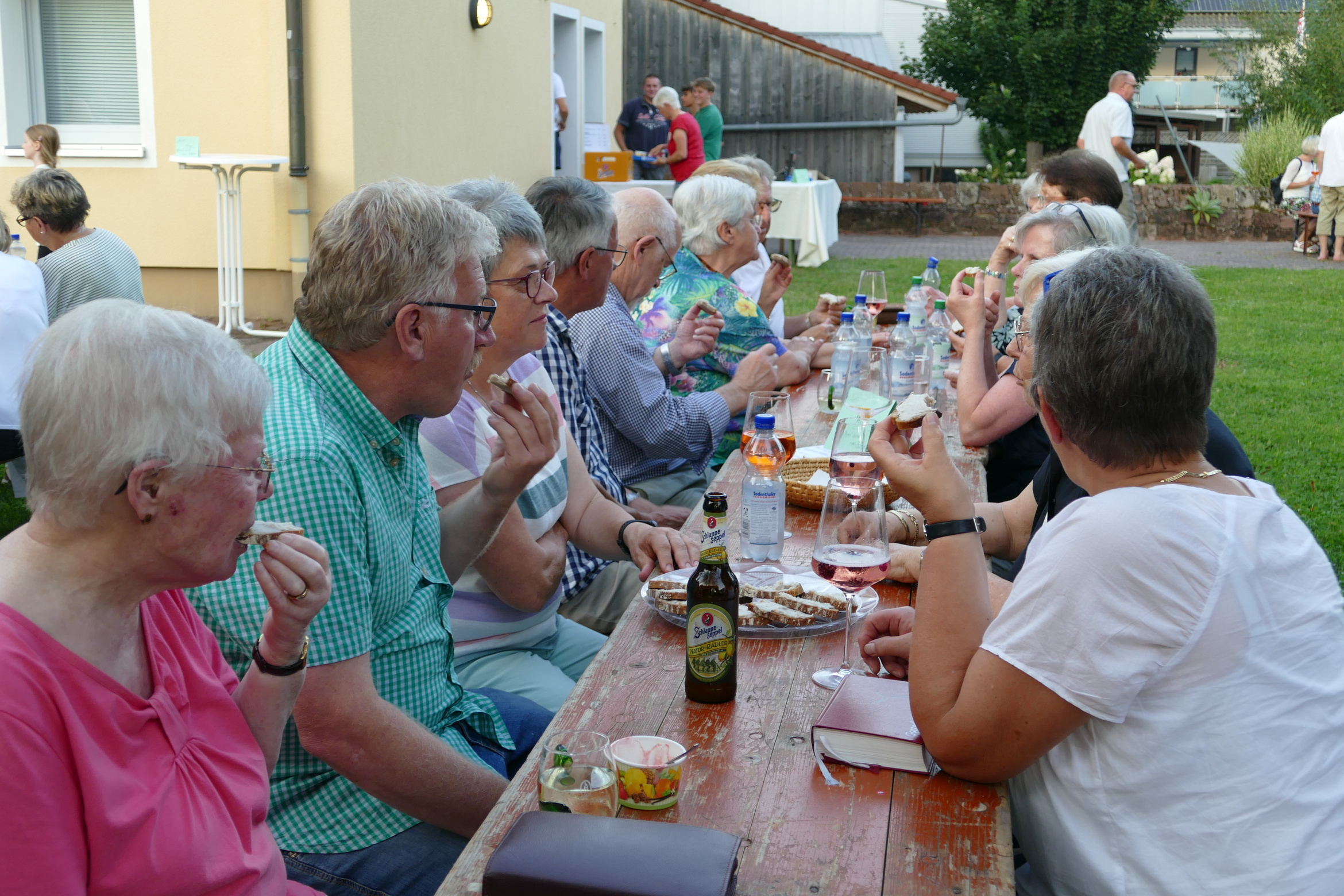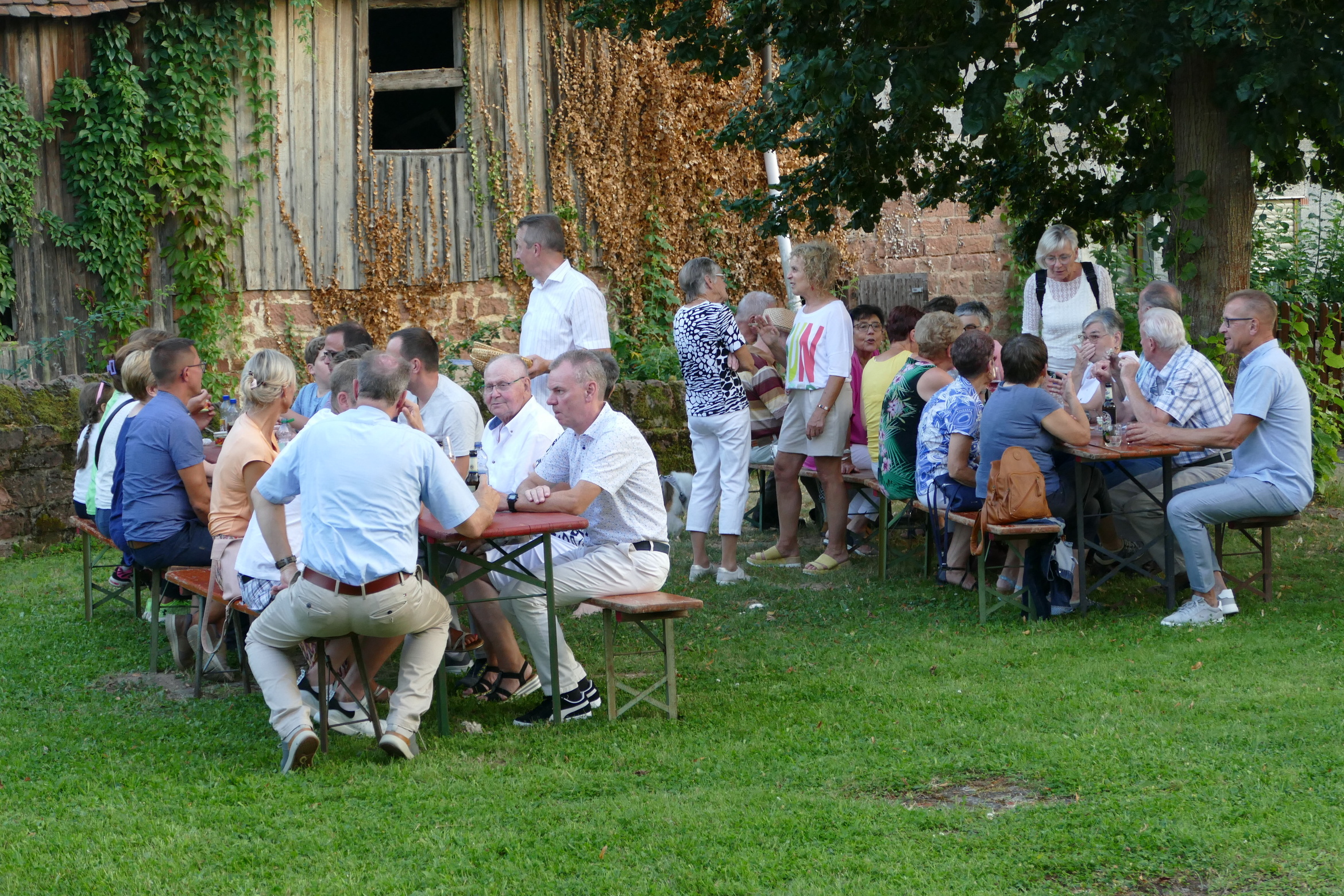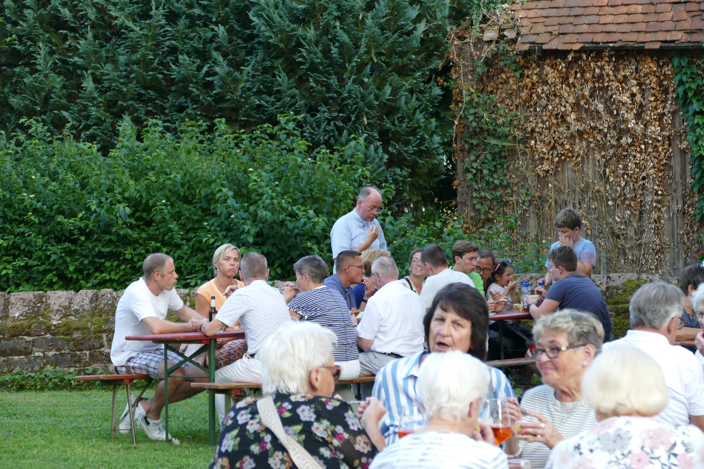 Im Anschluss waren im Pfarrgarten die Tische und Bänke gerichtet, neben kühlen Getränken wurden Schmalbrote angeboten wie auch selbstgemachtes Eis.
