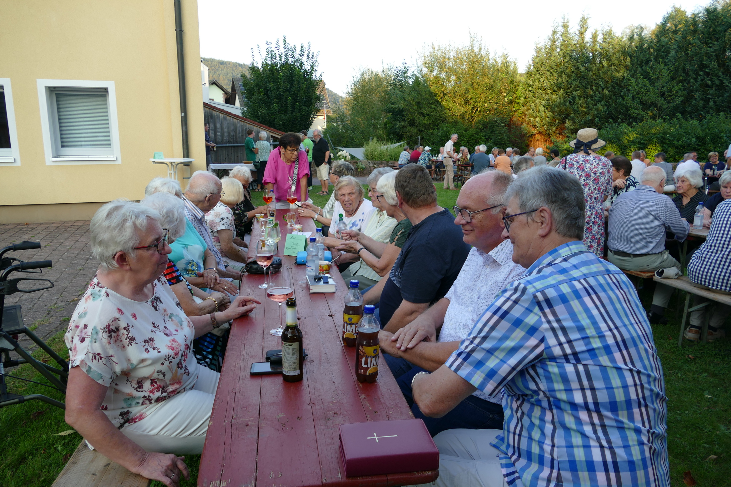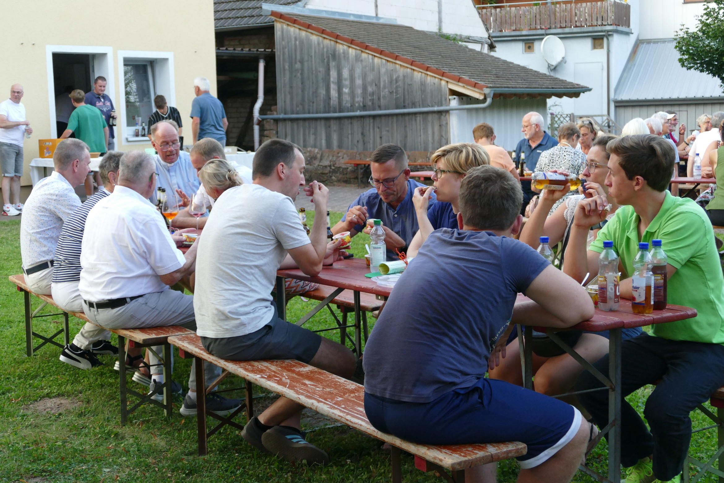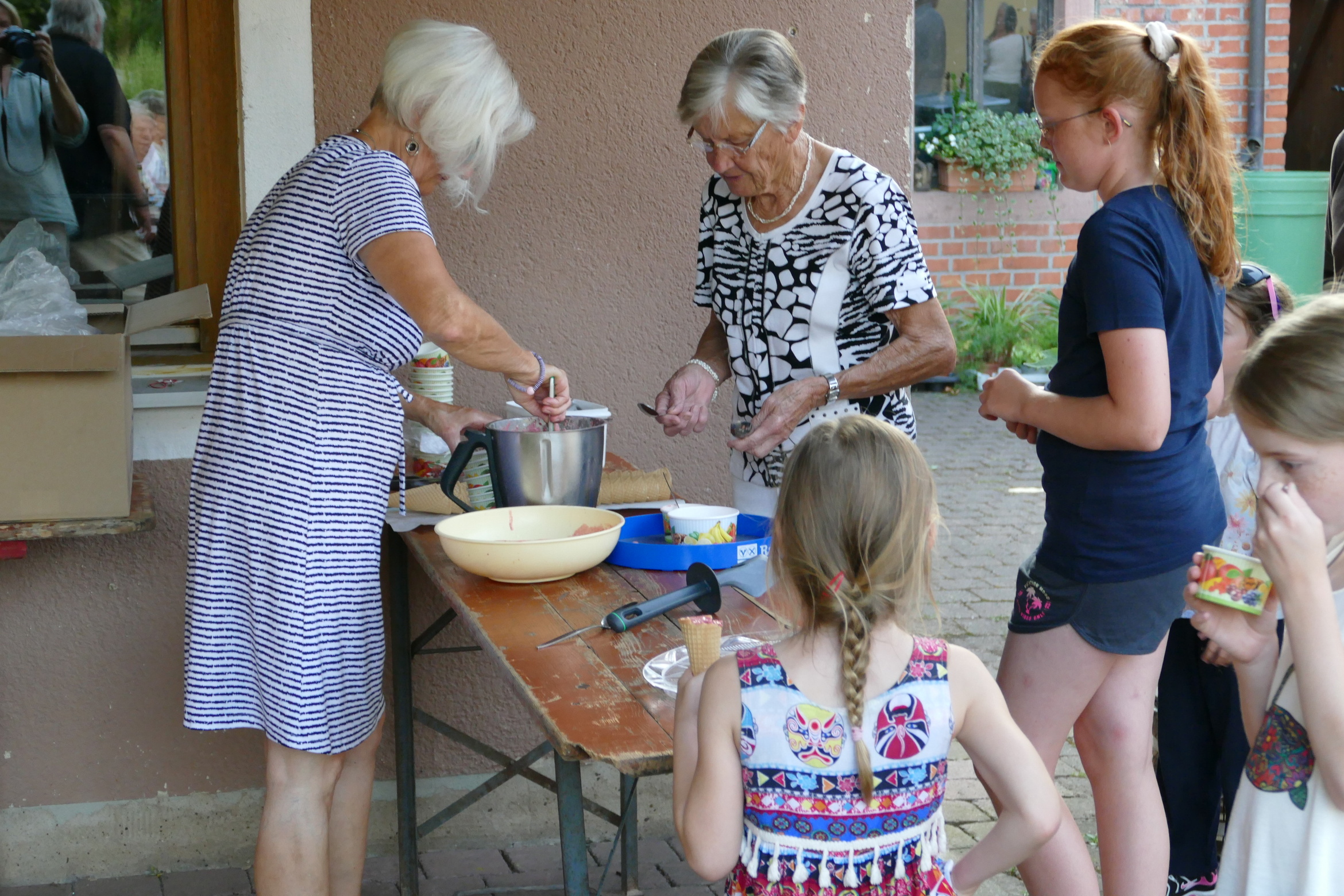 Im Anschluss waren im Pfarrgarten die Tische und Bänke gerichtet, neben kühlen Getränken wurden Schmalbrote angeboten wie auch selbstgemachtes Eis.