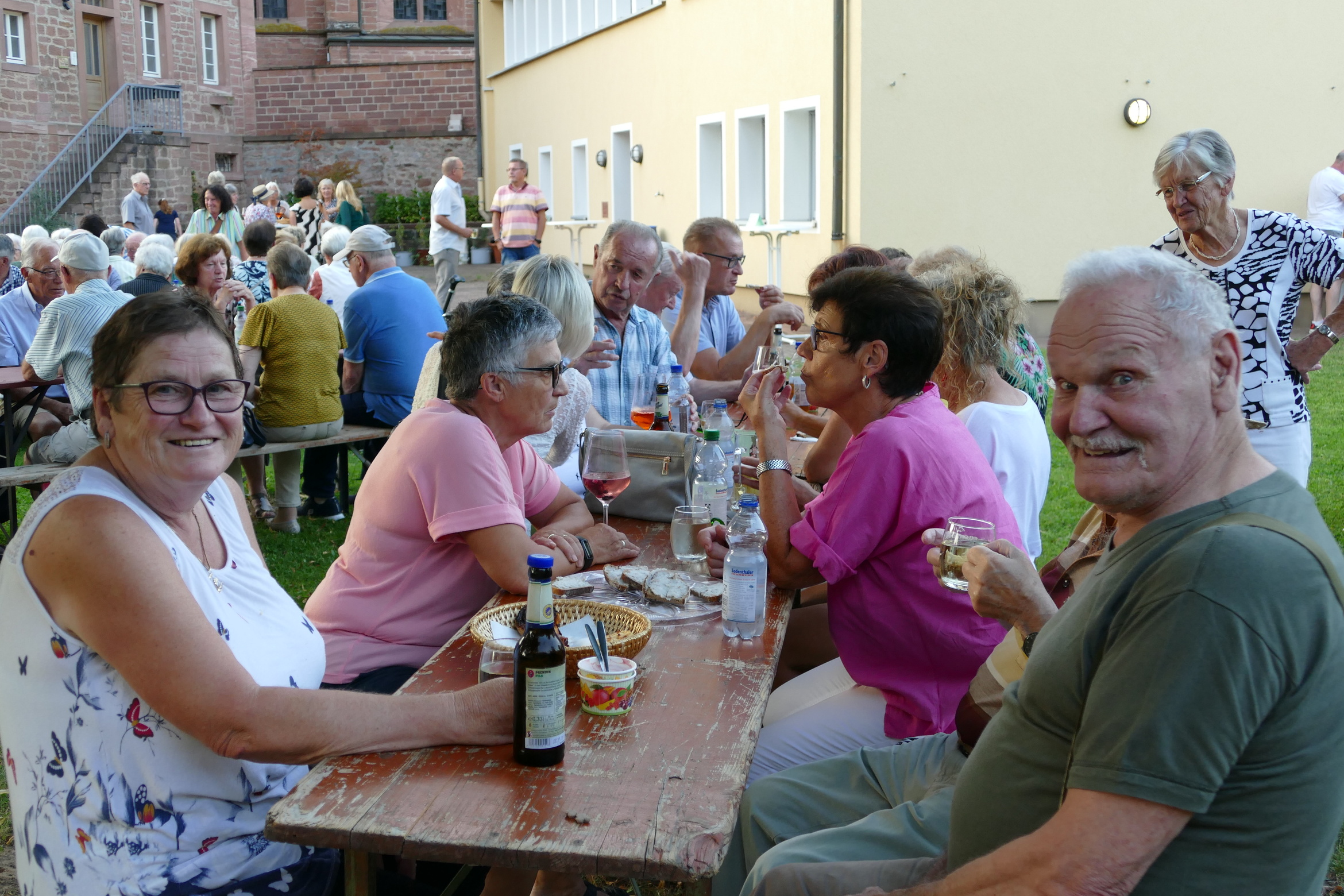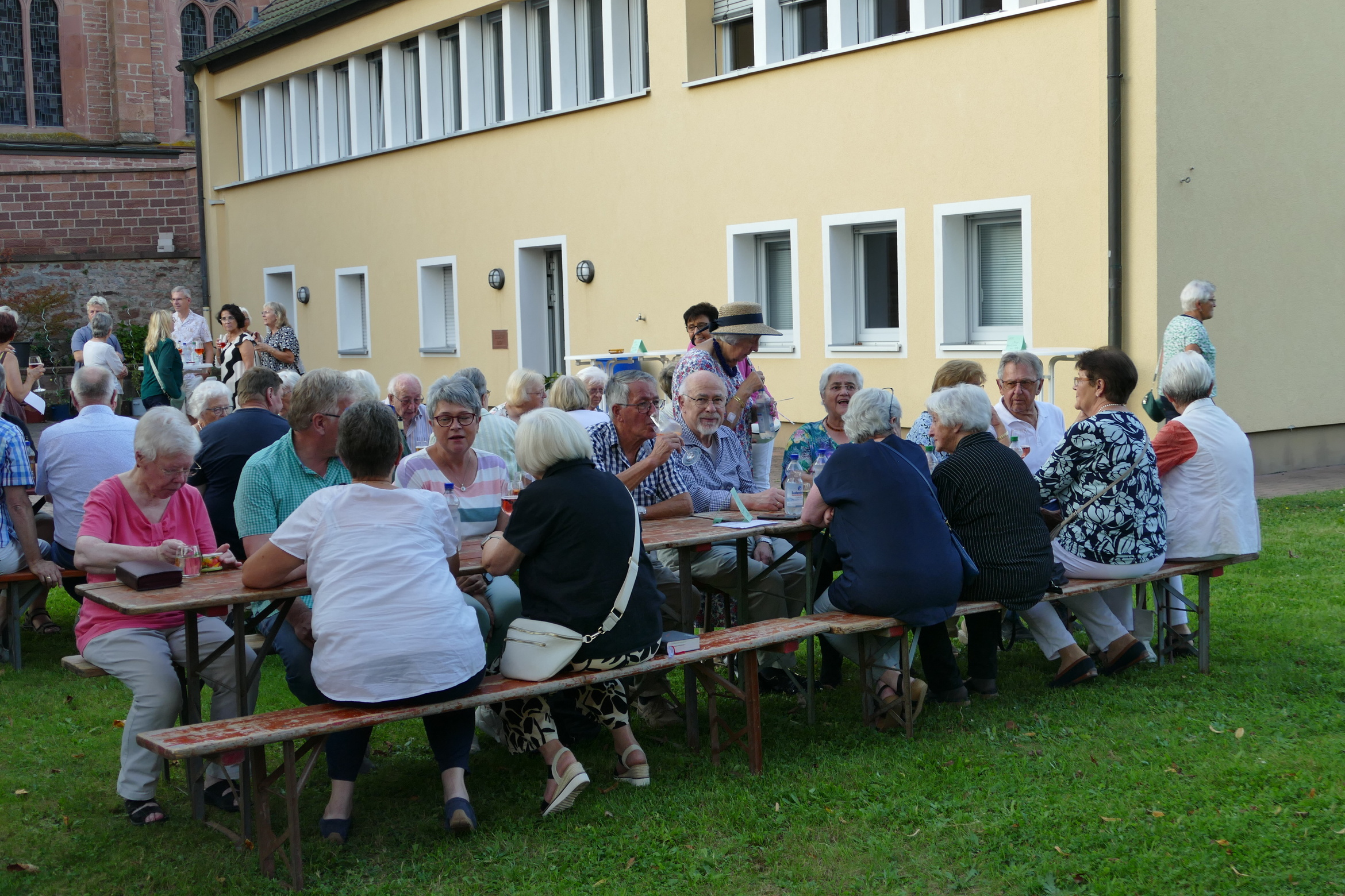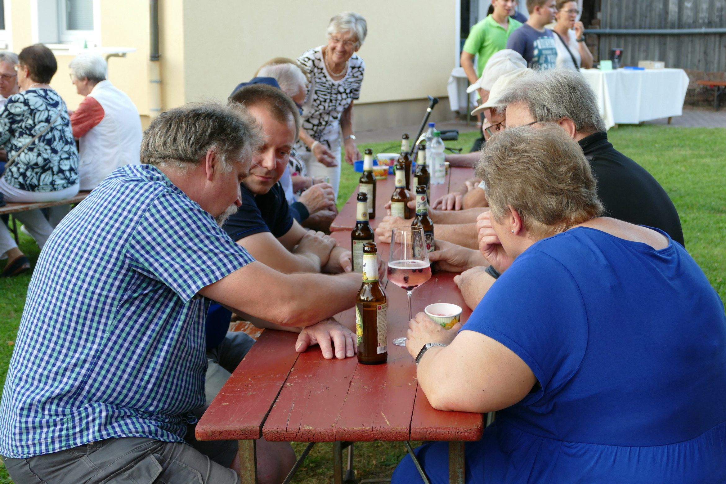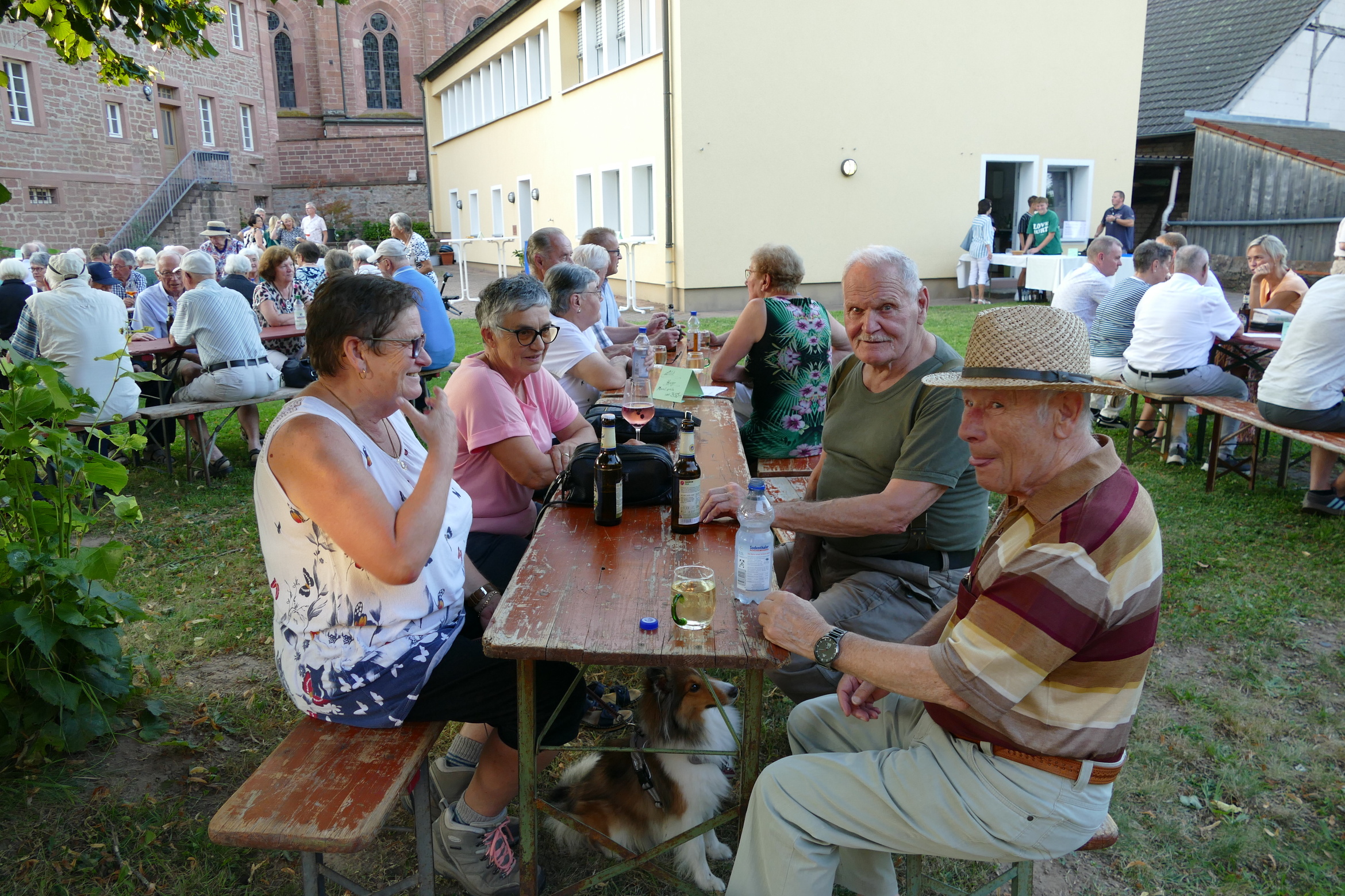 Im Anschluss waren im Pfarrgarten die Tische und Bänke gerichtet, neben kühlen Getränken wurden Schmalbrote angeboten wie auch selbstgemachtes Eis.