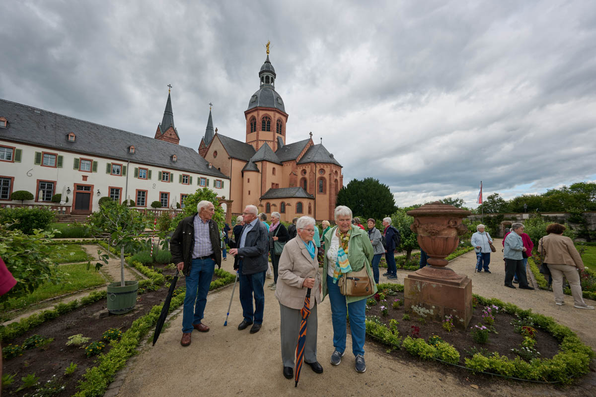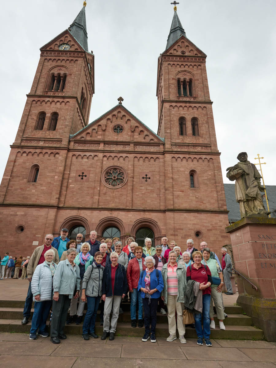 Seligenstadt war in diesem Jahr das Ziel der Seniorenwallfahrt des Dekanates Miltenberg. Gut 250 Seniorinnen und Senioren aus den verschiedenen Gemeinden haben sich auf den Weg gemacht und die Basilika wie auch den wunderschönen Klostergarten besucht. Von Kirchzell starteten gut 50 Senioren gemeinsam mit dem Seniorenkreisteam und Pfarrer Michael Prokschi. Es blieb genügend Zeit um vor dem Gottesdienst die ehemalige Klosteranlage der Benediktiner zu besichtigen, den Klostergarten und auch die Wallfahrtskirche. Nach dem gemeinsamen Gottesdienst mit Pfarrer Jan Jölbel führte der Weg nach Großwallstadt ins Weingut Gunther zur Abendeinkehr.