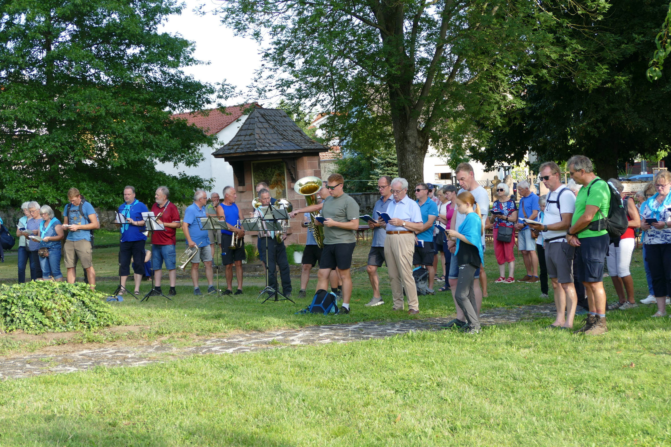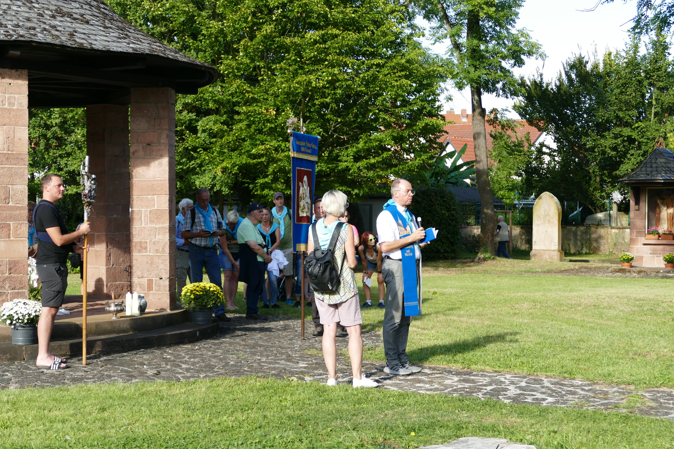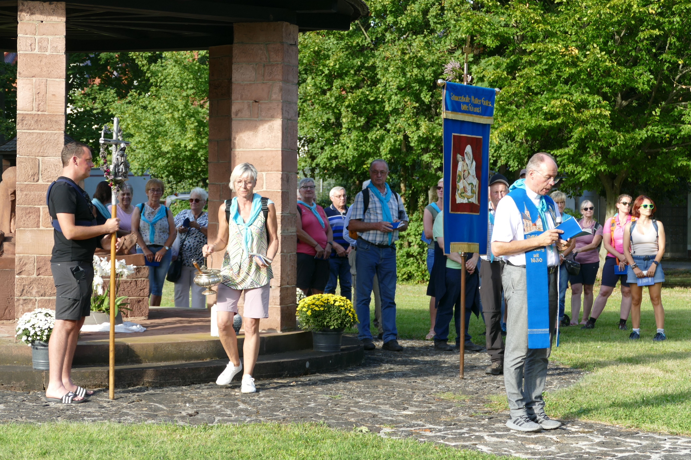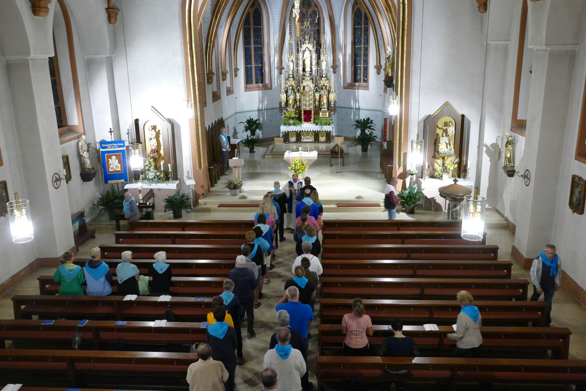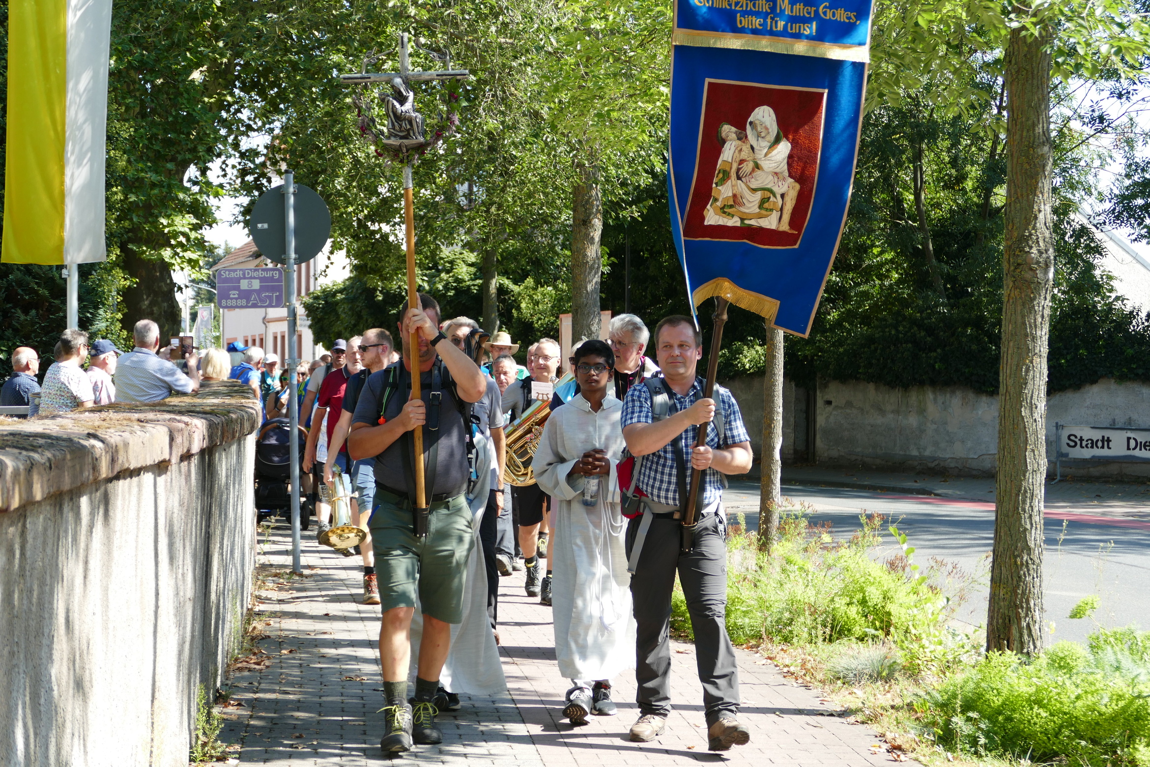 „Beim frühen Morgenlichtr..“, so erklang es noch im Dunkeln, als sich am morgen des 06.September die ersten 30 Wallfahrerinnen und Wallfahrer auf den Weg ins benachbarte Dieburg machten. Nach dem Gottesdienst um 5.30 Uhr in der Pfarrkirche startete die Gruppe, die Strecke ganz zu Fuß zurück legte. Am ersten Tag immerhin 40km. Und auch am 07.September fand um 5.30 Uhr der Frühgottesdienst statt. Nochmals knapp 40 Personen starteten hier den Wallfahrtstag. In Groß Umstadt kamen beide Gruppen zusammen und legten die letzten 12 km bis Dieburg zurück.