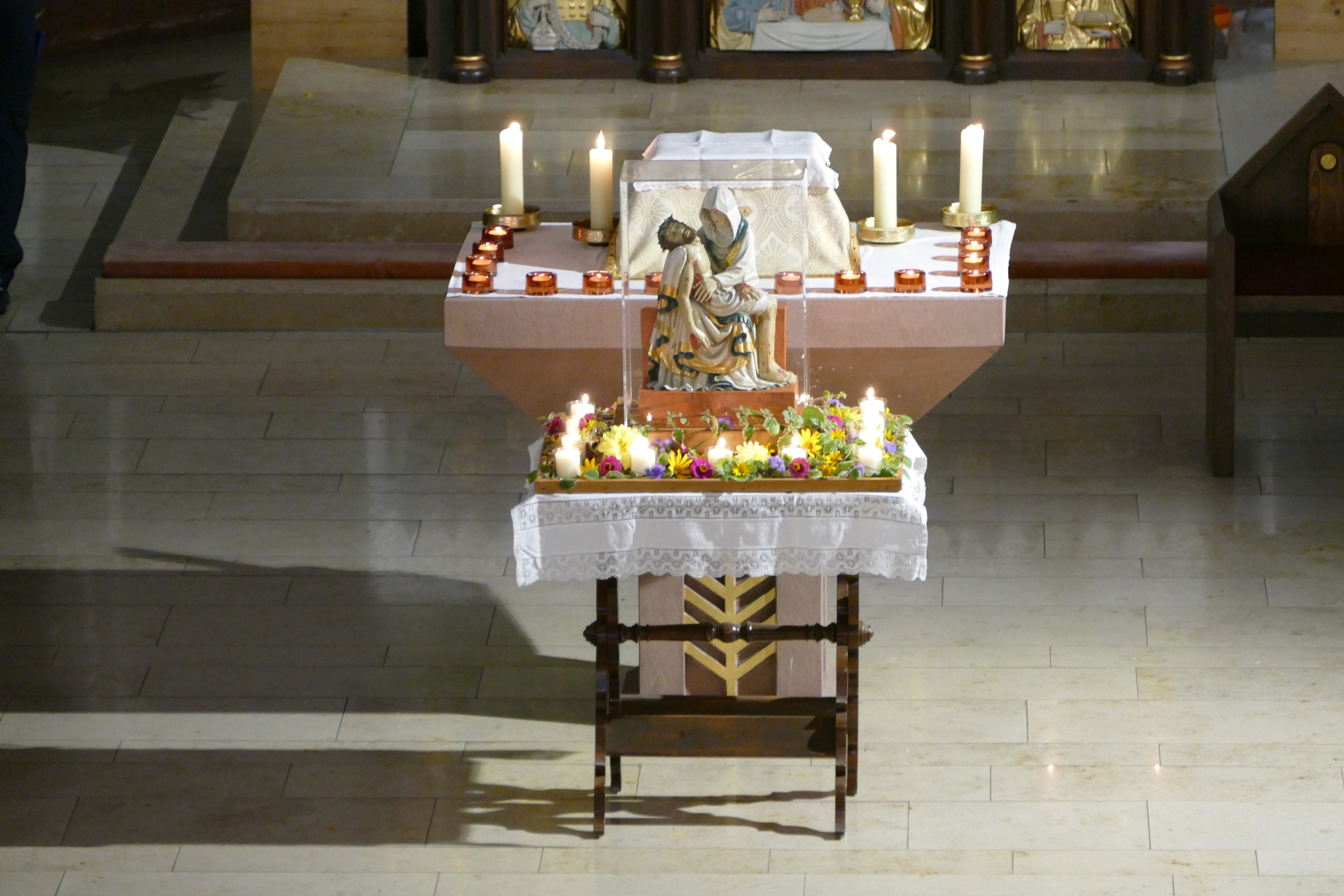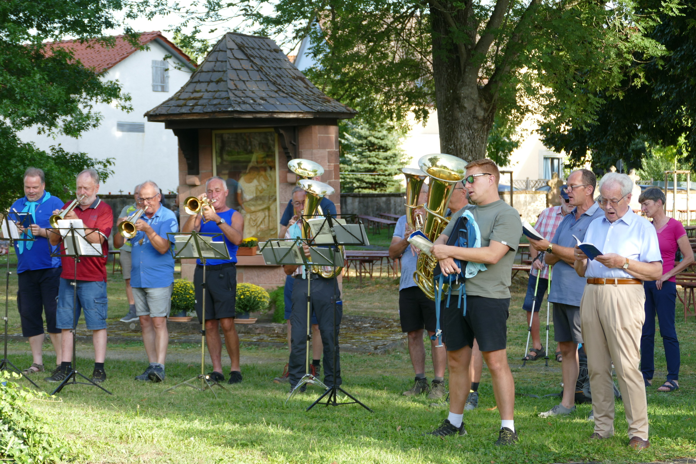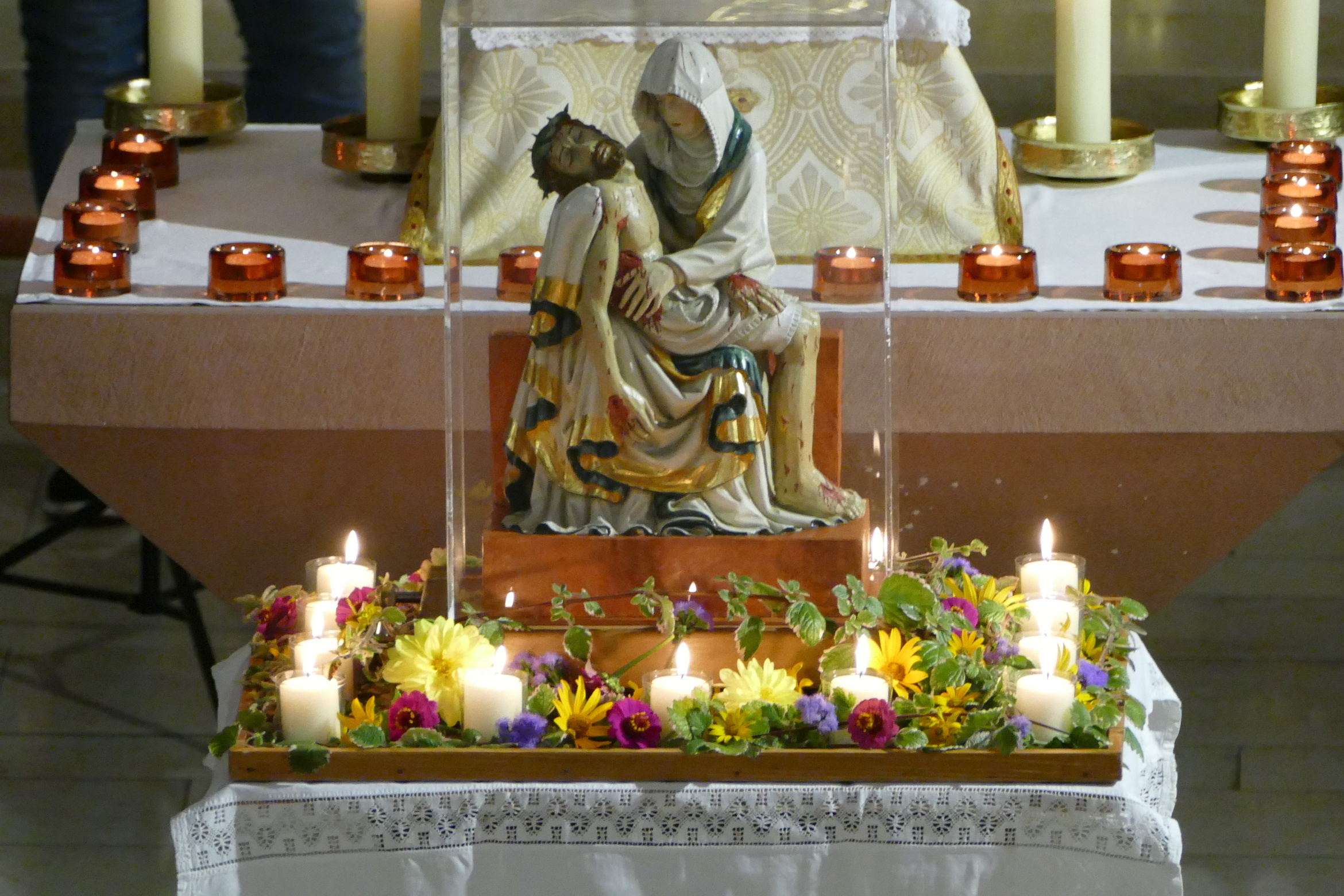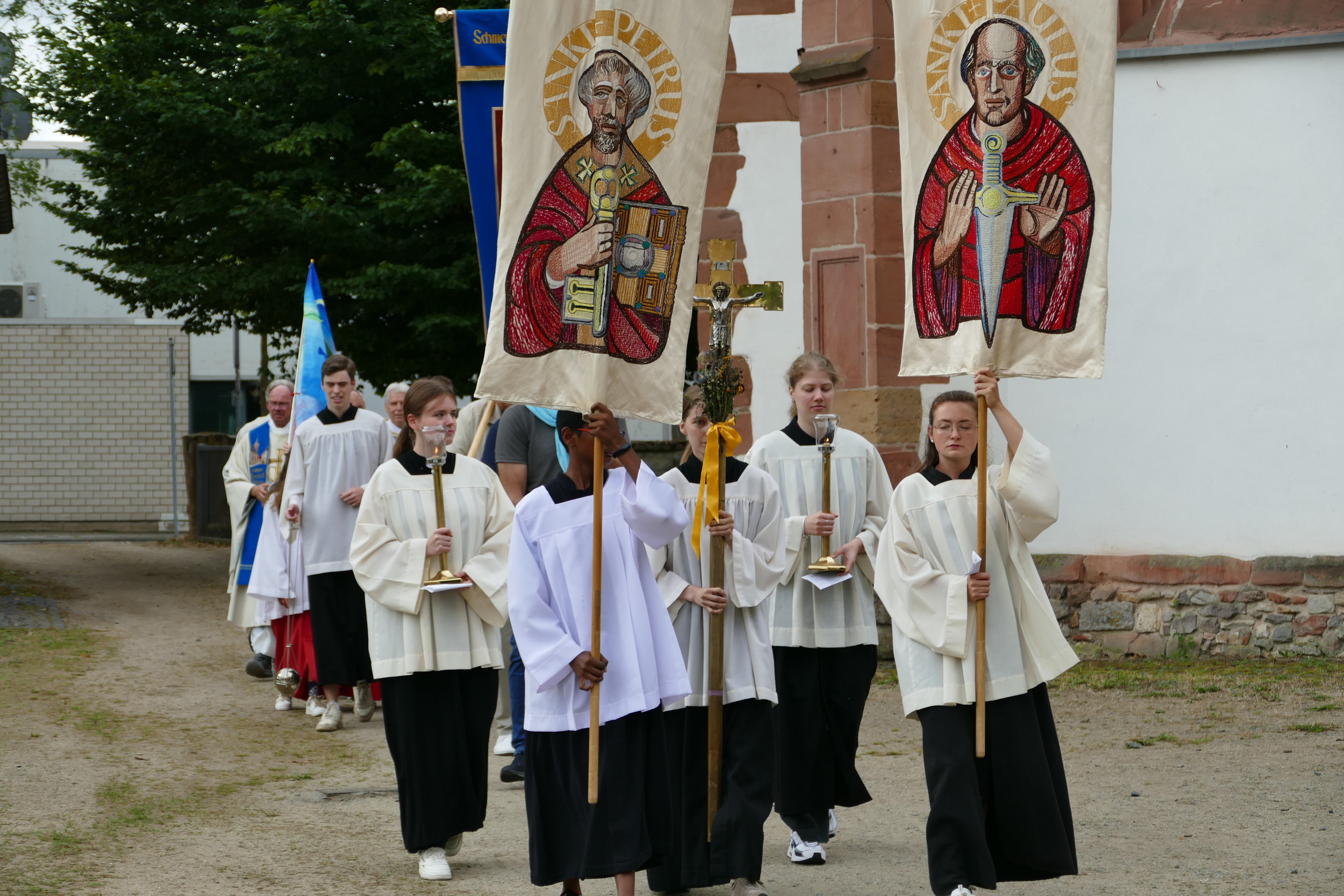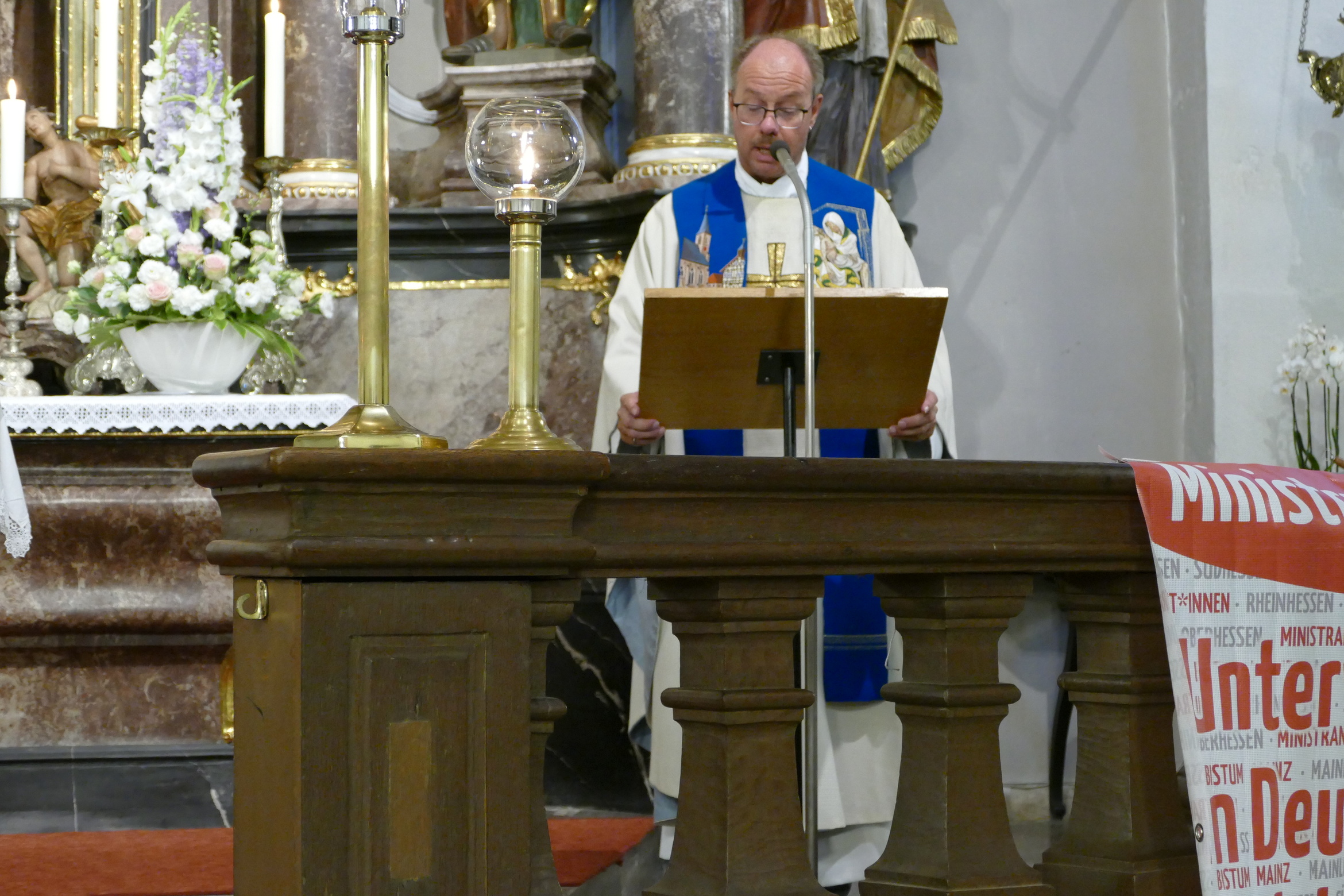 „Beim frühen Morgenlichtr..“, so erklang es noch im Dunkeln, als sich am morgen des 06.September die ersten 30 Wallfahrerinnen und Wallfahrer auf den Weg ins benachbarte Dieburg machten. Nach dem Gottesdienst um 5.30 Uhr in der Pfarrkirche startete die Gruppe, die Strecke ganz zu Fuß zurück legte. Am ersten Tag immerhin 40km. Und auch am 07.September fand um 5.30 Uhr der Frühgottesdienst statt. Nochmals knapp 40 Personen starteten hier den Wallfahrtstag. In Groß Umstadt kamen beide Gruppen zusammen und legten die letzten 12 km bis Dieburg zurück.