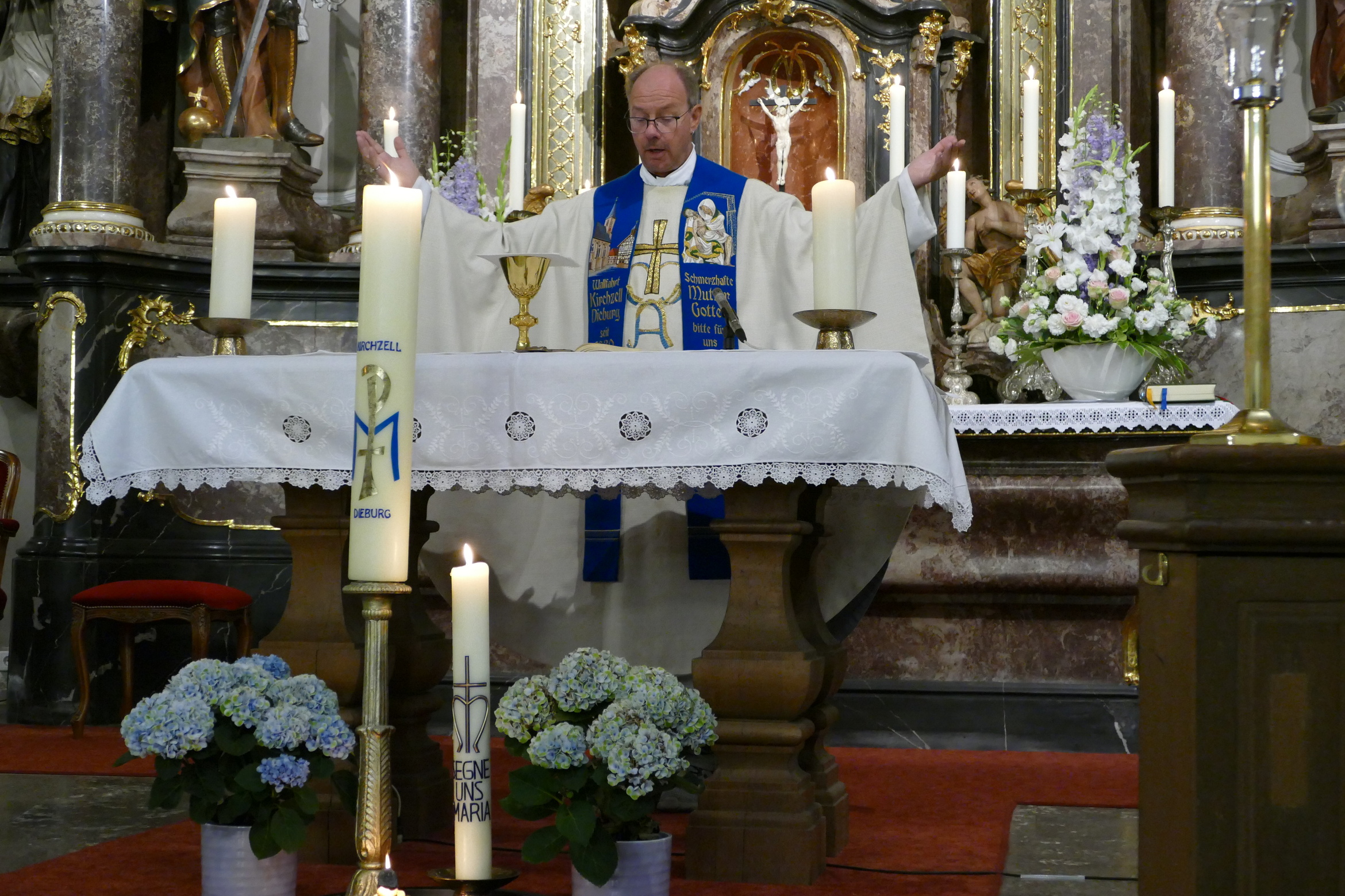 Nach dem gebet an den Altären in der Pfarrkirche und dem Singen von Marienliedern starten alle mit dem Bus Richtung Kirchzell, wo heuer witterungsbedingt der festliche Abschluss direkt in der Pfarrkirche stattfand.