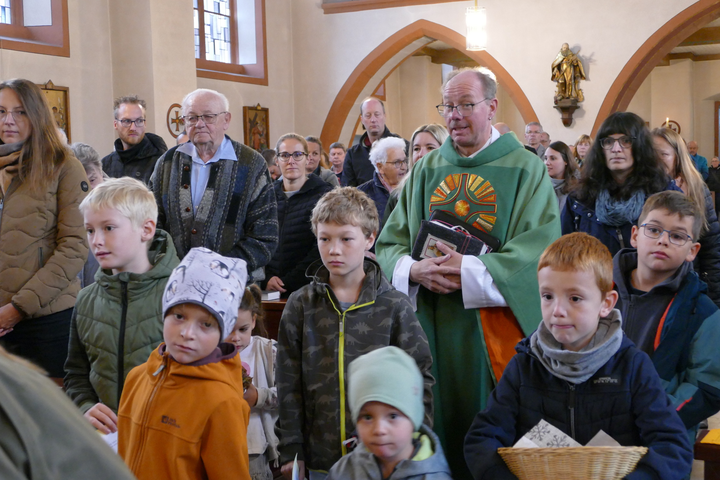 Eine große Schar von Kindern mit ihren Erntekörbchen zog mit den Ministranten und mit Pfarrer Michael Prokschi in die prächtig geschmückte Kirchzeller Pfarrkirche ein.