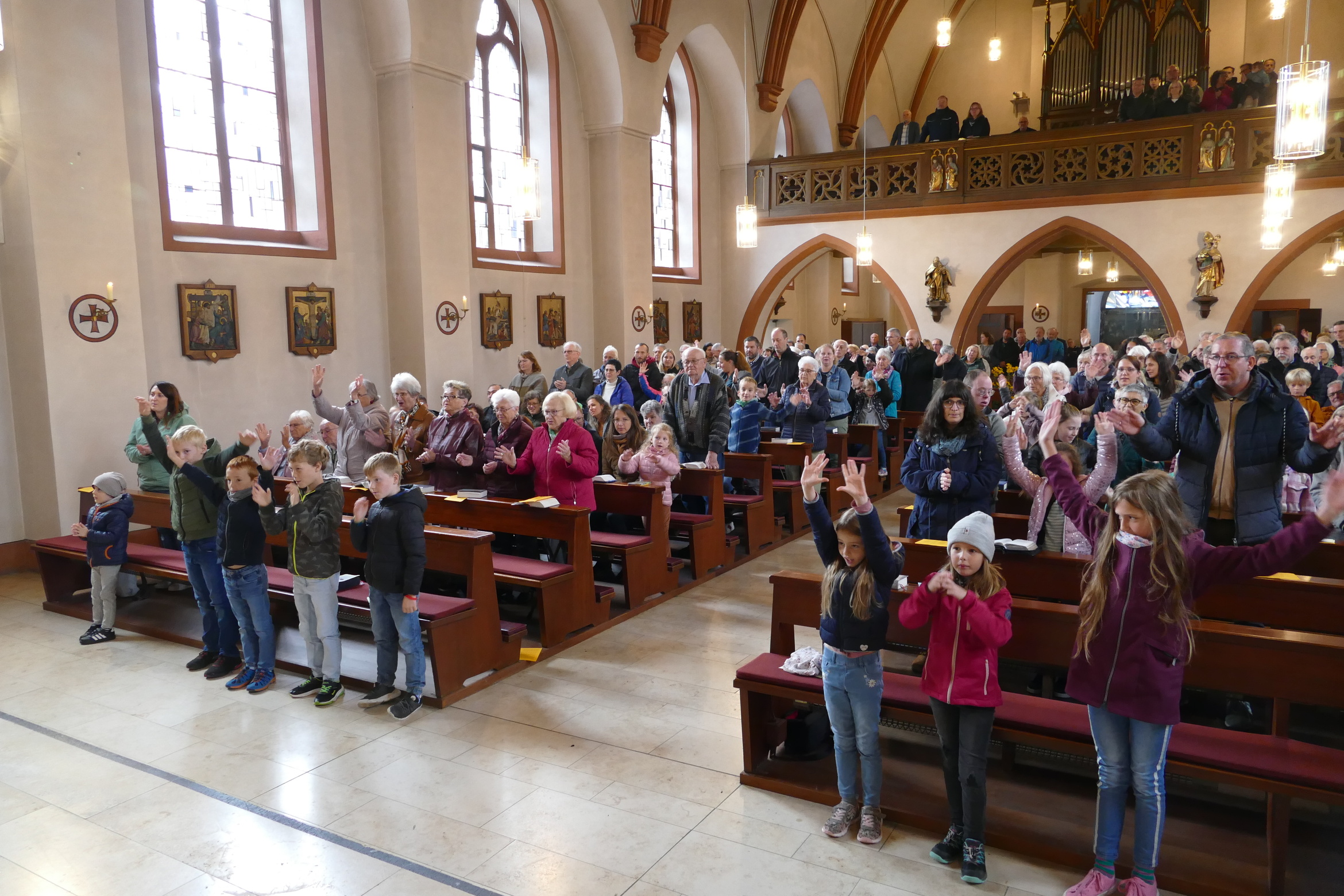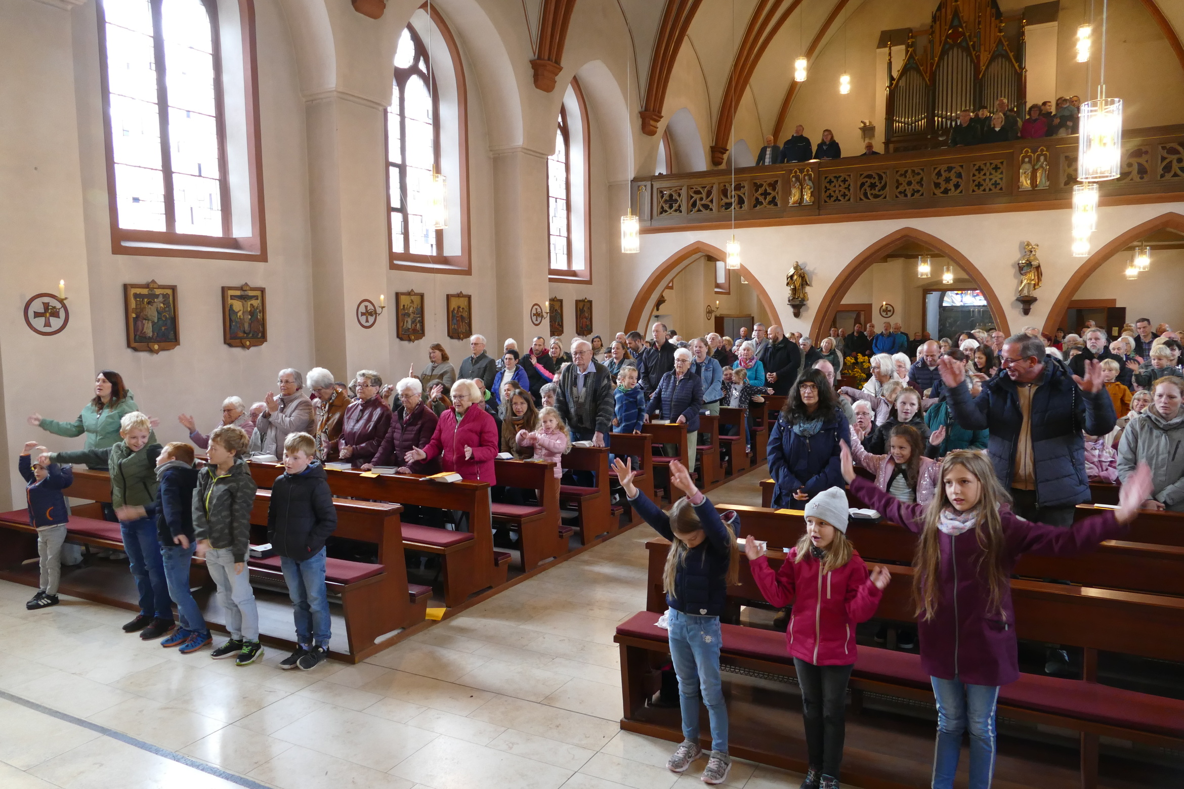 Die Kinder zeigten anhand von einem Spiel, einer Uhr, einer Blume oder auch einem Smiley, für was es alles zu danken gilt. Die Gemeinde konnten sich dann austauschen, für was der Nachbar in der Bank danken möchte.