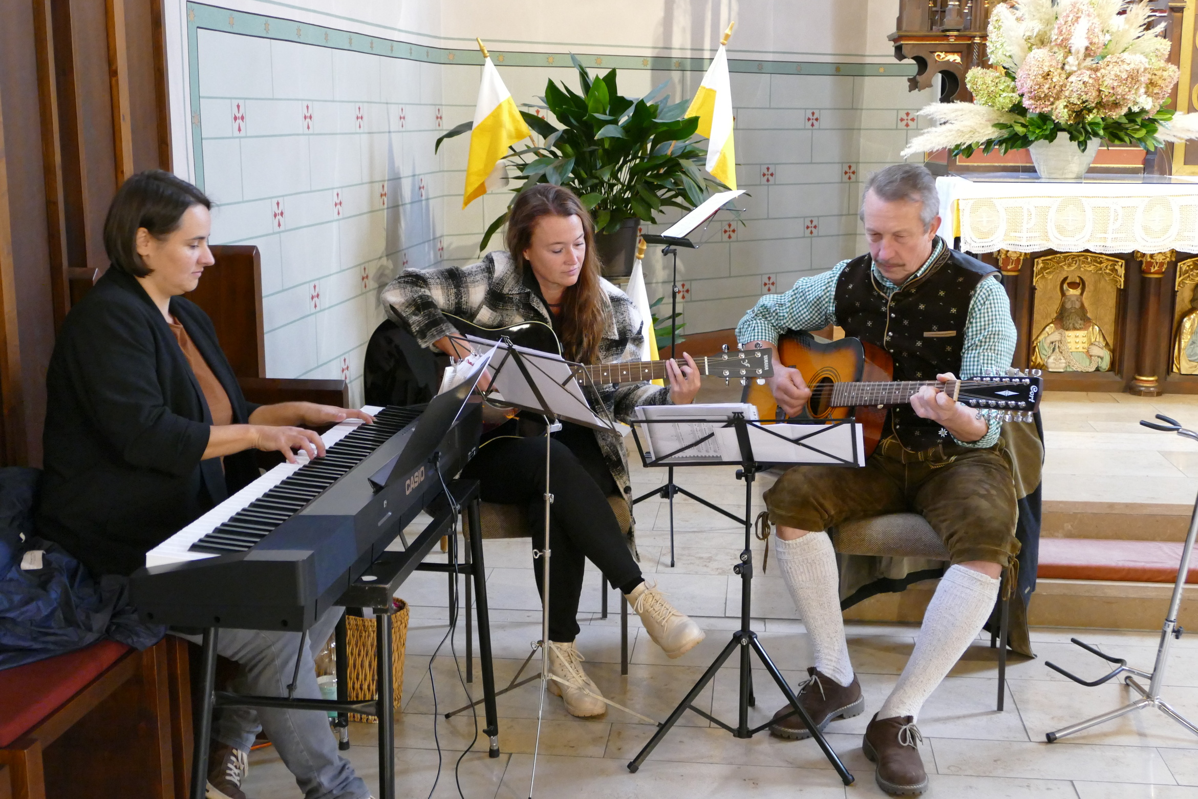 Musikalisch wurde der Gottesdienst von einer Musikgruppe mit Gitarre, Querflöte und Keyboard mitgestaltet.