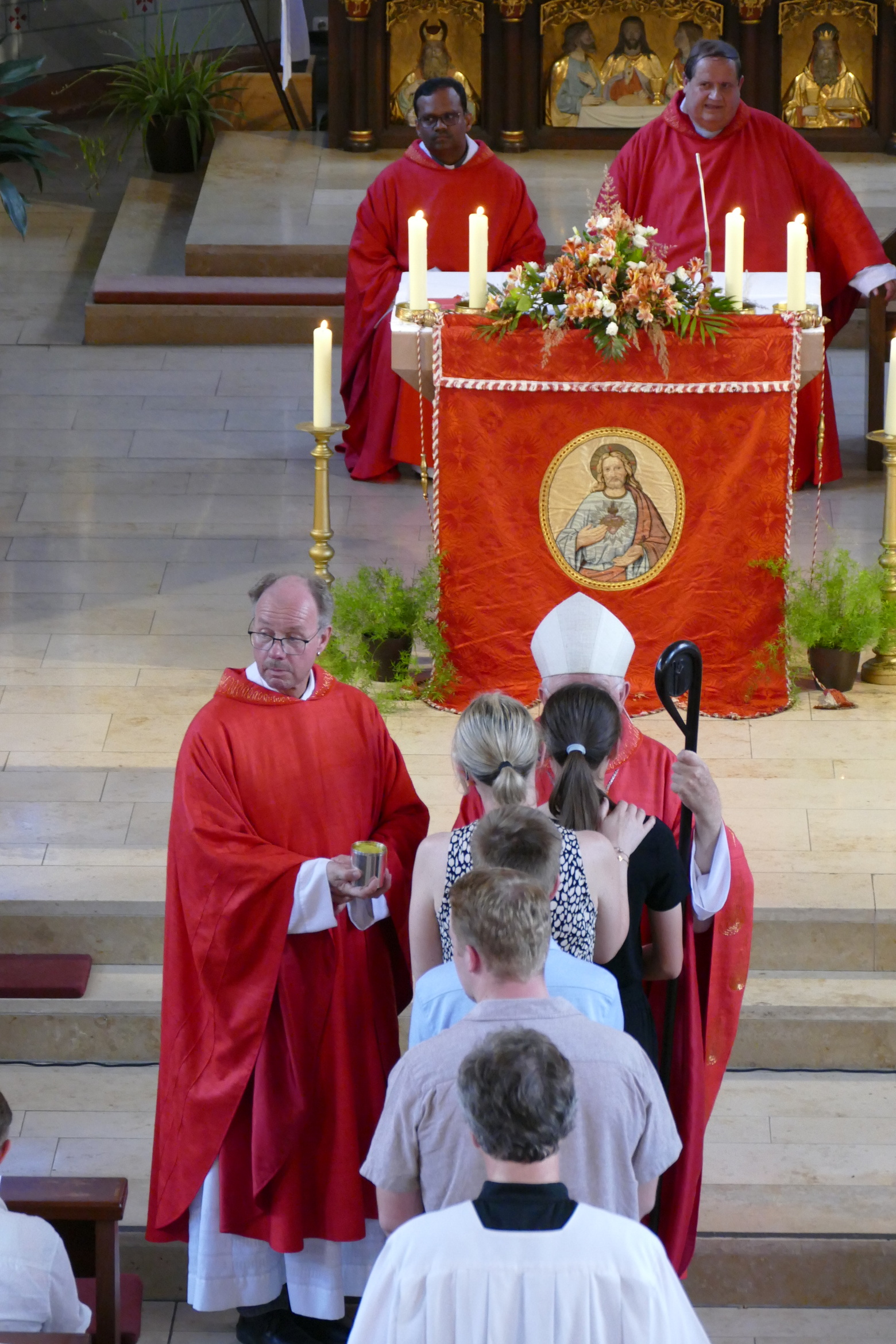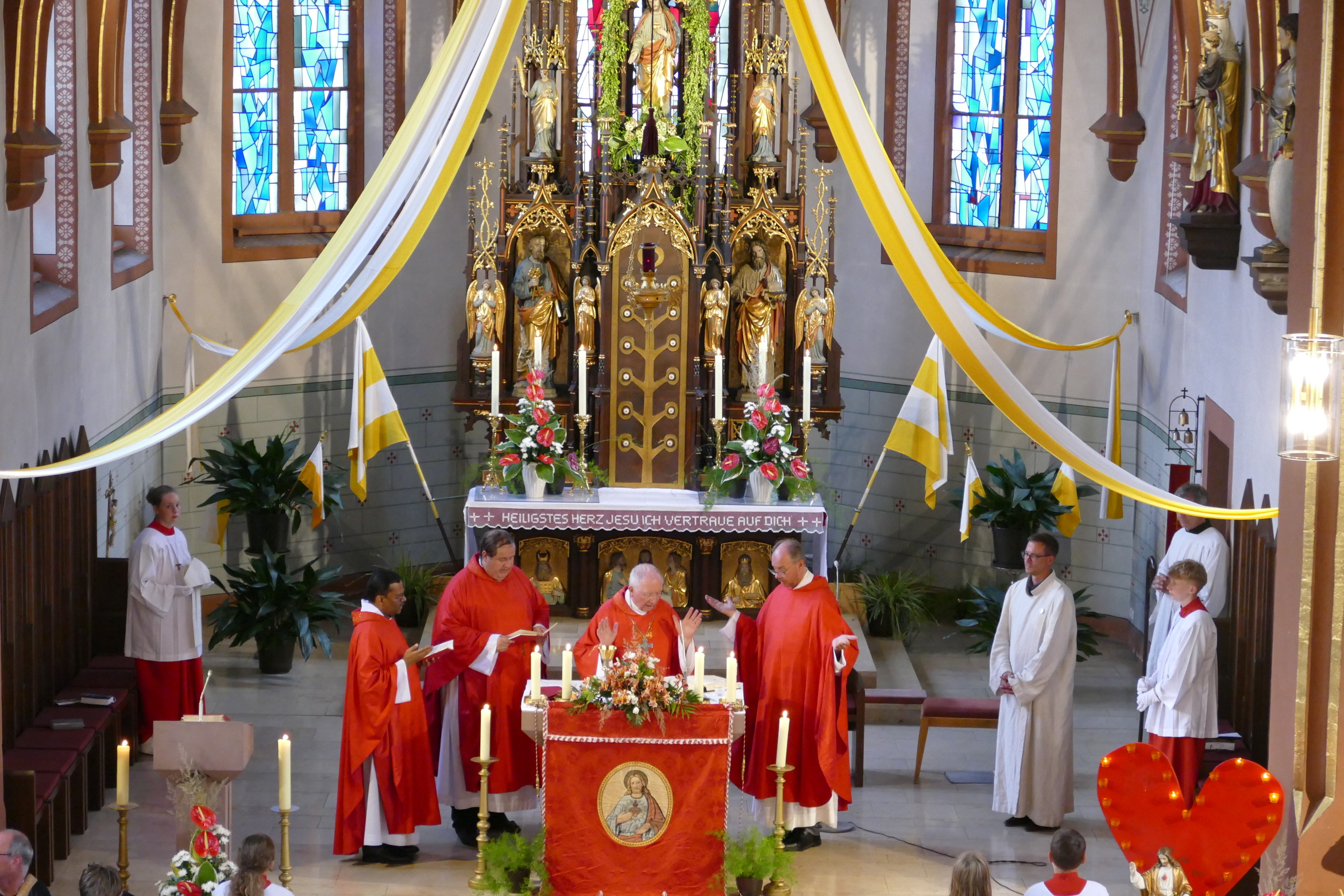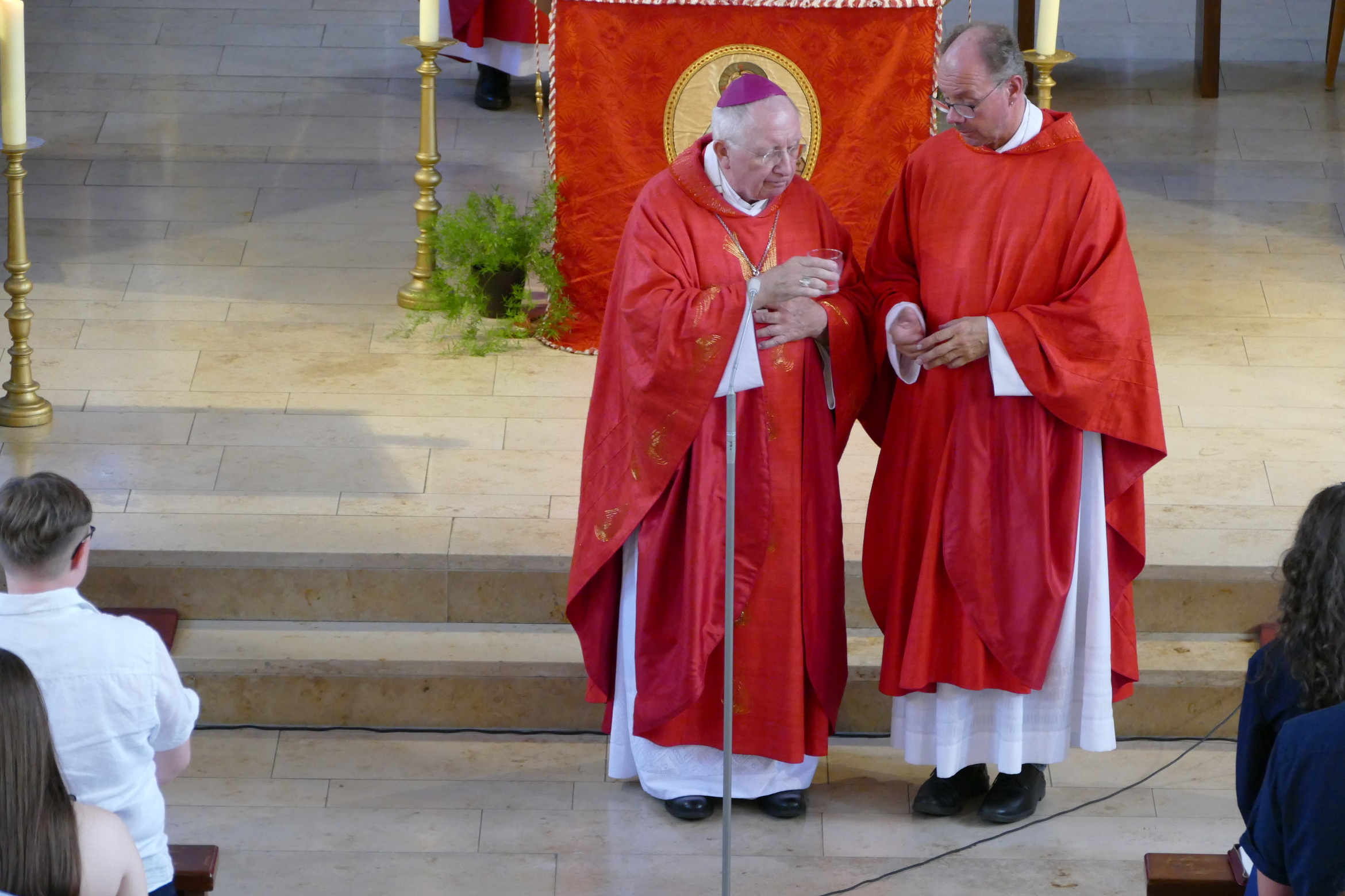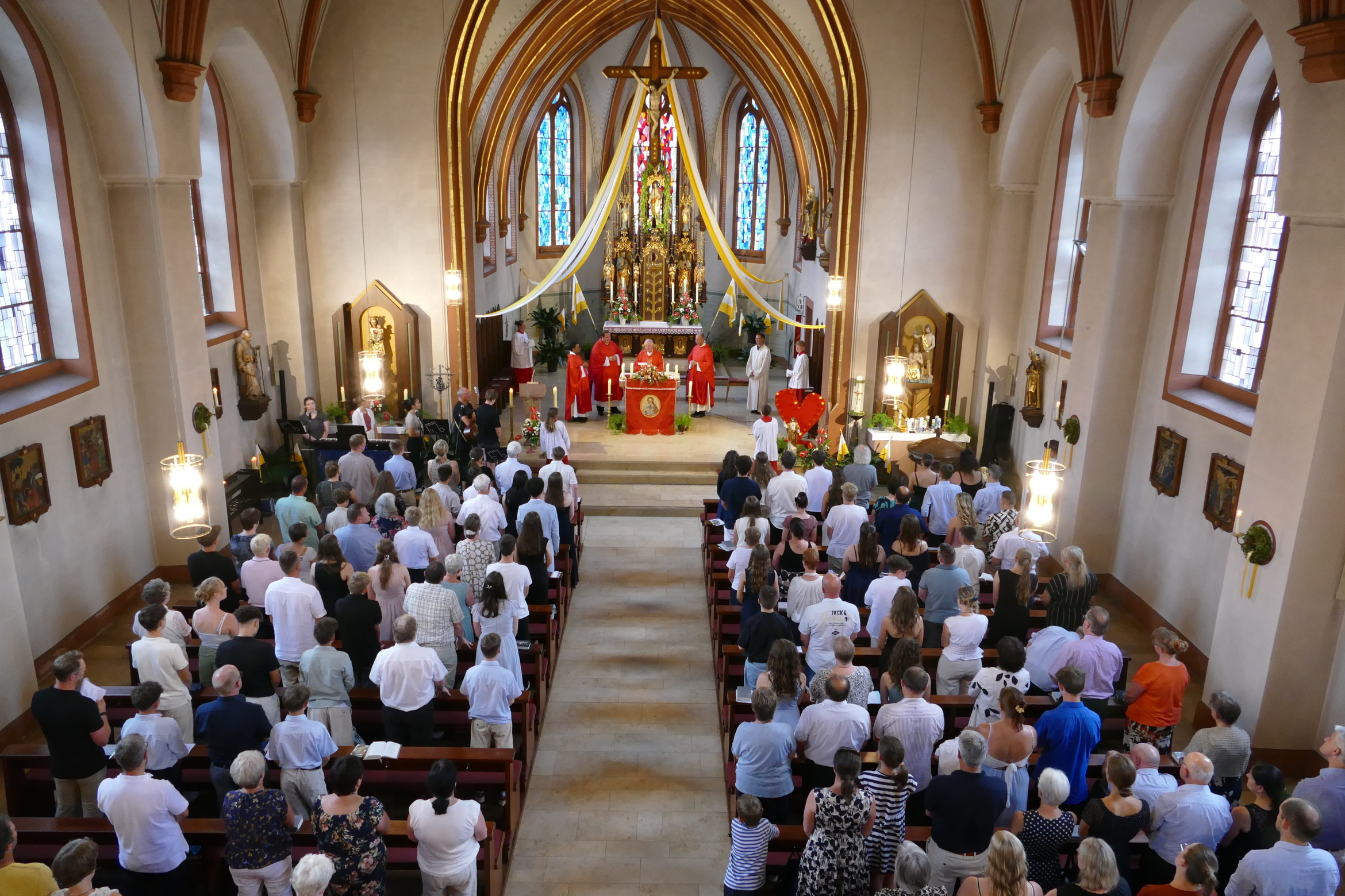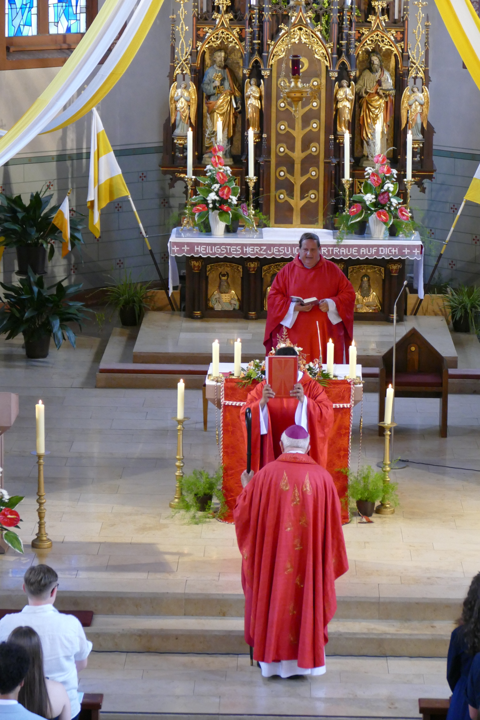 Bei schwül warmen Temperaturen war die Pfarrkirche Kirchzell gut gefüllt, die Band Terikto wie auch Marcel Markert an der Orgel gestalteten den Gottesdienst musikalisch mit. Weihbischof Boom wusste die Jugendlichen in seiner frei gehalteten Predigt direkt und persönlich anzusprechen. Hob das Plus im Glauben hervor, für welches sich zu leben lohnt. Im Blick auf das Herz Jesu wie auch die beiden Apostelfürsten Petrus und Paulus lud er ein, sich immer wieder einzusetzen, Liebe zu schenken und auch bei Zweifel und Wankelmut auf Christus zu blicken.
