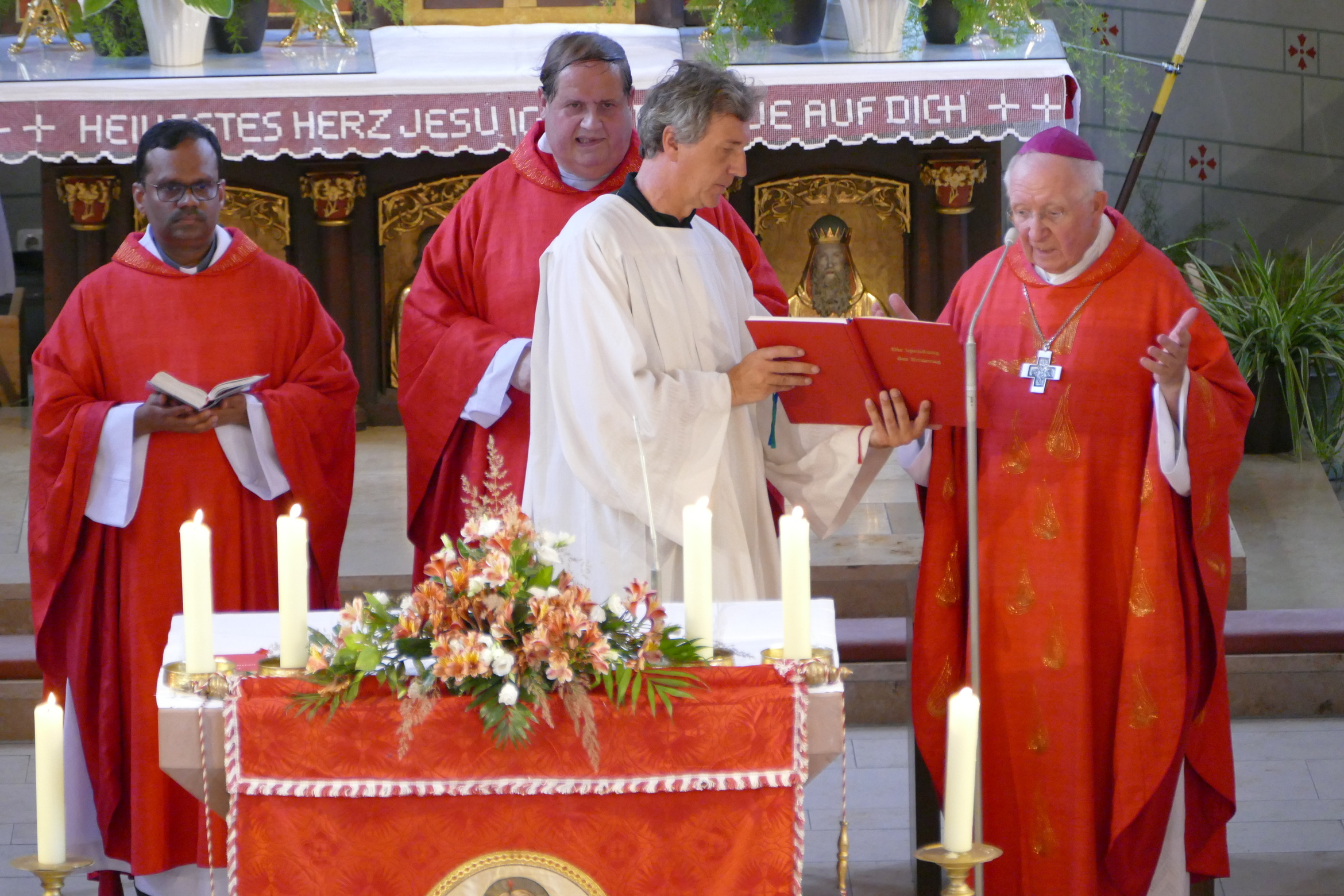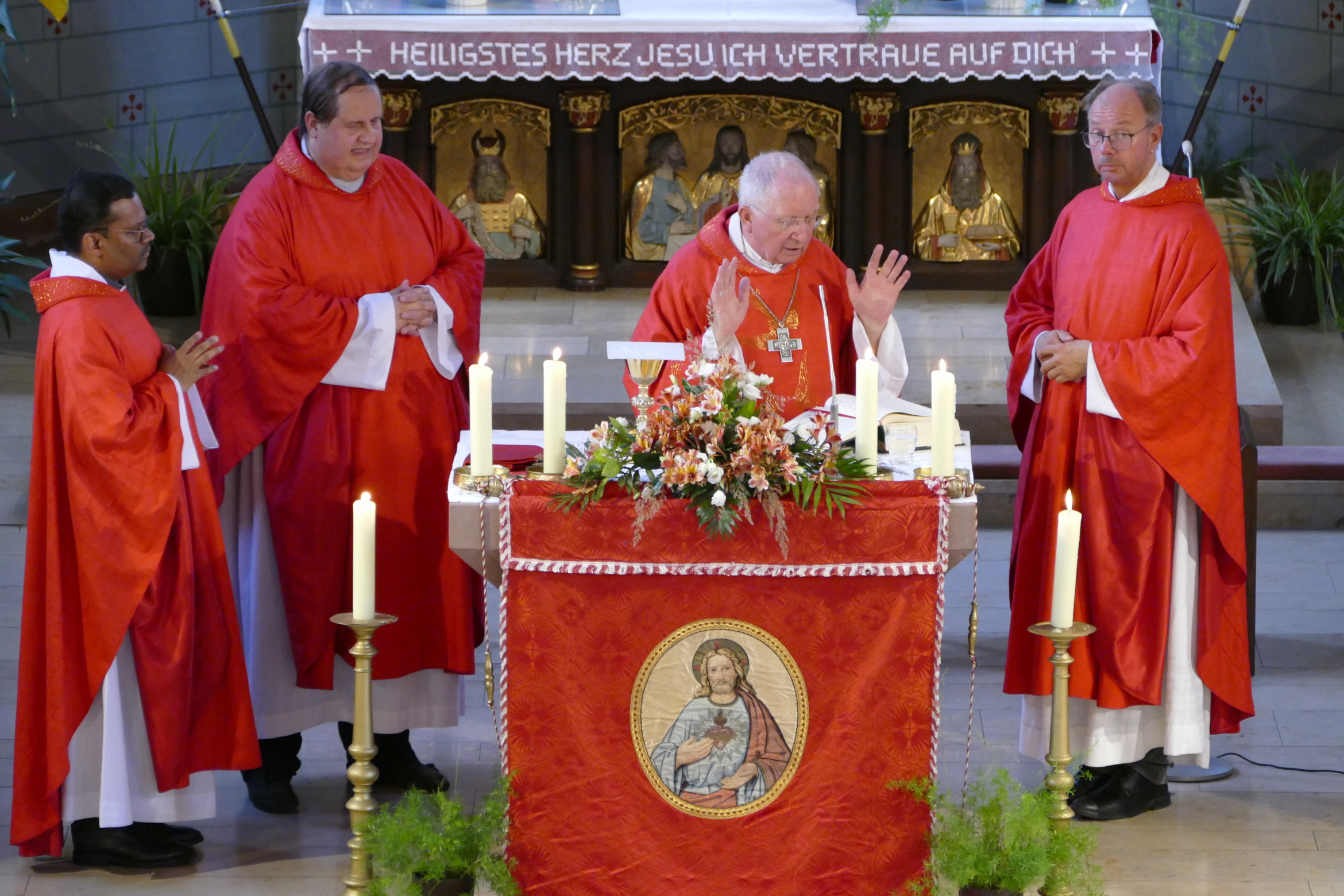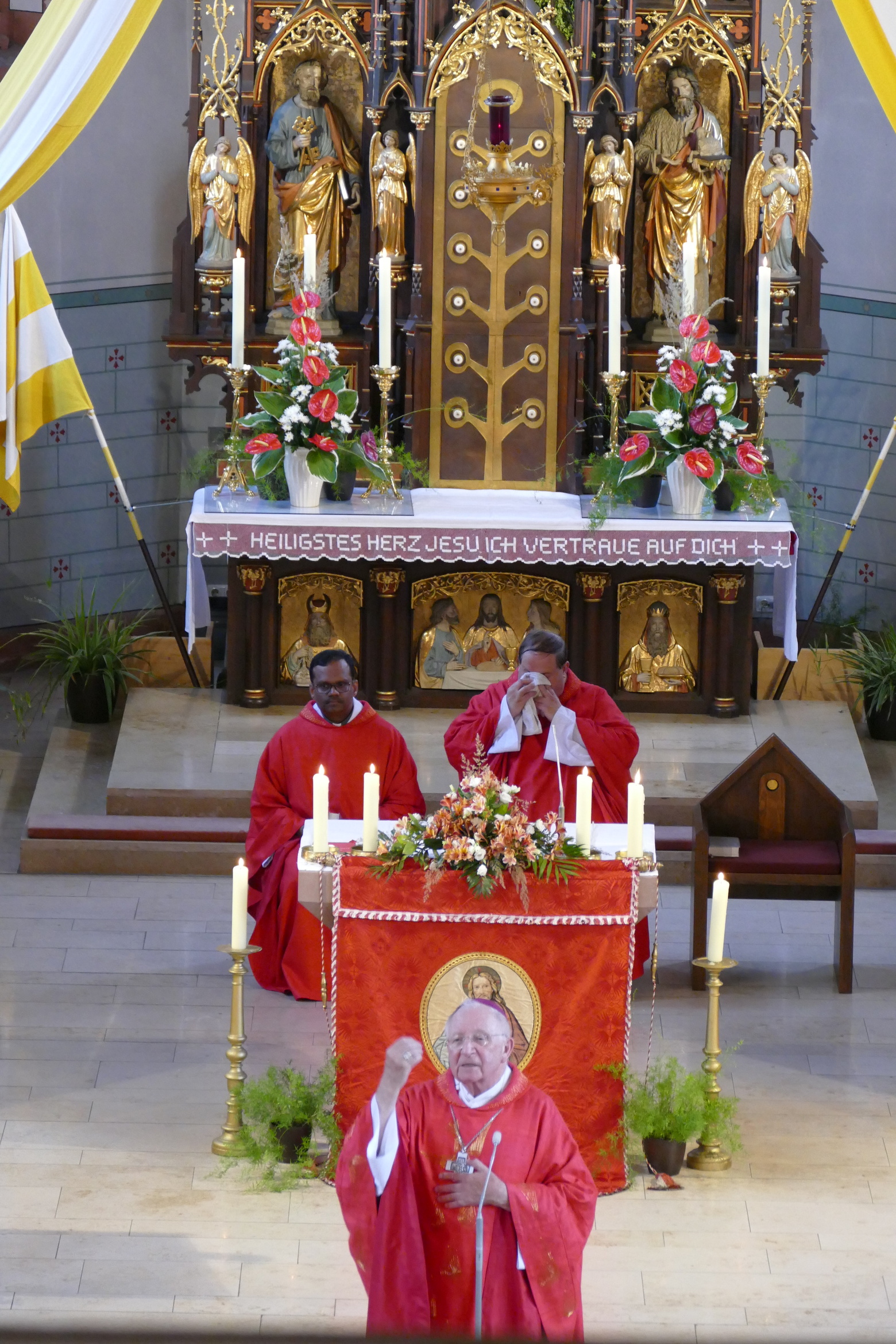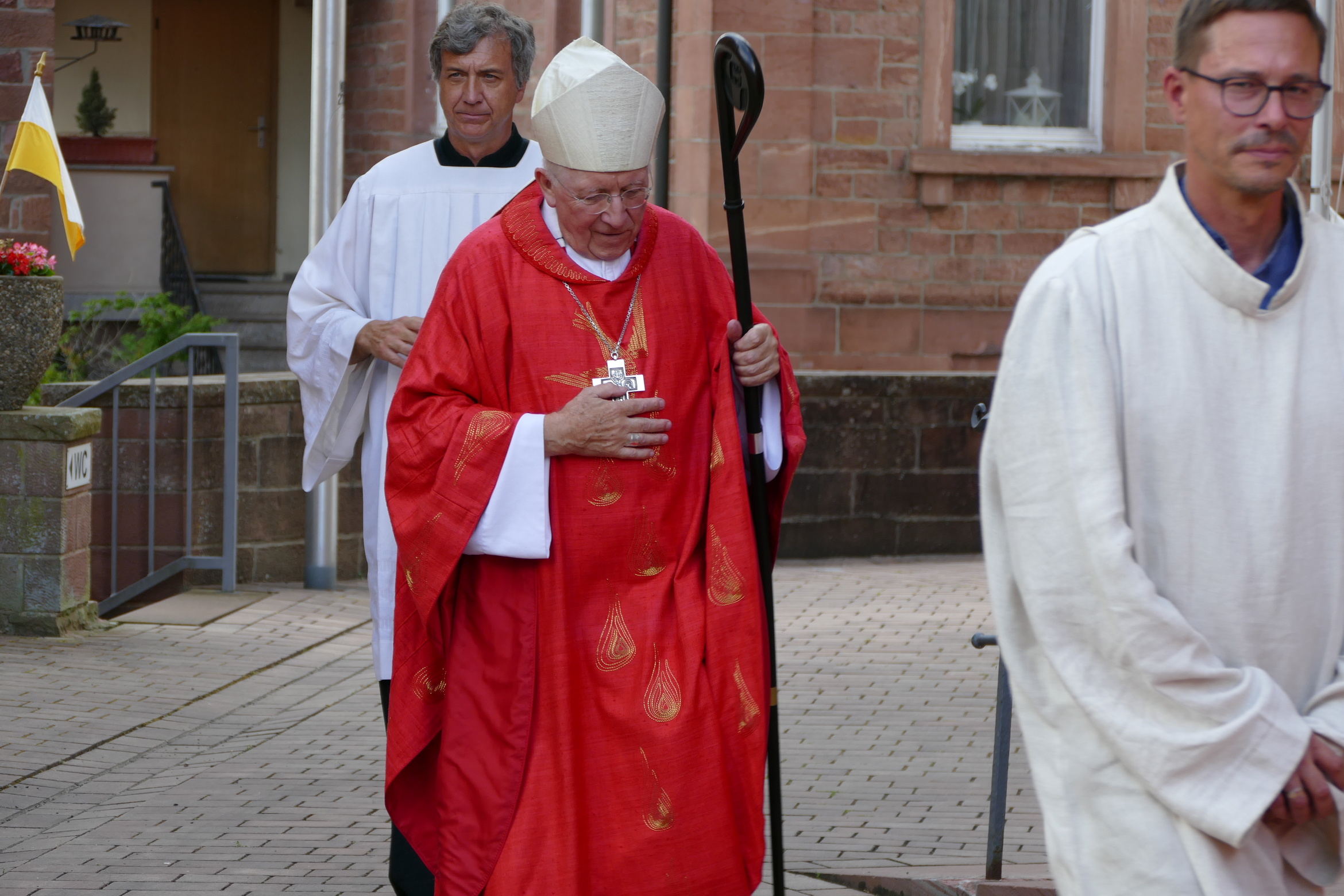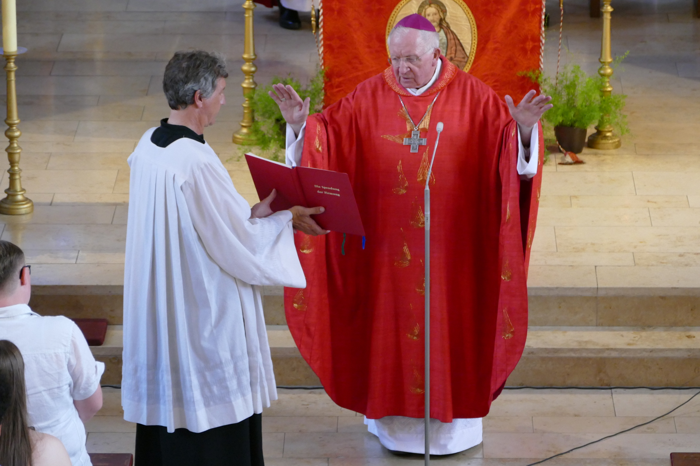 Bei schwül warmen Temperaturen war die Pfarrkirche Kirchzell gut gefüllt, die Band Terikto wie auch Marcel Markert an der Orgel gestalteten den Gottesdienst musikalisch mit. Weihbischof Boom wusste die Jugendlichen in seiner frei gehalteten Predigt direkt und persönlich anzusprechen. Hob das Plus im Glauben hervor, für welches sich zu leben lohnt. Im Blick auf das Herz Jesu wie auch die beiden Apostelfürsten Petrus und Paulus lud er ein, sich immer wieder einzusetzen, Liebe zu schenken und auch bei Zweifel und Wankelmut auf Christus zu blicken.
