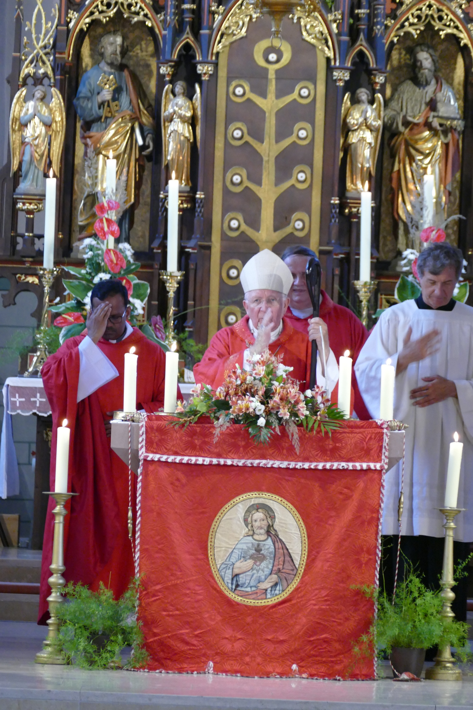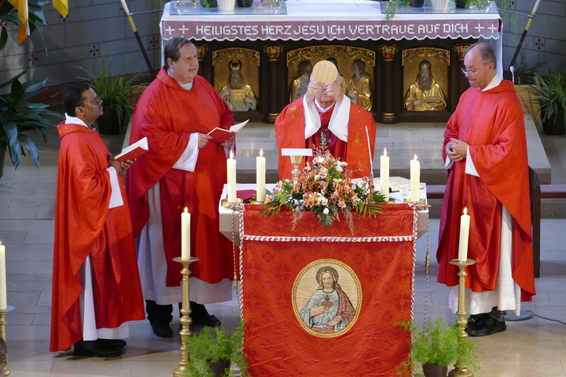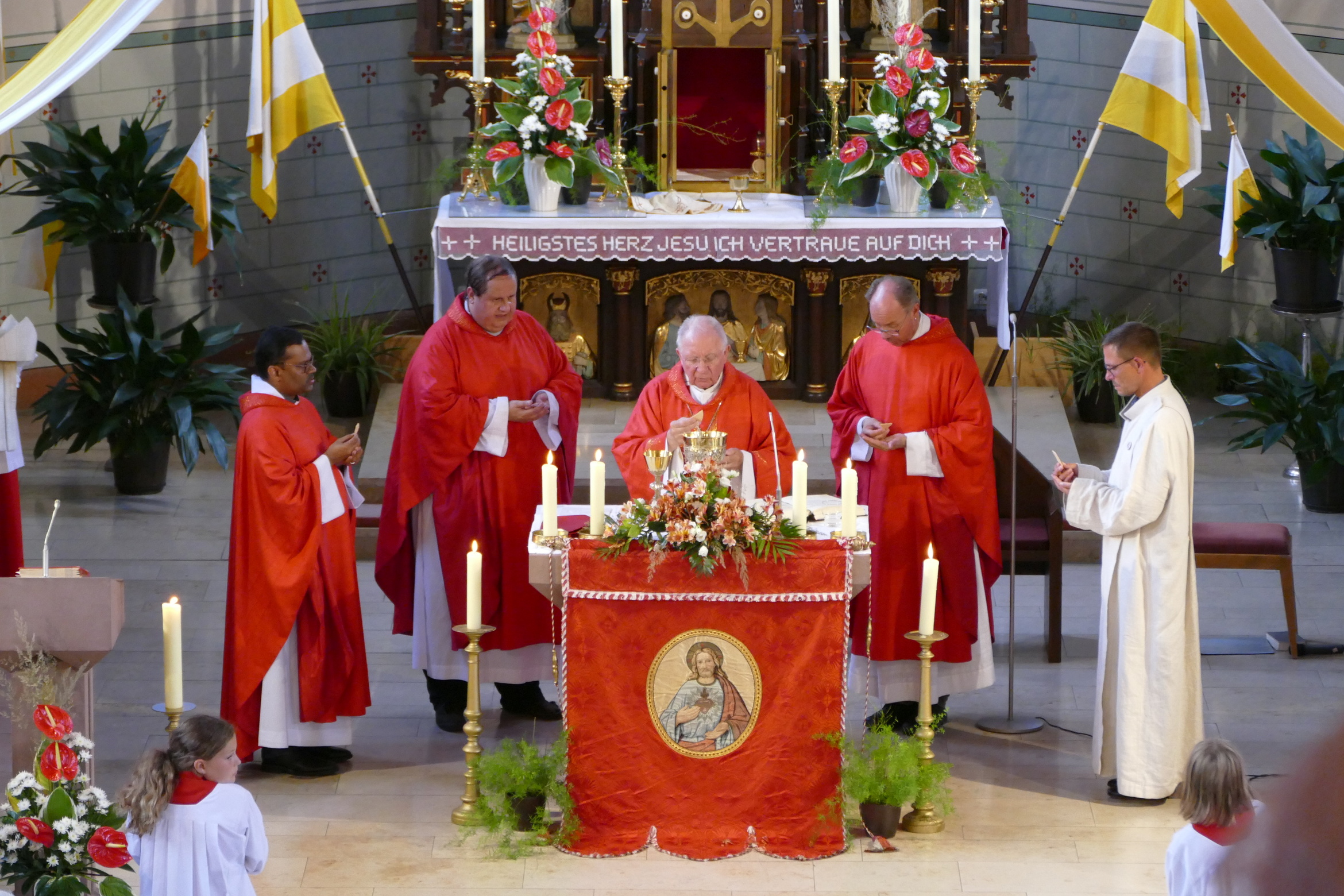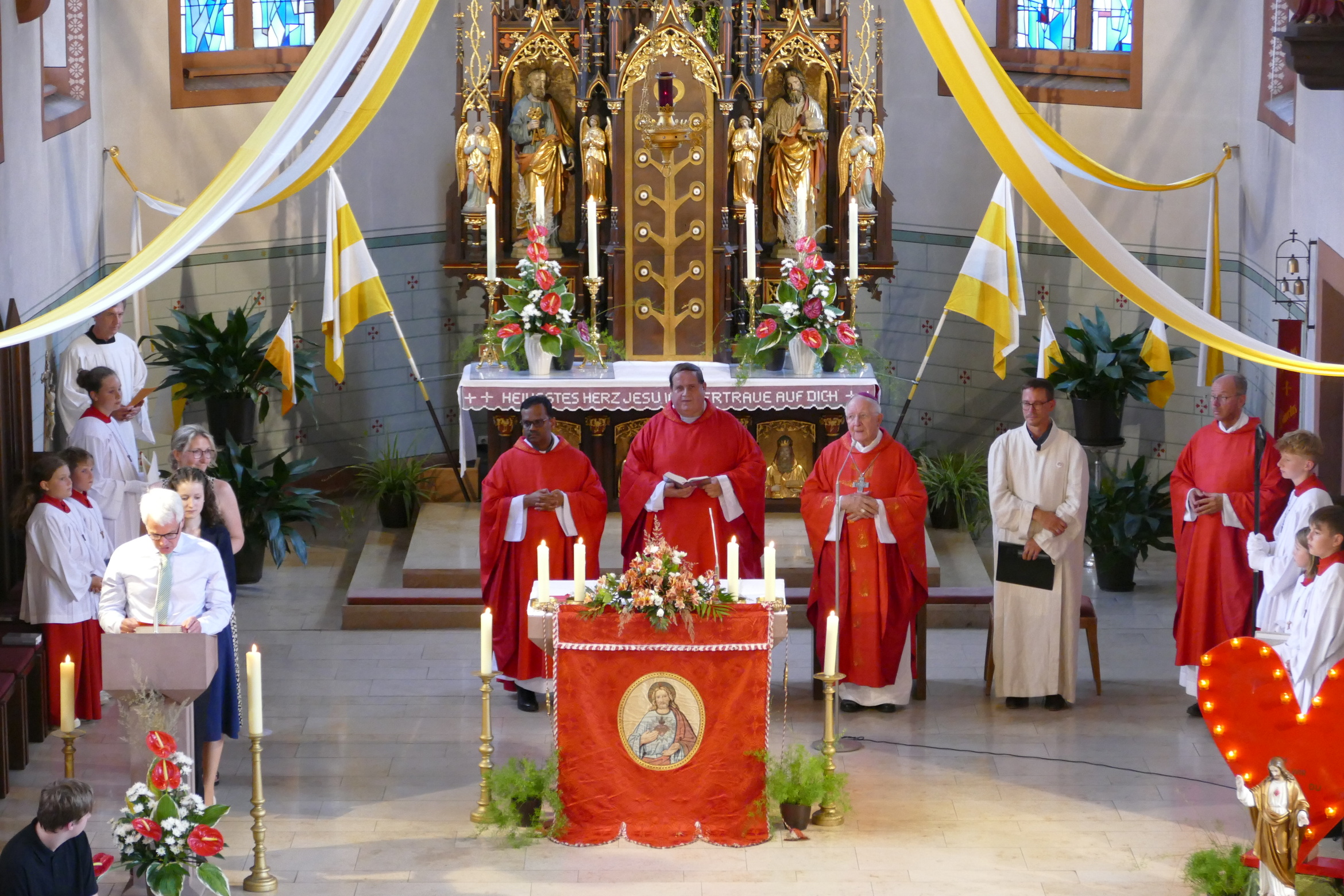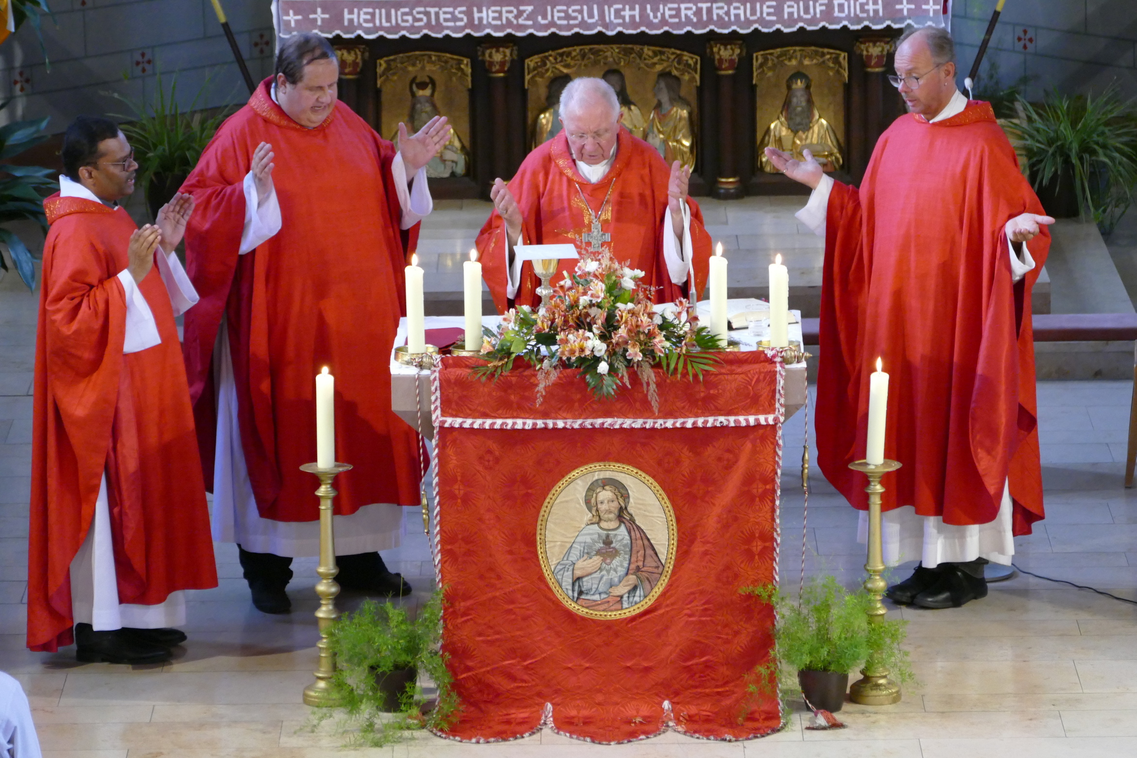 Bei schwül warmen Temperaturen war die Pfarrkirche Kirchzell gut gefüllt, die Band Terikto wie auch Marcel Markert an der Orgel gestalteten den Gottesdienst musikalisch mit. Weihbischof Boom wusste die Jugendlichen in seiner frei gehalteten Predigt direkt und persönlich anzusprechen. Hob das Plus im Glauben hervor, für welches sich zu leben lohnt. Im Blick auf das Herz Jesu wie auch die beiden Apostelfürsten Petrus und Paulus lud er ein, sich immer wieder einzusetzen, Liebe zu schenken und auch bei Zweifel und Wankelmut auf Christus zu blicken.