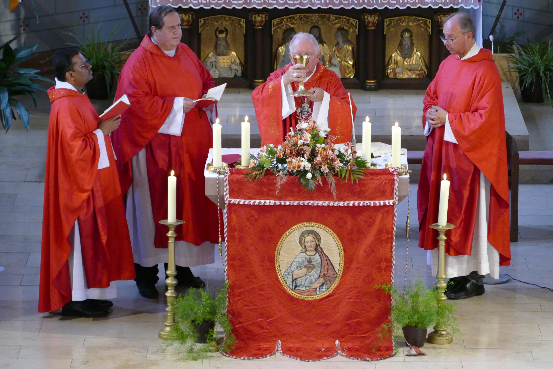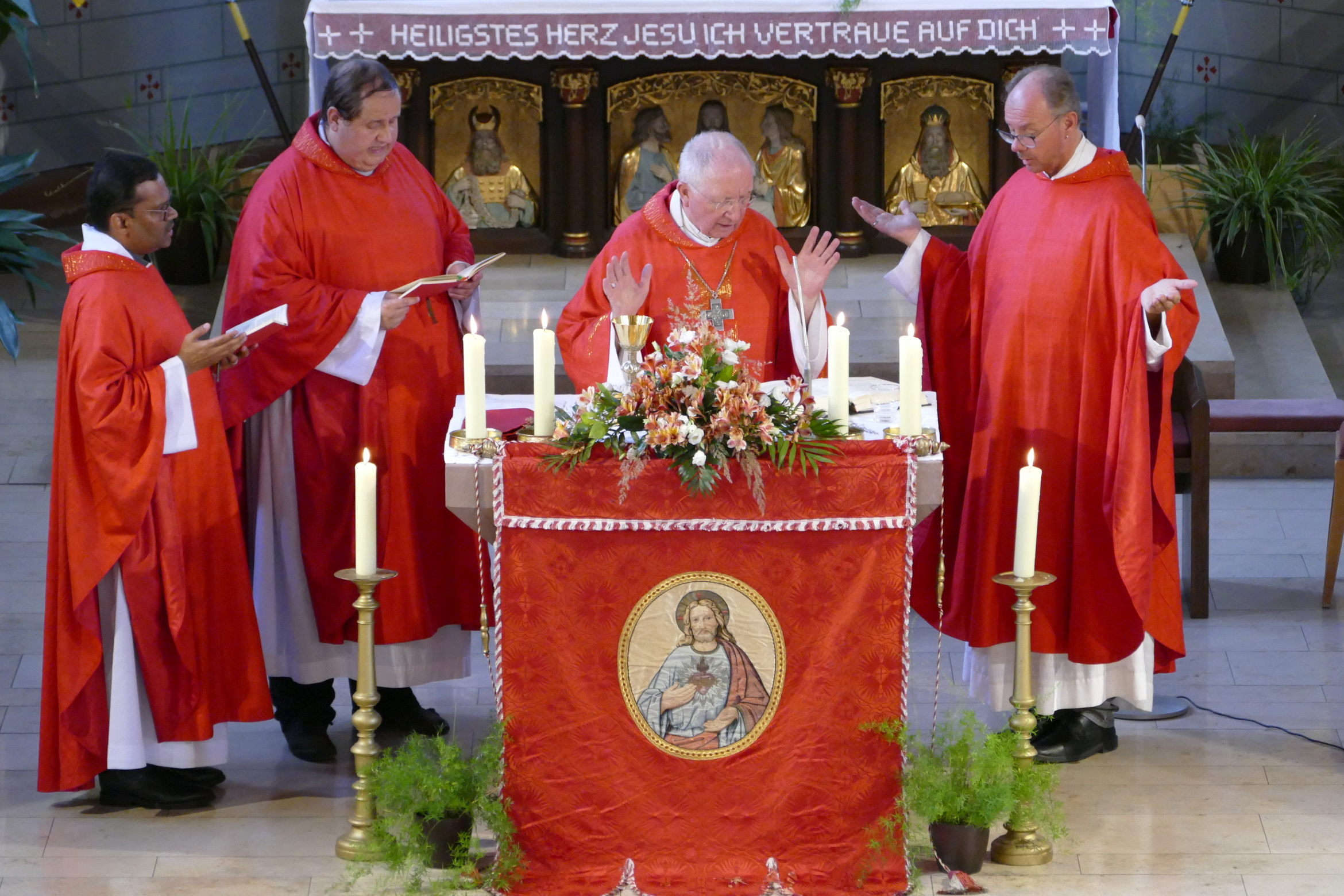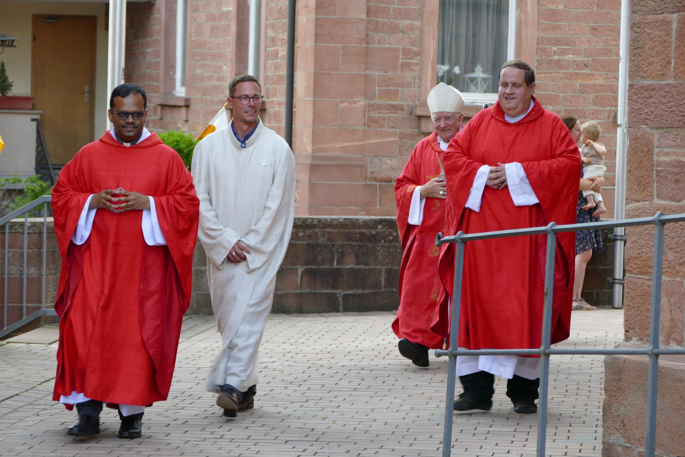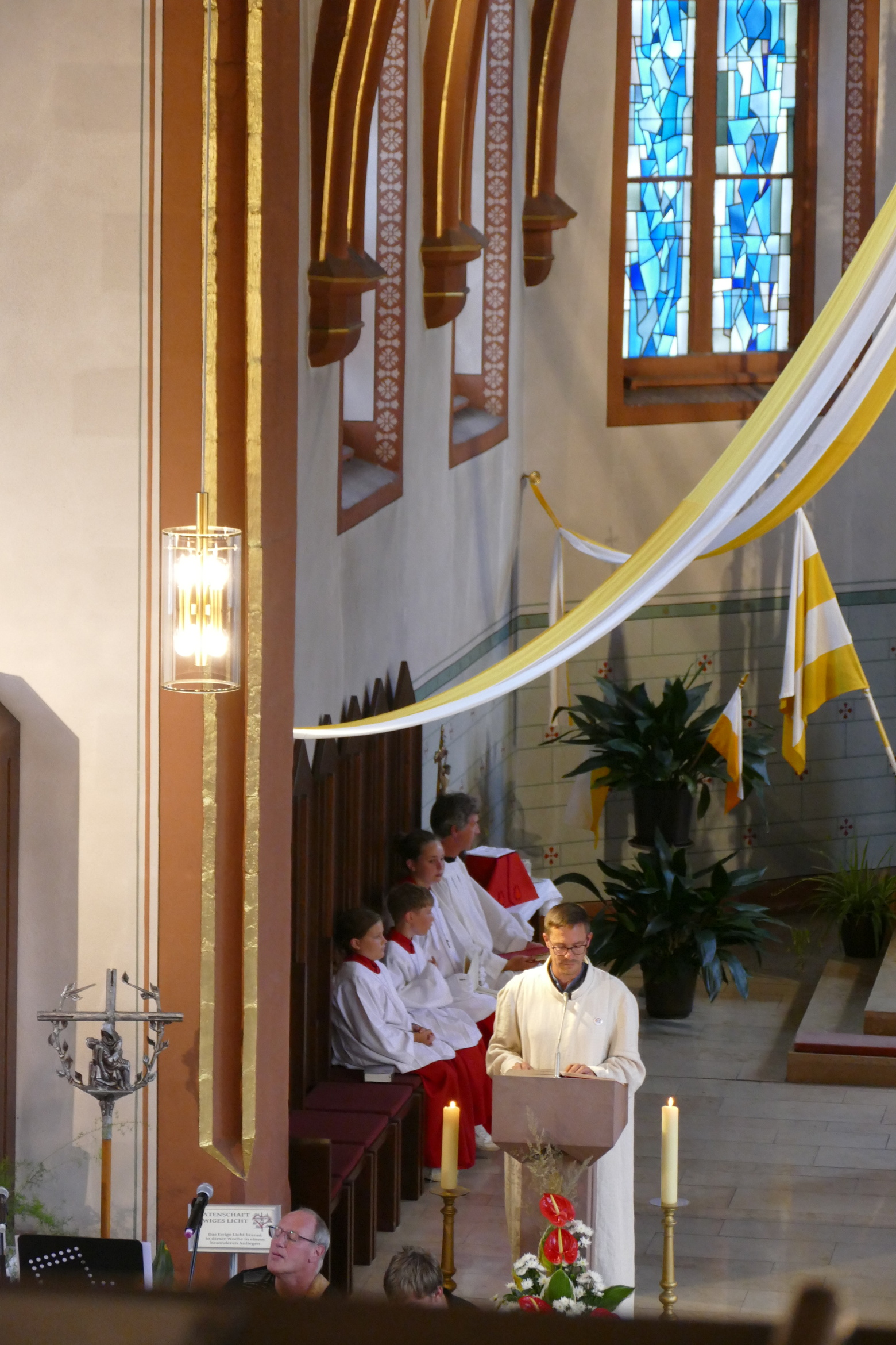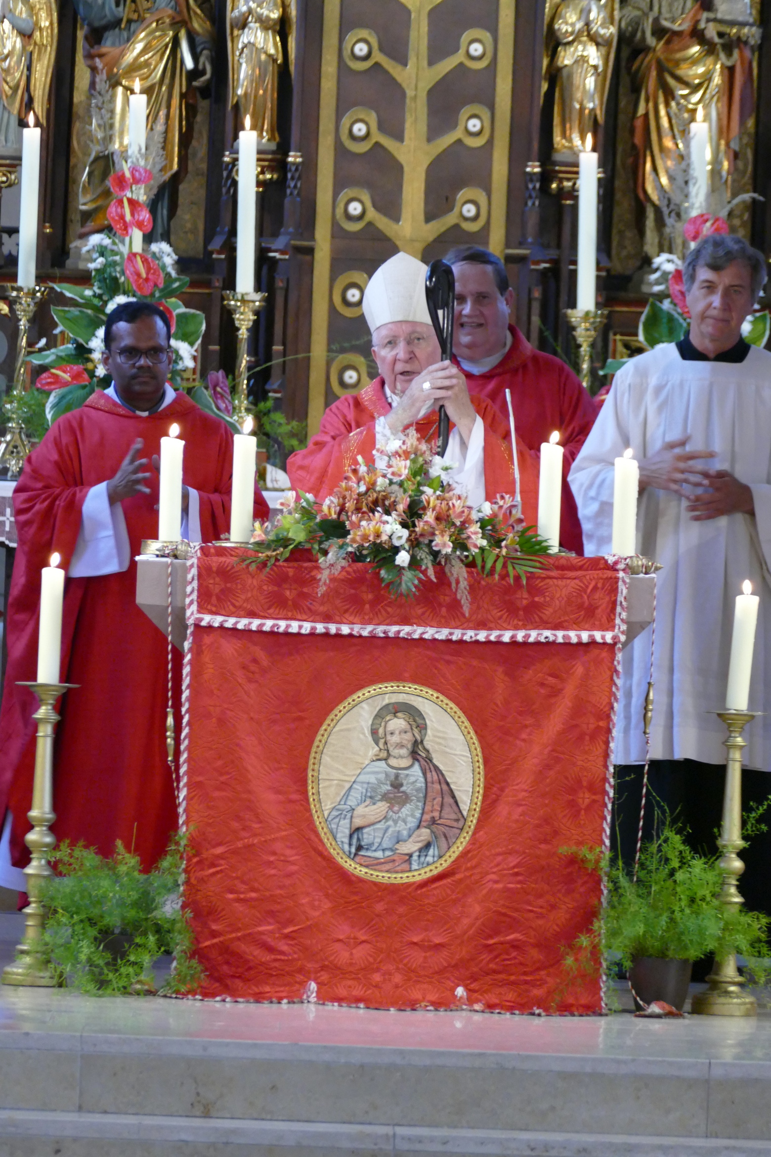 Bei schwül warmen Temperaturen war die Pfarrkirche Kirchzell gut gefüllt, die Band Terikto wie auch Marcel Markert an der Orgel gestalteten den Gottesdienst musikalisch mit. Weihbischof Boom wusste die Jugendlichen in seiner frei gehalteten Predigt direkt und persönlich anzusprechen. Hob das Plus im Glauben hervor, für welches sich zu leben lohnt. Im Blick auf das Herz Jesu wie auch die beiden Apostelfürsten Petrus und Paulus lud er ein, sich immer wieder einzusetzen, Liebe zu schenken und auch bei Zweifel und Wankelmut auf Christus zu blicken.