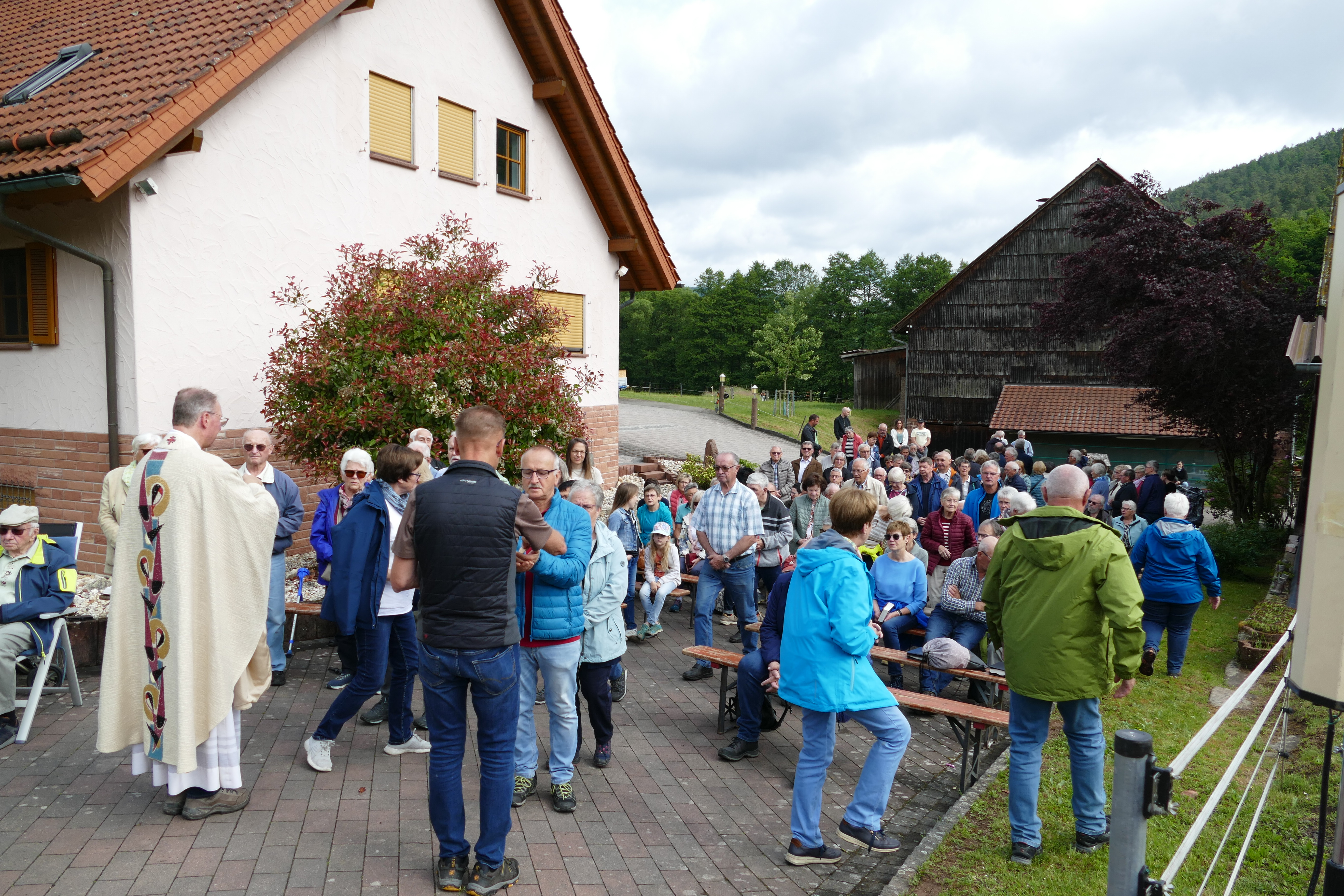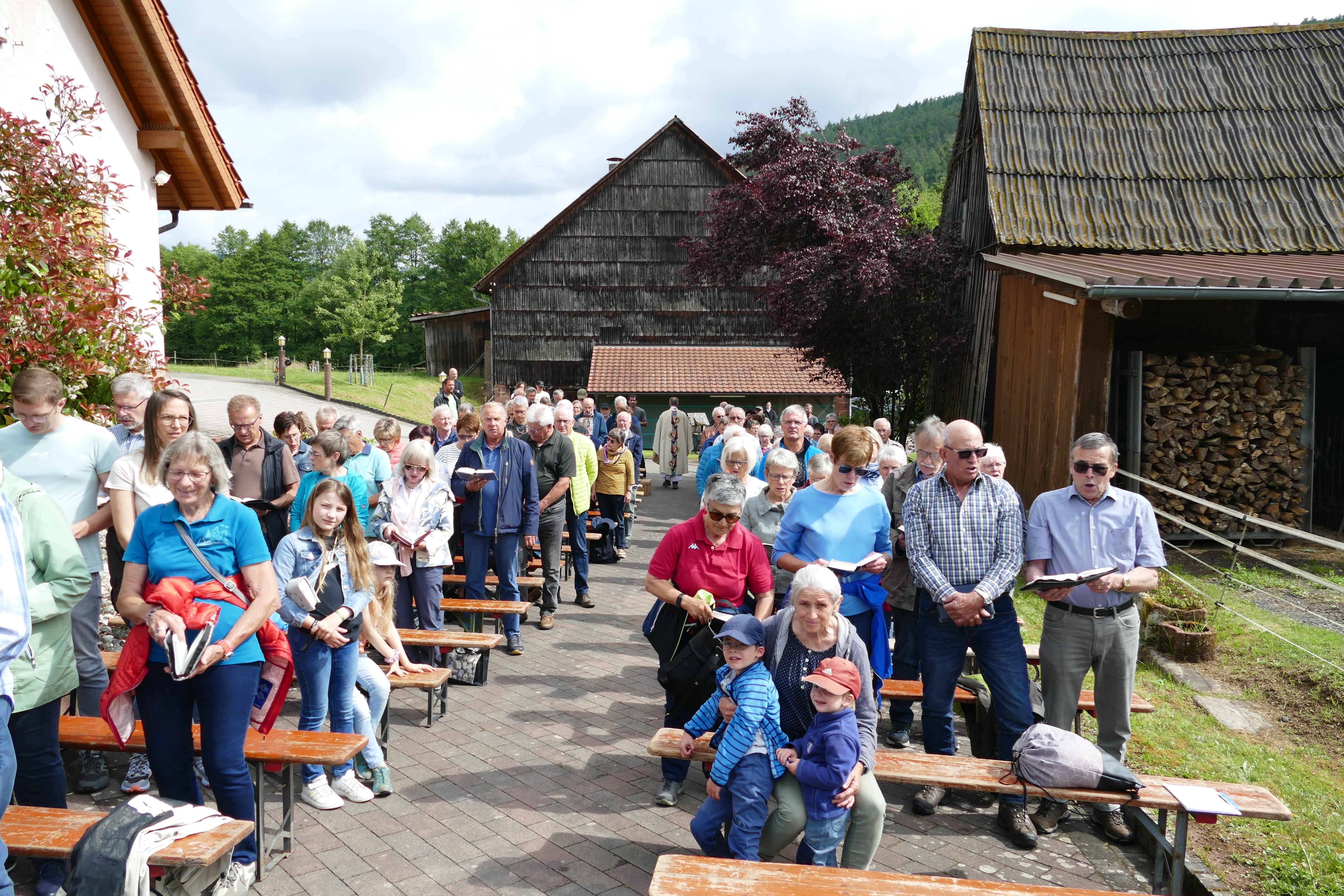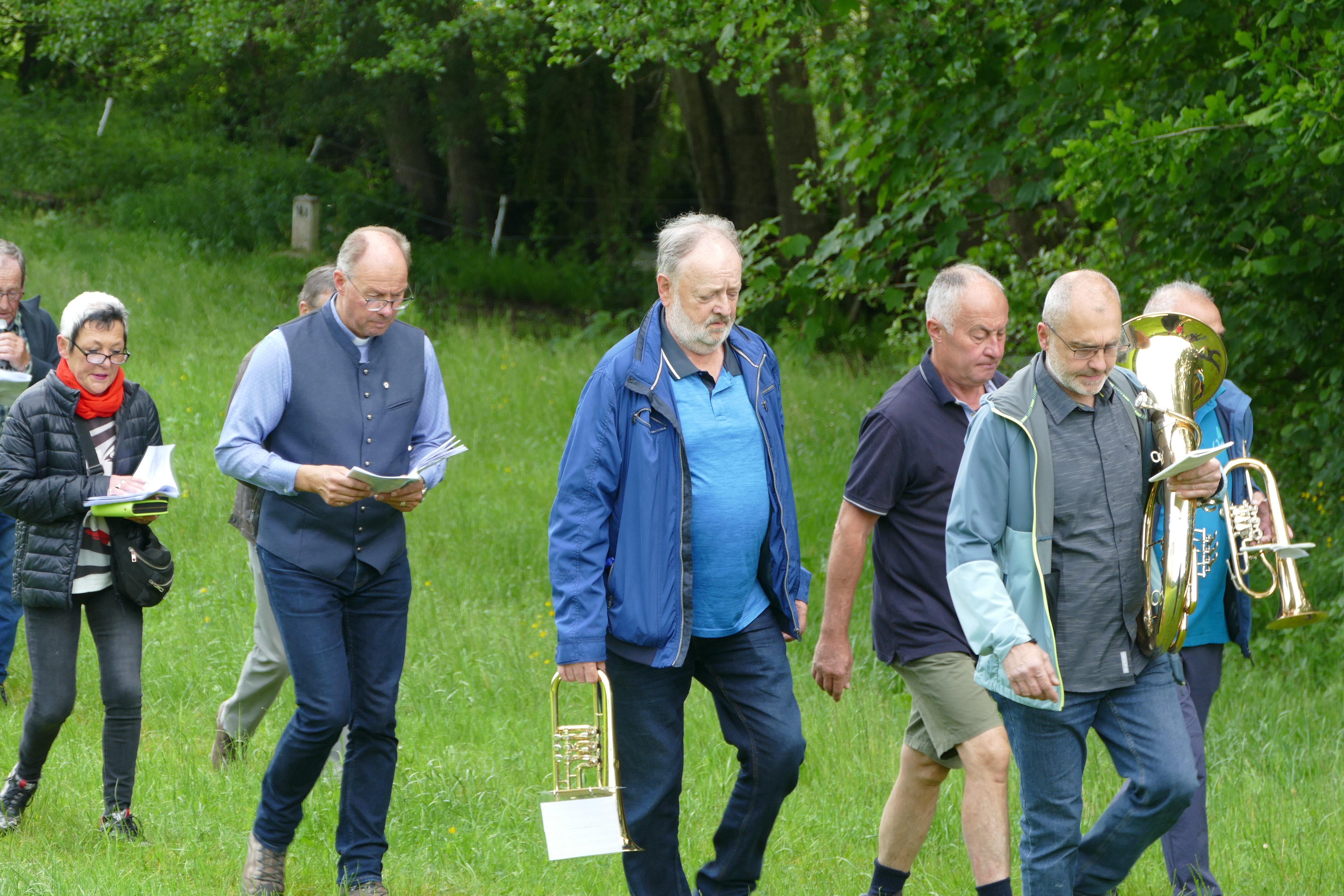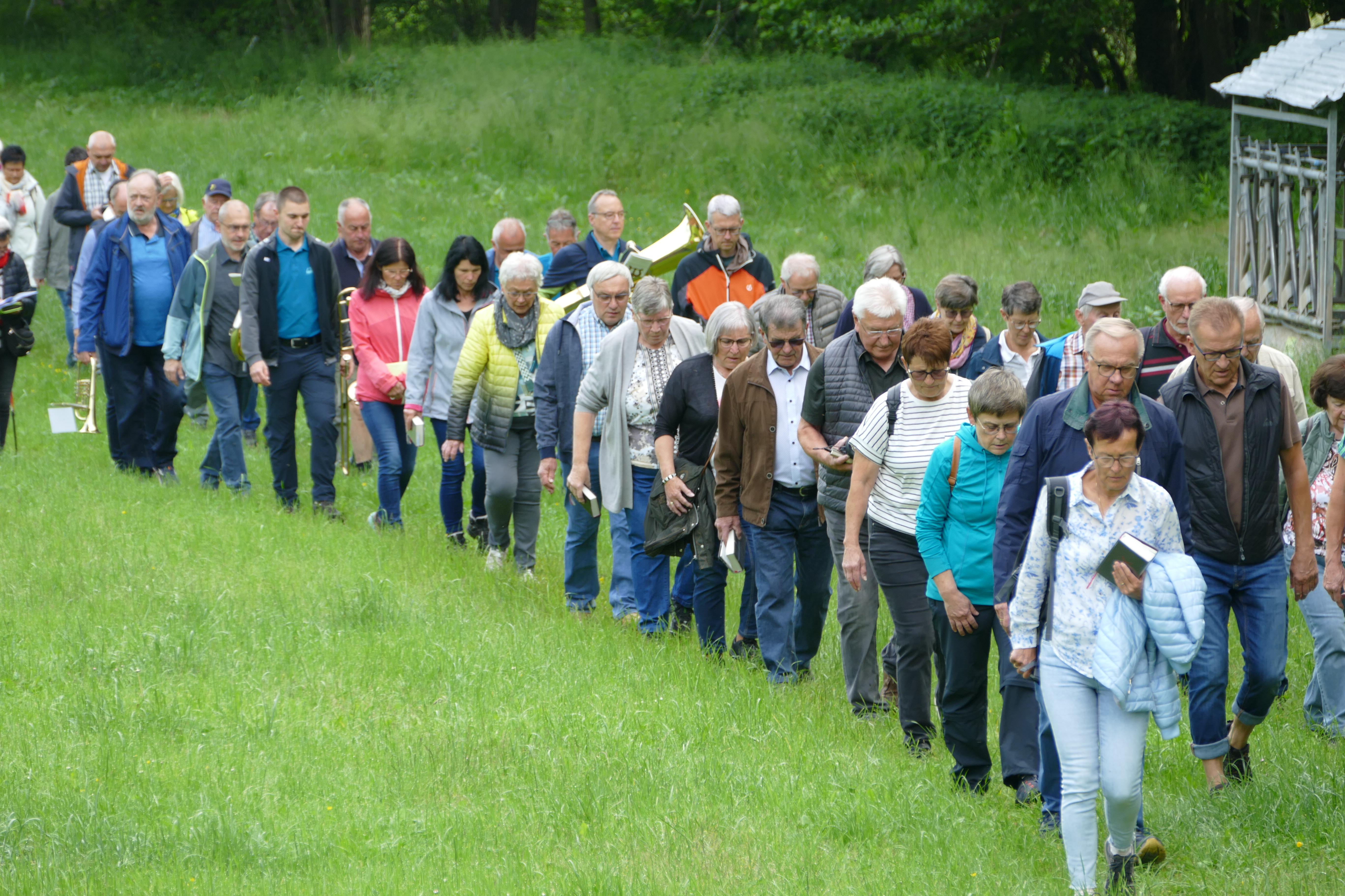 Bei trockenem Wetter, unterstützt und begleitet von einer Bläsergruppe, haben sich viele Beterinnen und Beter an Christi Himmelfahrt auf den Weg gemacht zur idyllischen Hofmühle. In Buch an der Kirche begrüßte Pfarrer Michael Prokschi die Gemeinde und stimmte auf den gemeinsamen Weg ein. Über die Felder ging es betend und singend Richtung Hofmühle, dort, vor dem Bildstock war der Altar aufgebaut und in großer Gemeinde wurde die Eucharistie gefeiert. Mit dem Wettersegen und dem feierlichen Te Deum schloss der Gottesdienst.