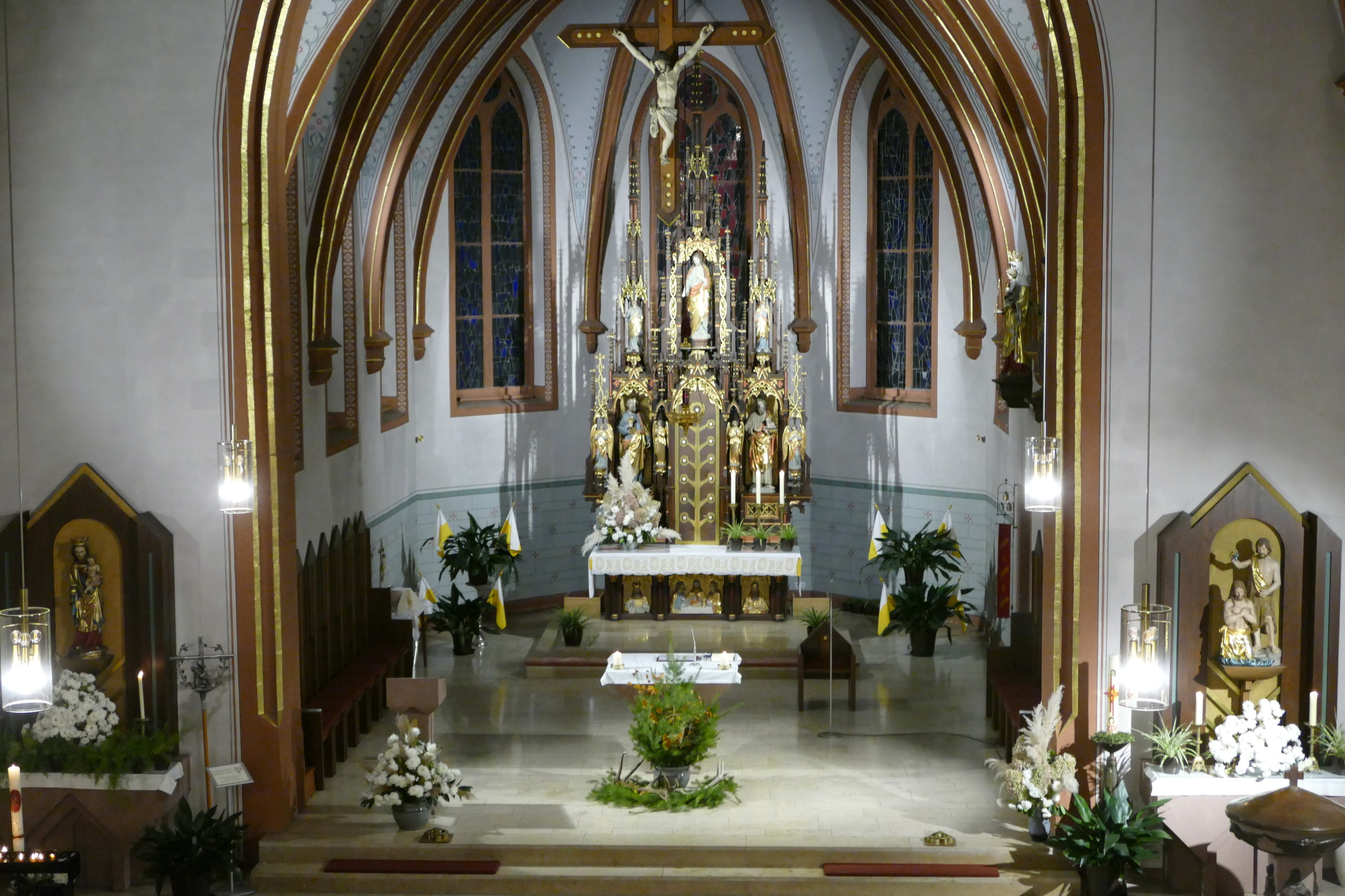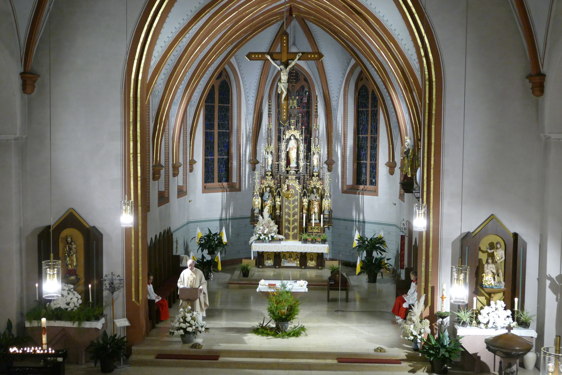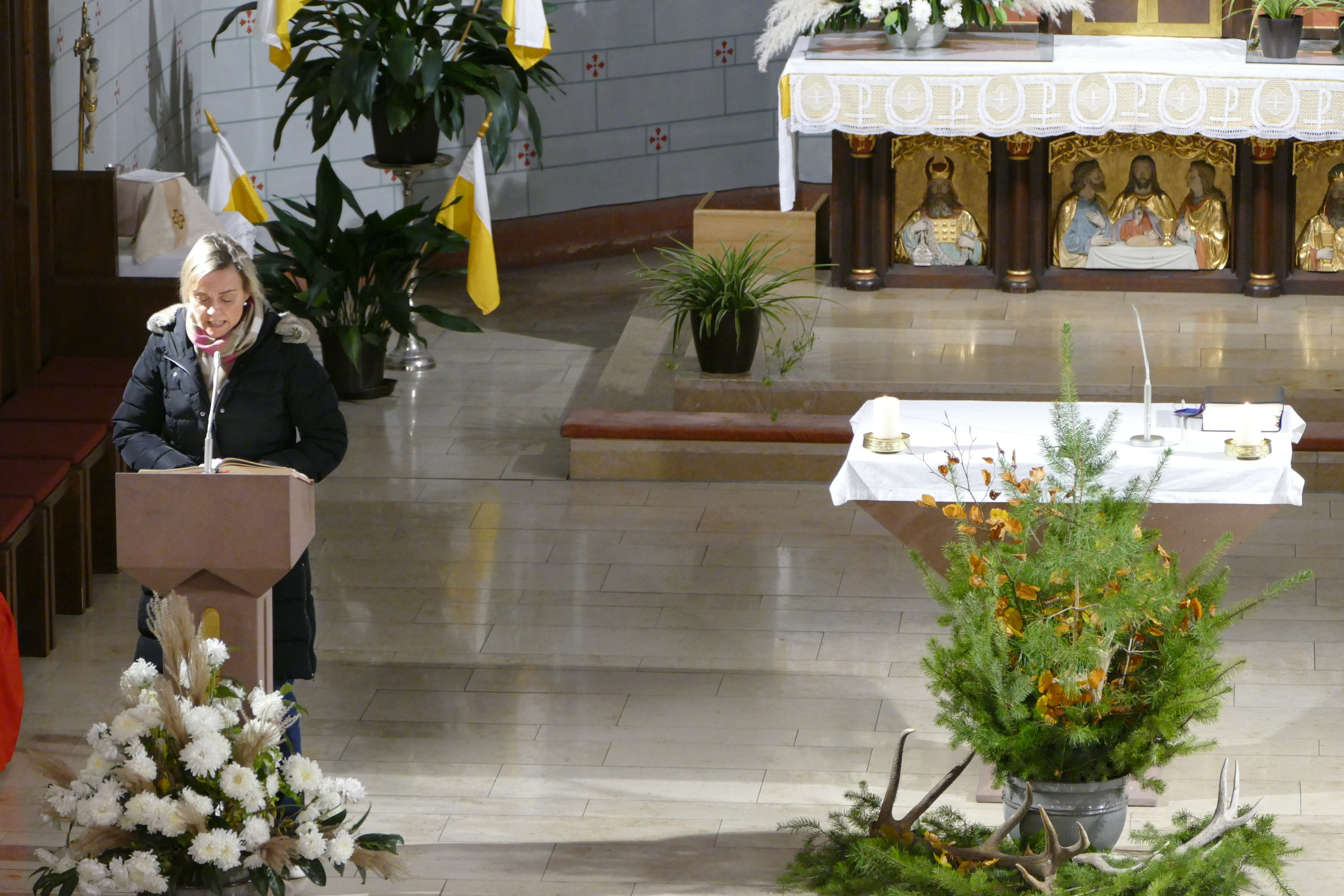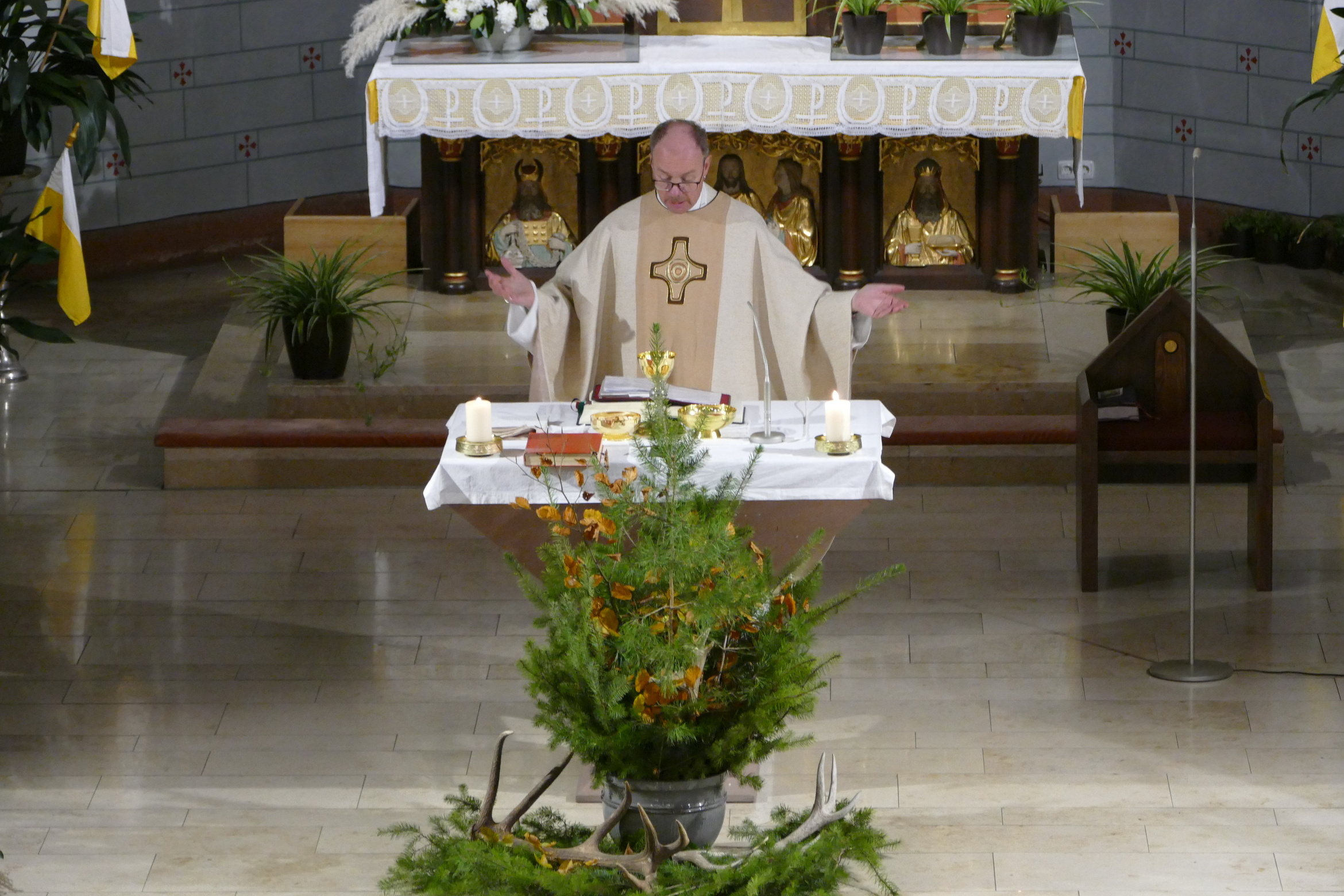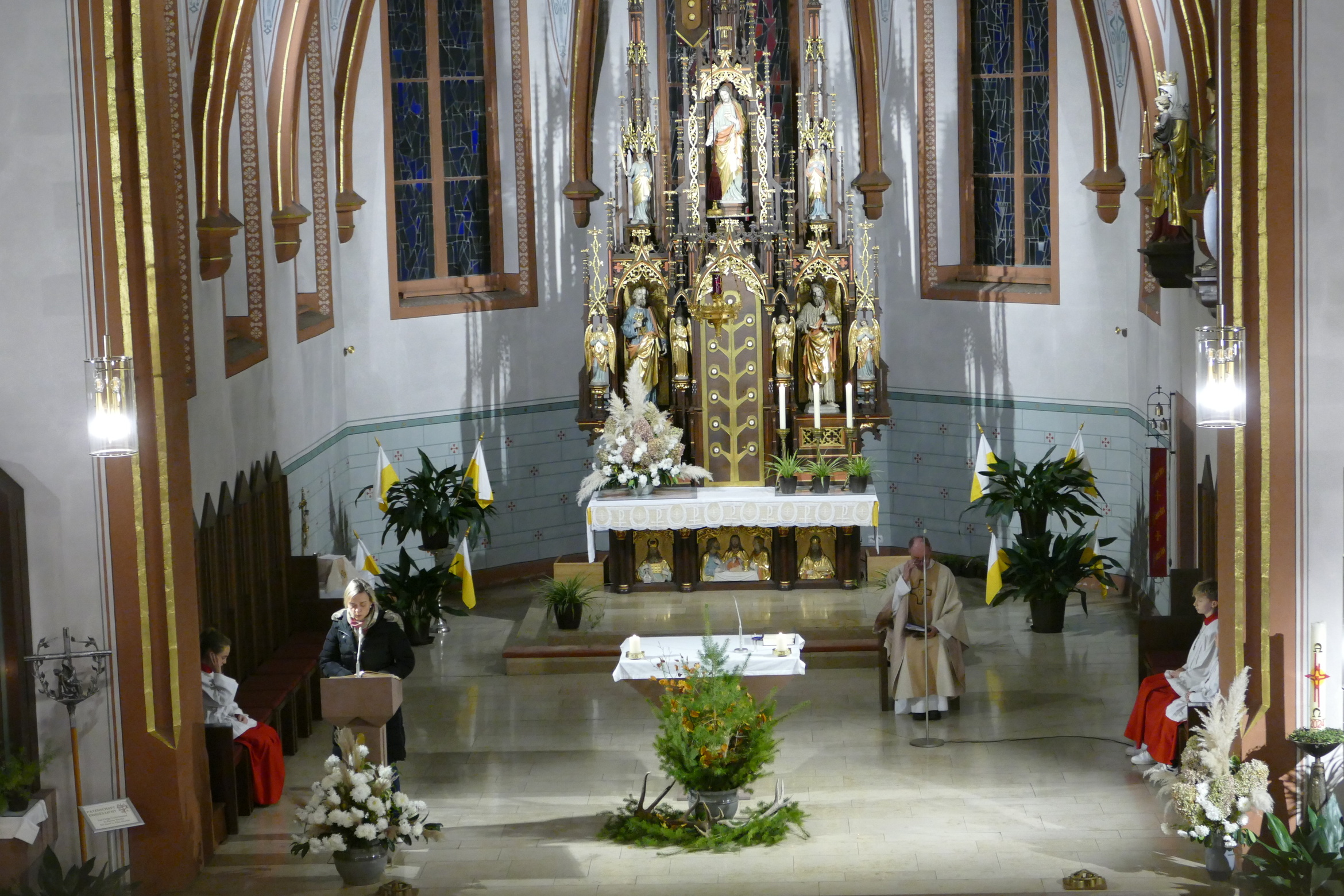 Nicht mit Pauken und Trompeten, vielmehr mit dem festlichen Spiel der Jagdhörner ging in der Pfarrkirche Kirchzell das Kirchenjahr zu Ende. Zum Hochfest Christkönig kamen die Jagdhornbläser aus Miltenberg und gestalteten den Gottesdienst mit. Schon zum Einzug zeigte sich die Klangfülle der 14 Spielerinnen und Spielern, verstärkt durch die wunderbare Akustik der Kirche. Die Begegnung zwischen Jesus und Pilatus, verbunden mit der Frage, was heute einen König ausmacht stand im Mittelpunkt der Predigt von Pfarrer Michael Prokschi. Zur Gabenbereitung, zur Kommunion und auch am Ende der Messfeier brachten die Musiker ihre Stücke zu Gehör, erfreuten so die zahlreichen Gottesdienstbesucher.