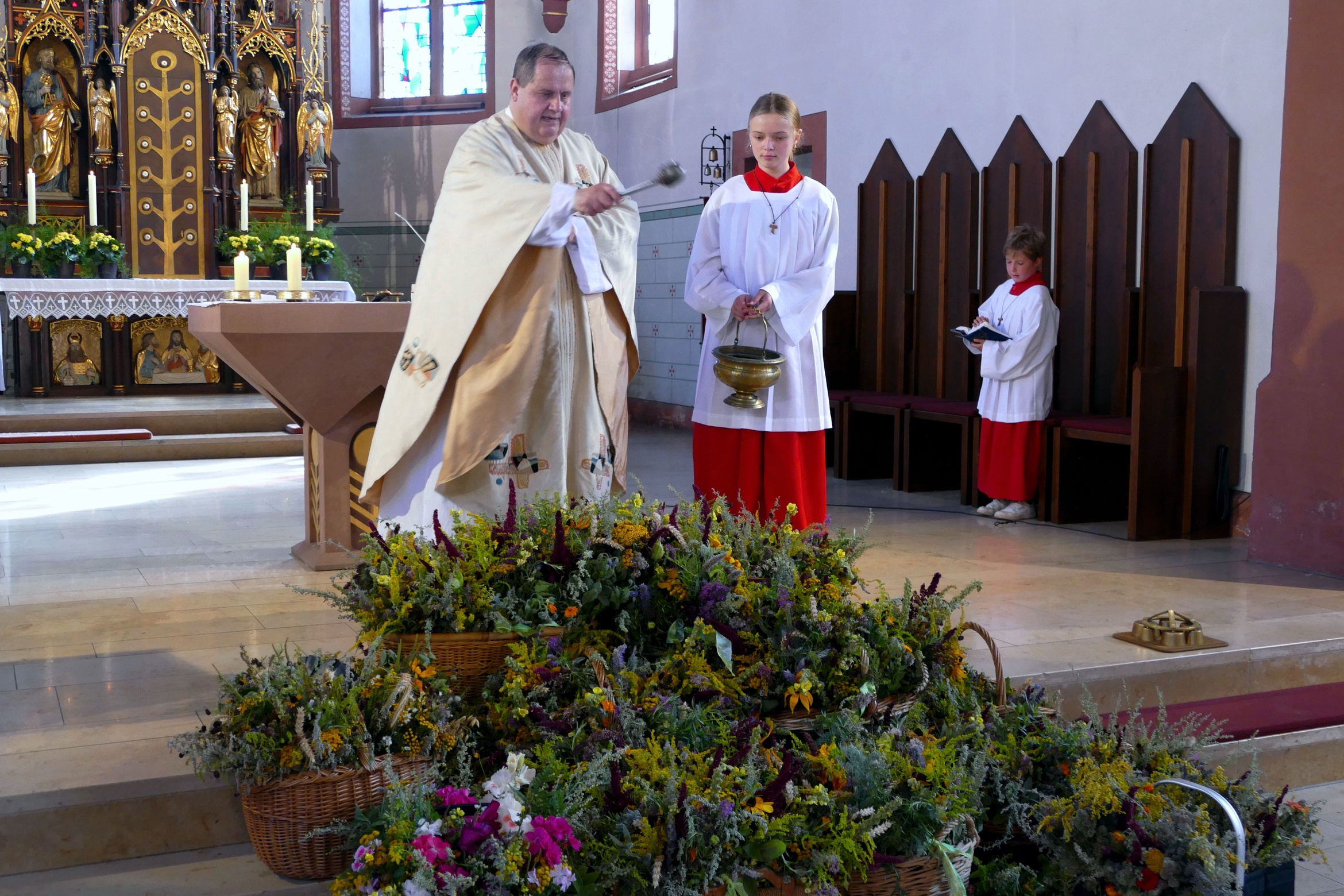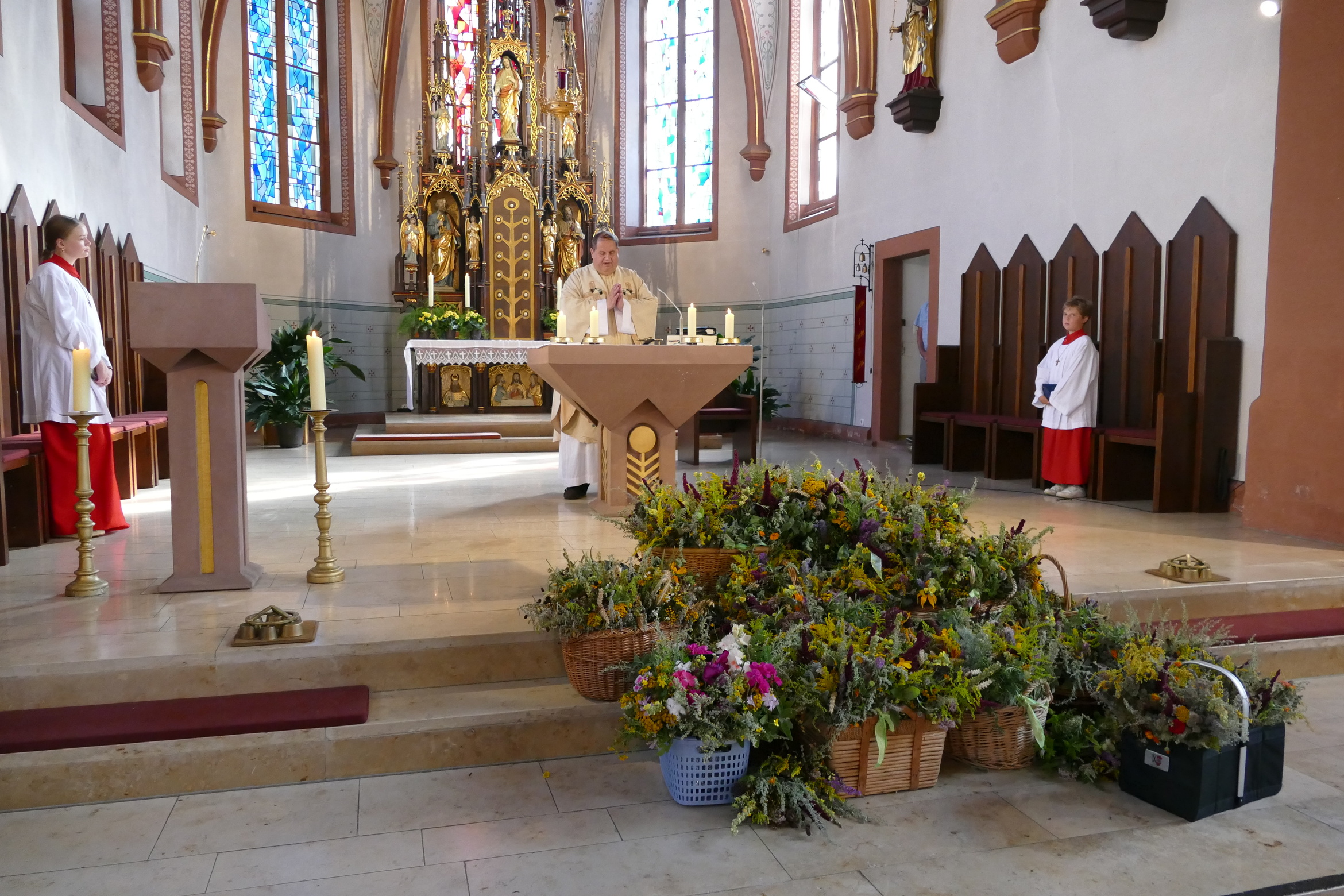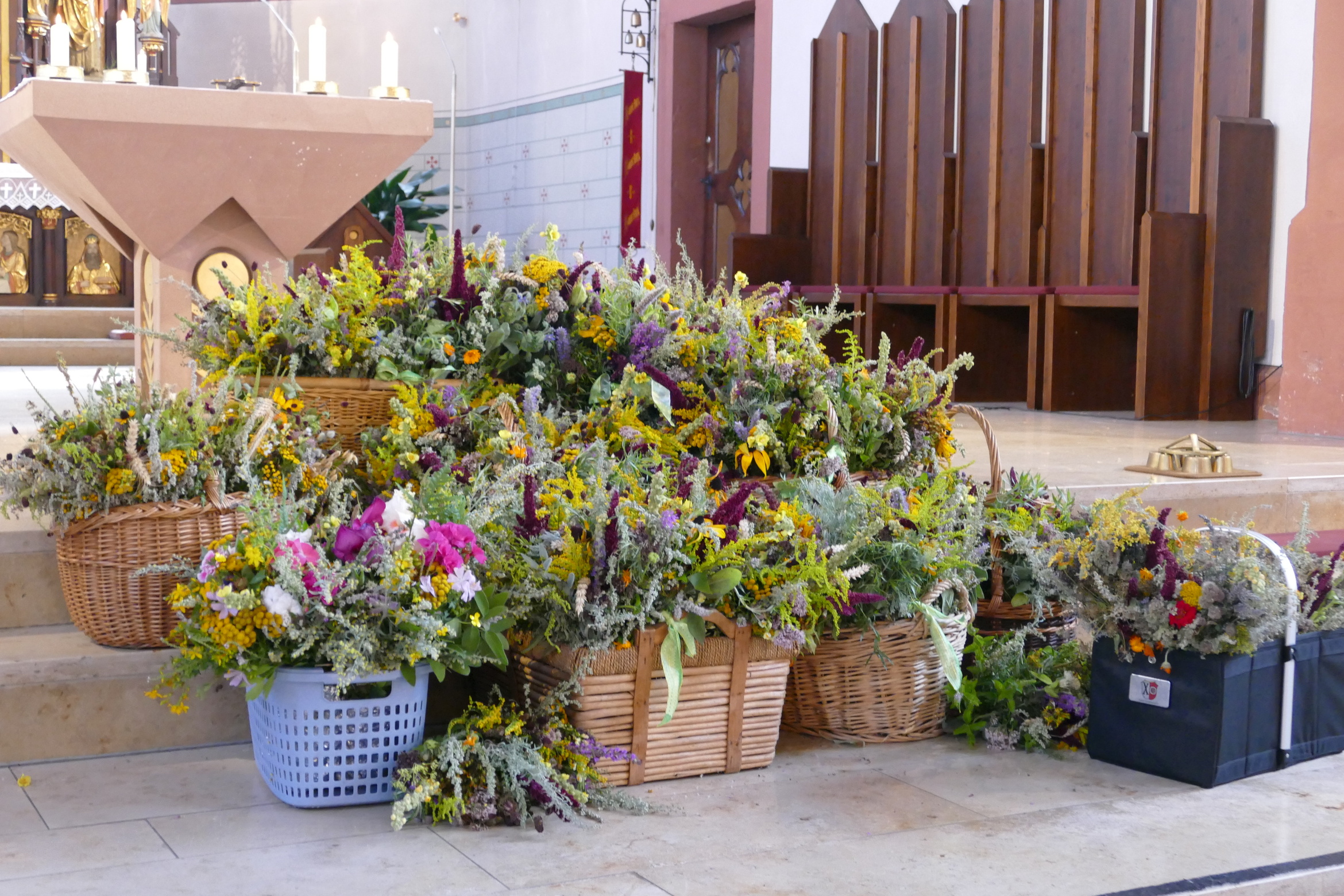 Fleißige Frauenhände aus der gesamten Pfarreiengemeinschaft Kirchzell haben zum Fest „Mariä Himmelfahrt“ bunte, wohlriechende Kräuterbüschel gebunden, welche nach der Segnung durch Pfarrer Christian Wöber gegen eine Spende an die Gottesdienstbesucher abgegeben wurden.