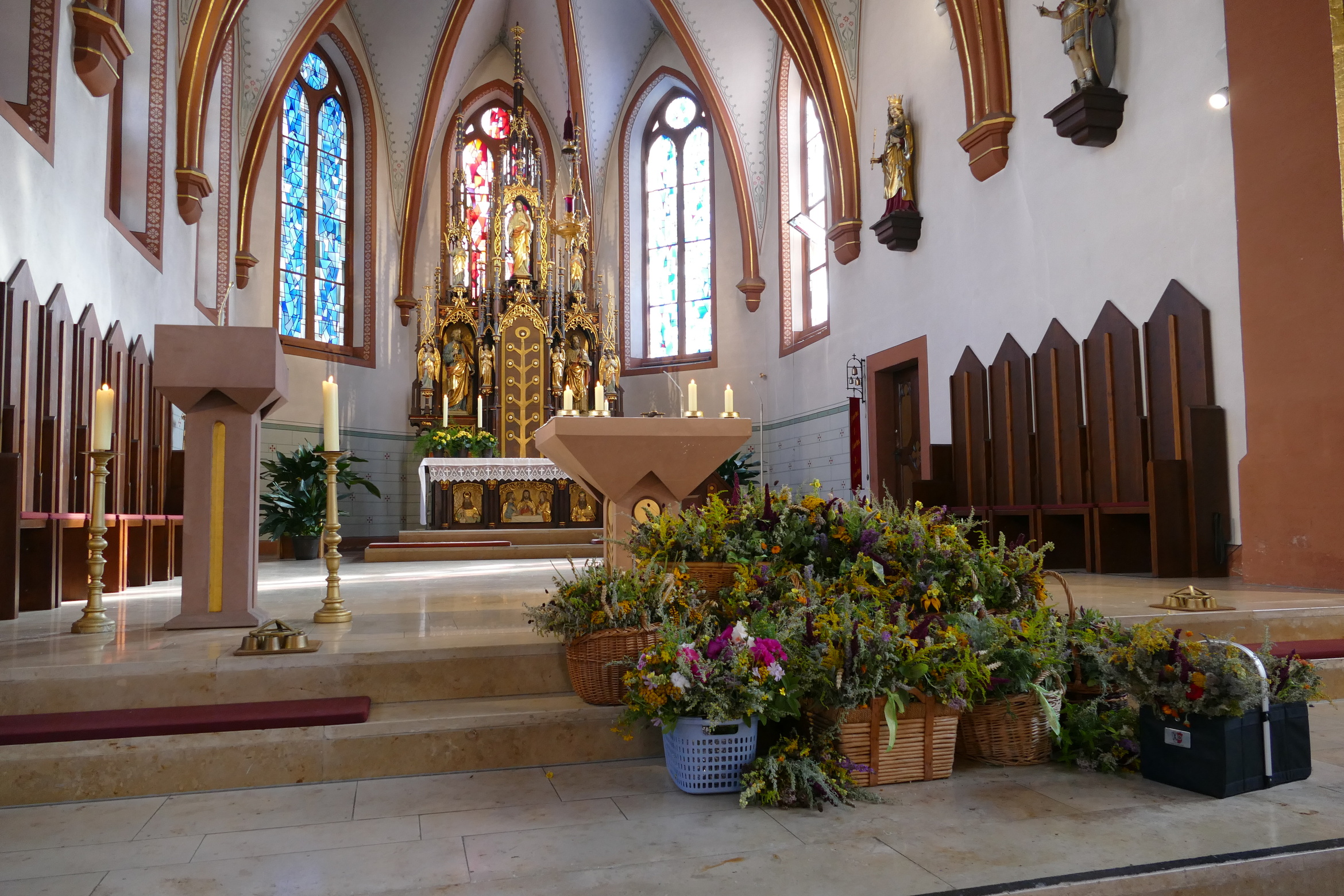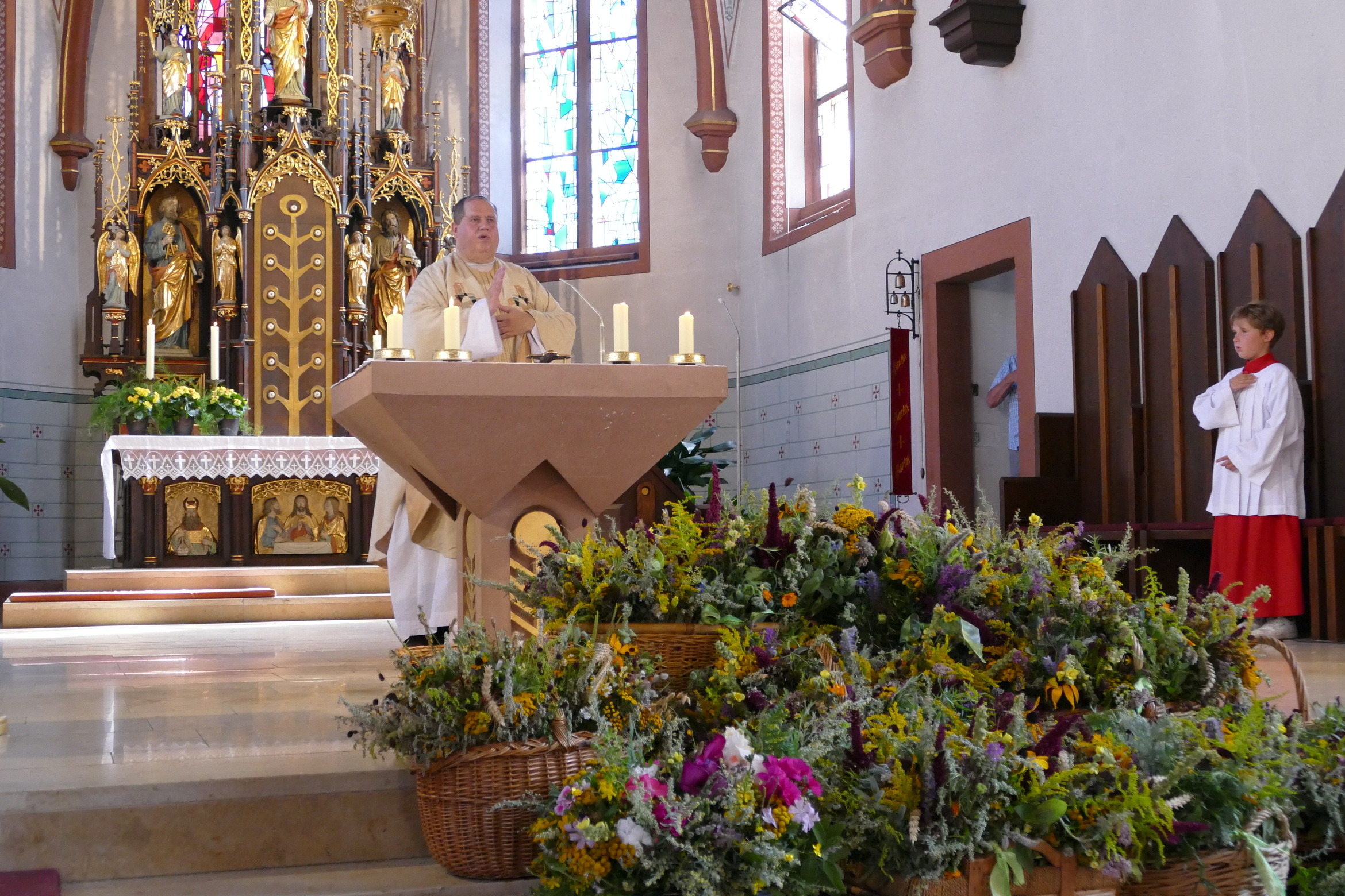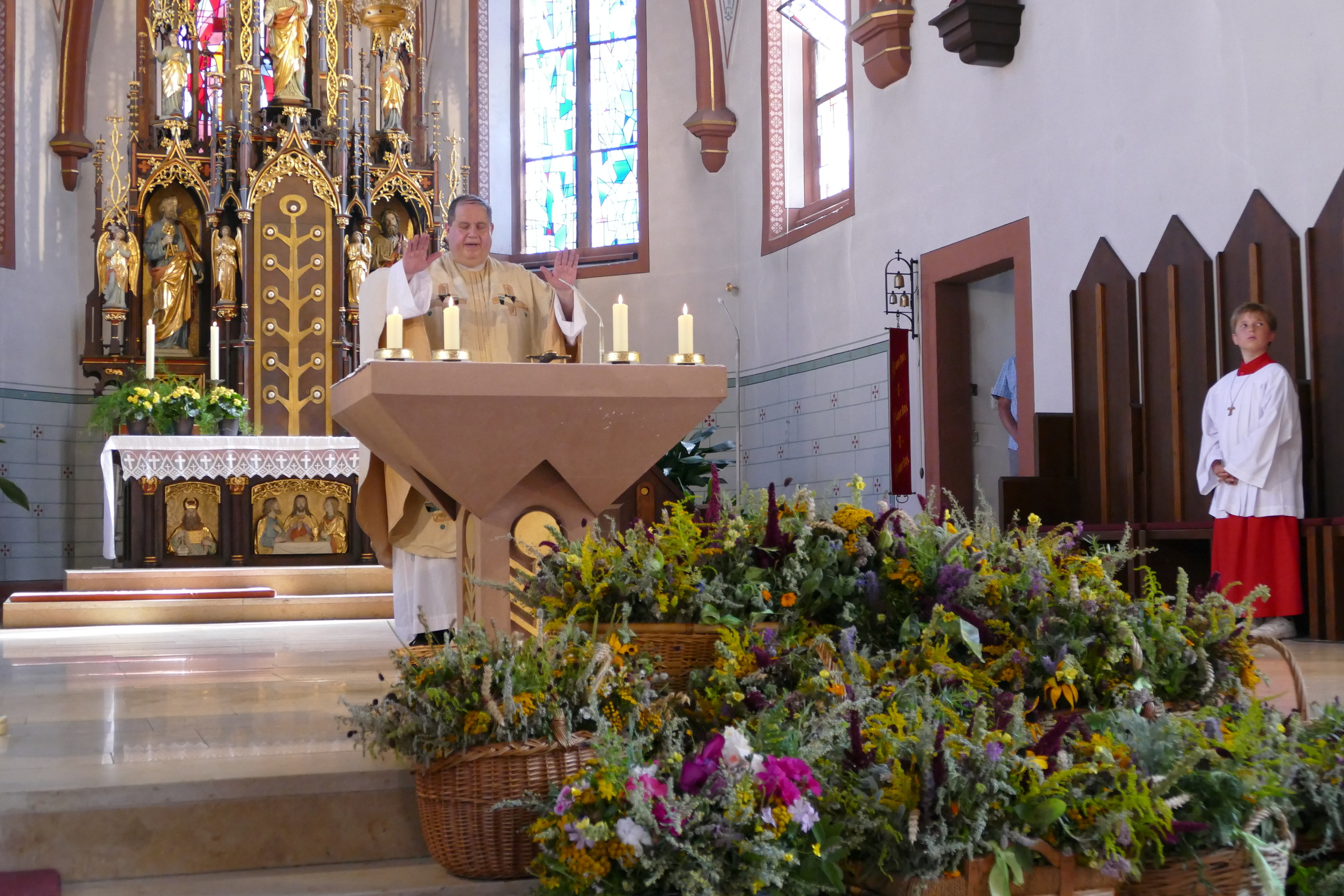 Fleißige Frauenhände aus der gesamten Pfarreiengemeinschaft Kirchzell haben zum Fest „Mariä Himmelfahrt“ bunte, wohlriechende Kräuterbüschel gebunden, welche nach der Segnung durch Pfarrer Christian Wöber gegen eine Spende an die Gottesdienstbesucher abgegeben wurden.