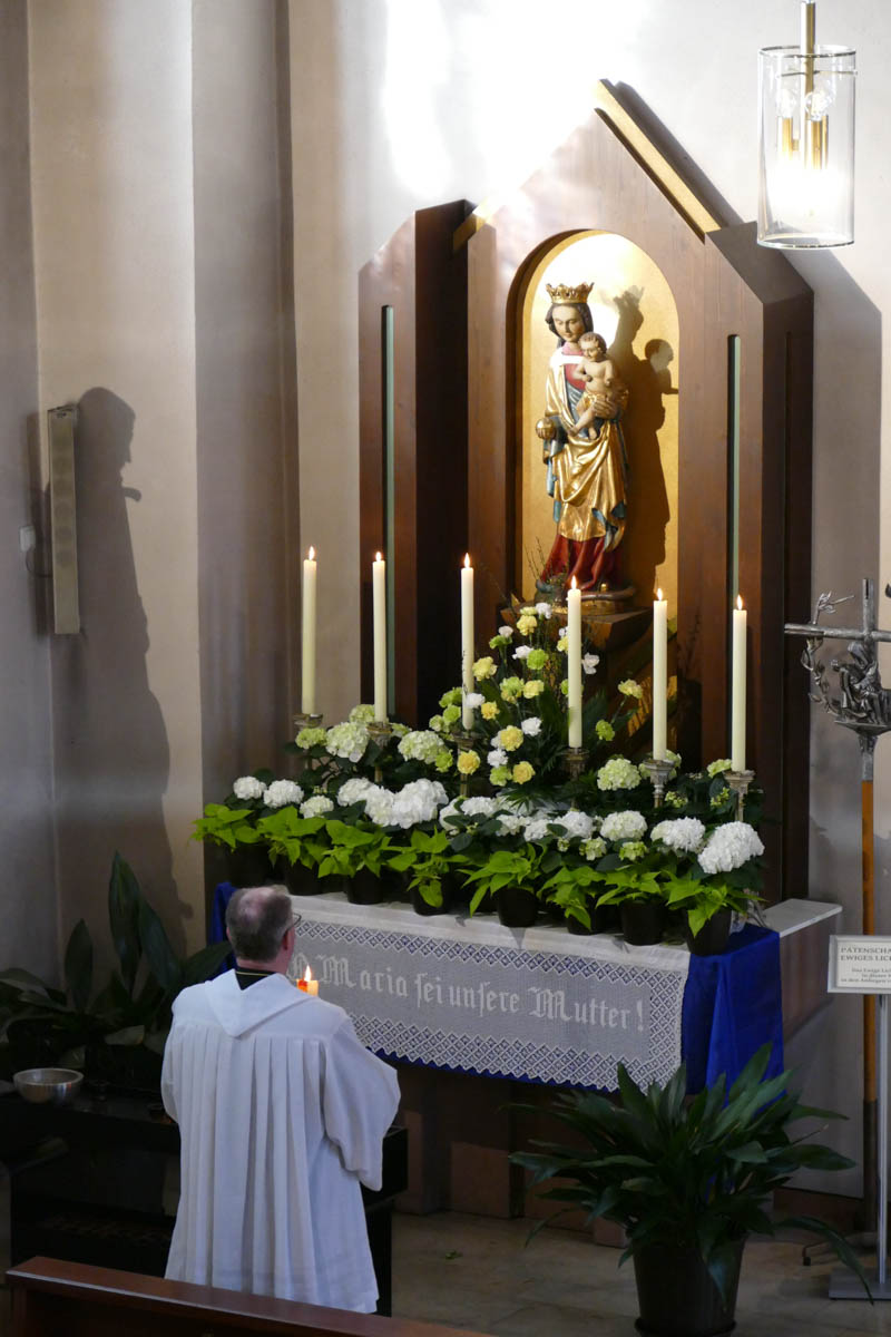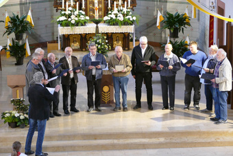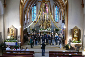 Die erste feierliche Maiandacht in der Pfarrkirche Kirchzell wurde vom Gesangverein Frohsinn mitgestaltet. Der Männergesangverein wie auch der Chor VoCapella jeweils unter der Leitung von Hermann Trunk brachten verschieden Marienlieder zu Gehör. Pfarrer Michael Prokschi gestaltete die Texte und Gebete zur Andacht, die vor dem prächtig geschmückten Maialtar gebetet wurden. Gerhard Schwab an der Orgel rundete den Gesang der Gemeinde ab und so wurde der Marienmonat Mai gebührend eröffnet.