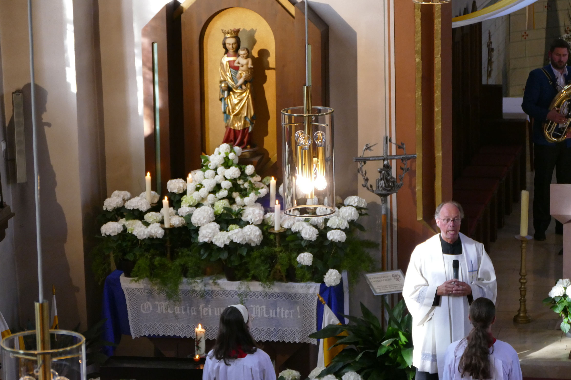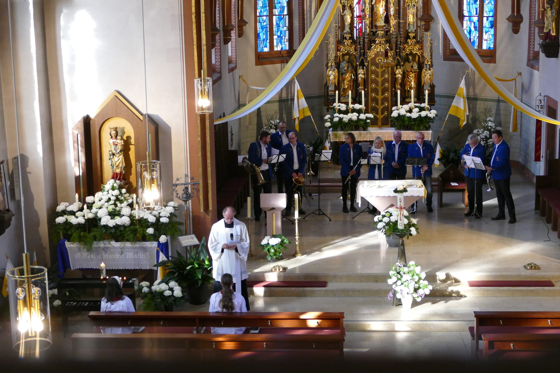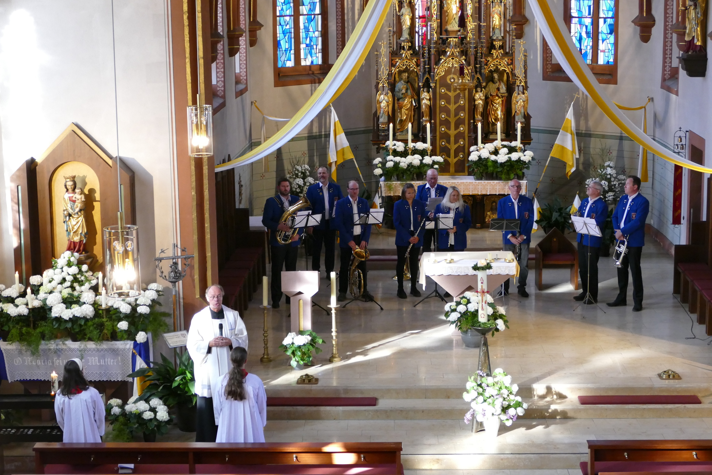 Mitgestaltet vom Musikverein Kirchzell wurde die dritte feierliche Maiandacht in der Kirchzeller Pfarrkirche. Die bekannten Marienlieder wurden stimmgewaltig unterstützt durch die Frauen und Männer, die unter der Leitung von André Grimm das Singen der Gläubigen begleiteten.