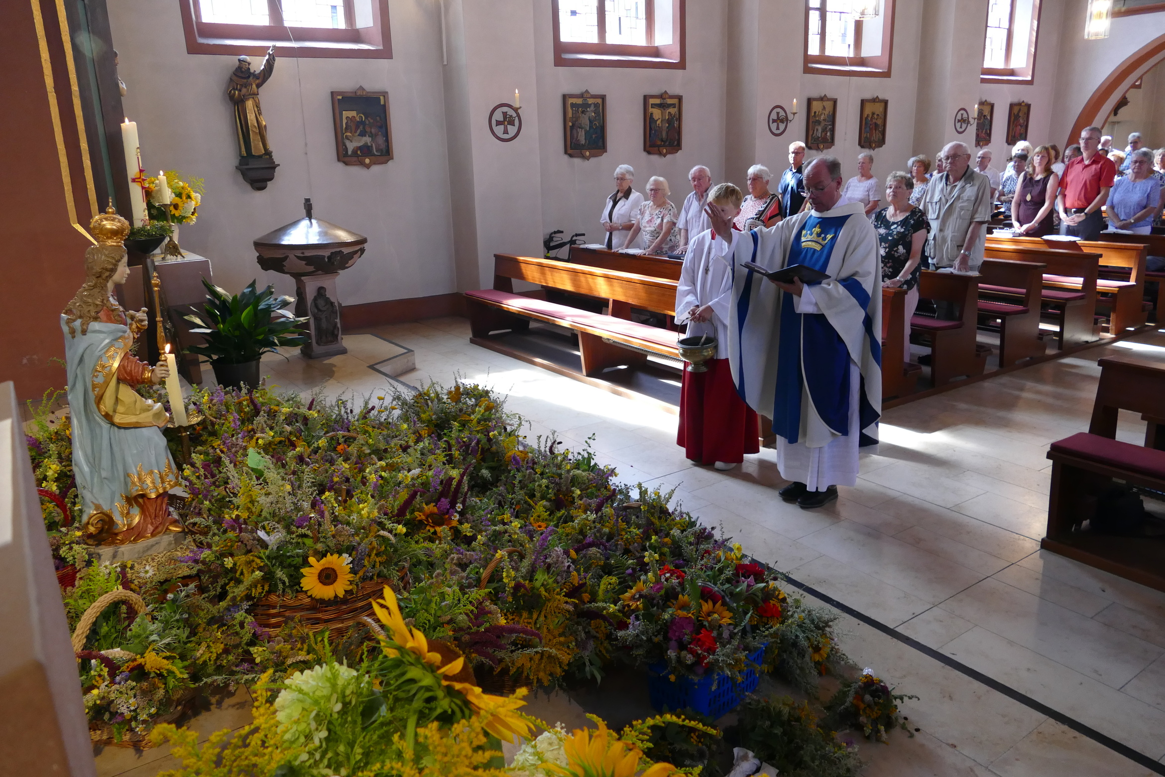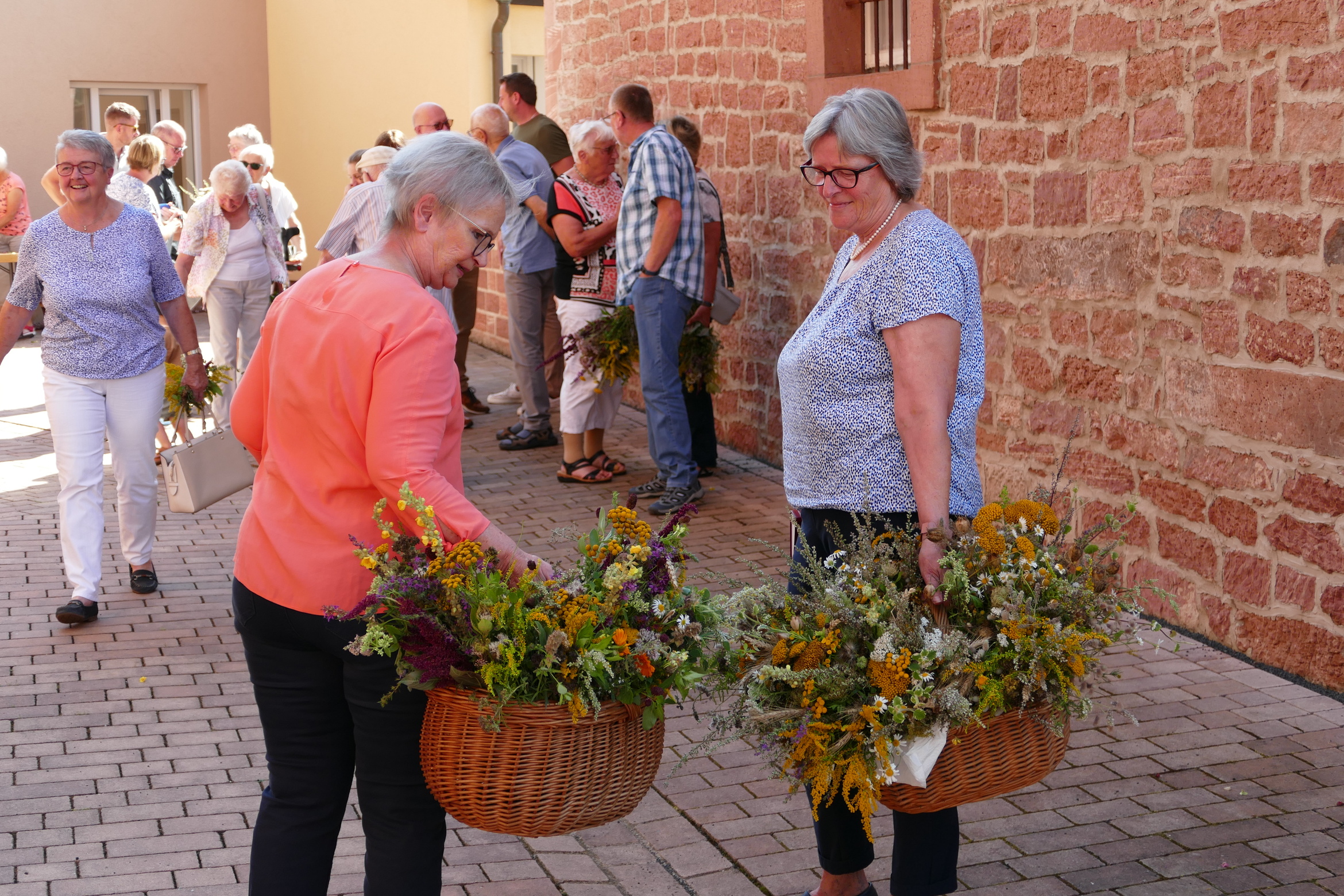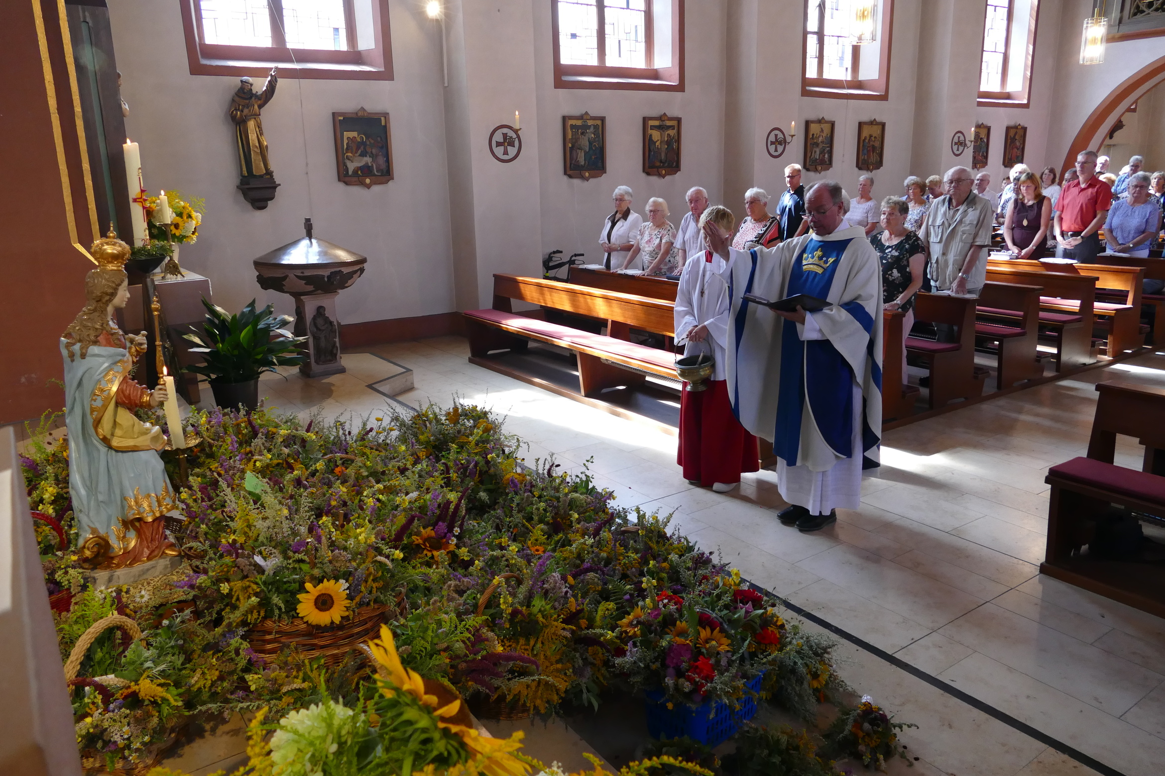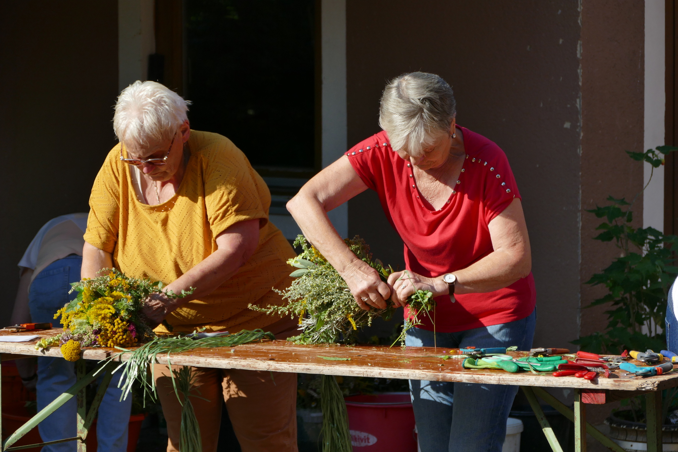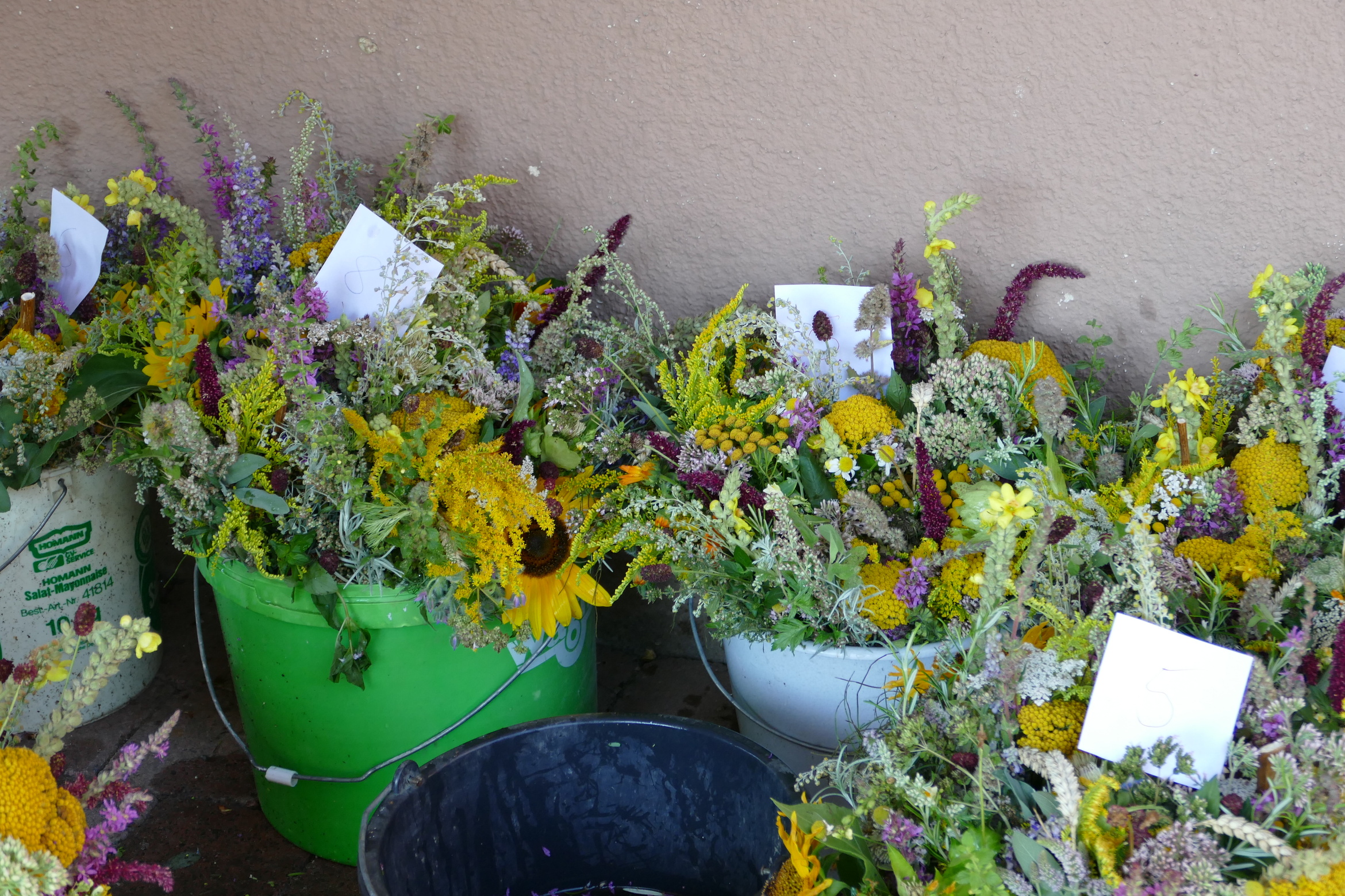 Viele fleißige Hände haben aus duftenden Blumen und Kräutern mehr als 200 Kräuterbüschel gebunden für das Fest Maria Himmelfahrt. Allerlei Heilkräuter aus den Gärten, Blumen und Pflanzen von den Wegrändern. Alles wurde mitverwendet.