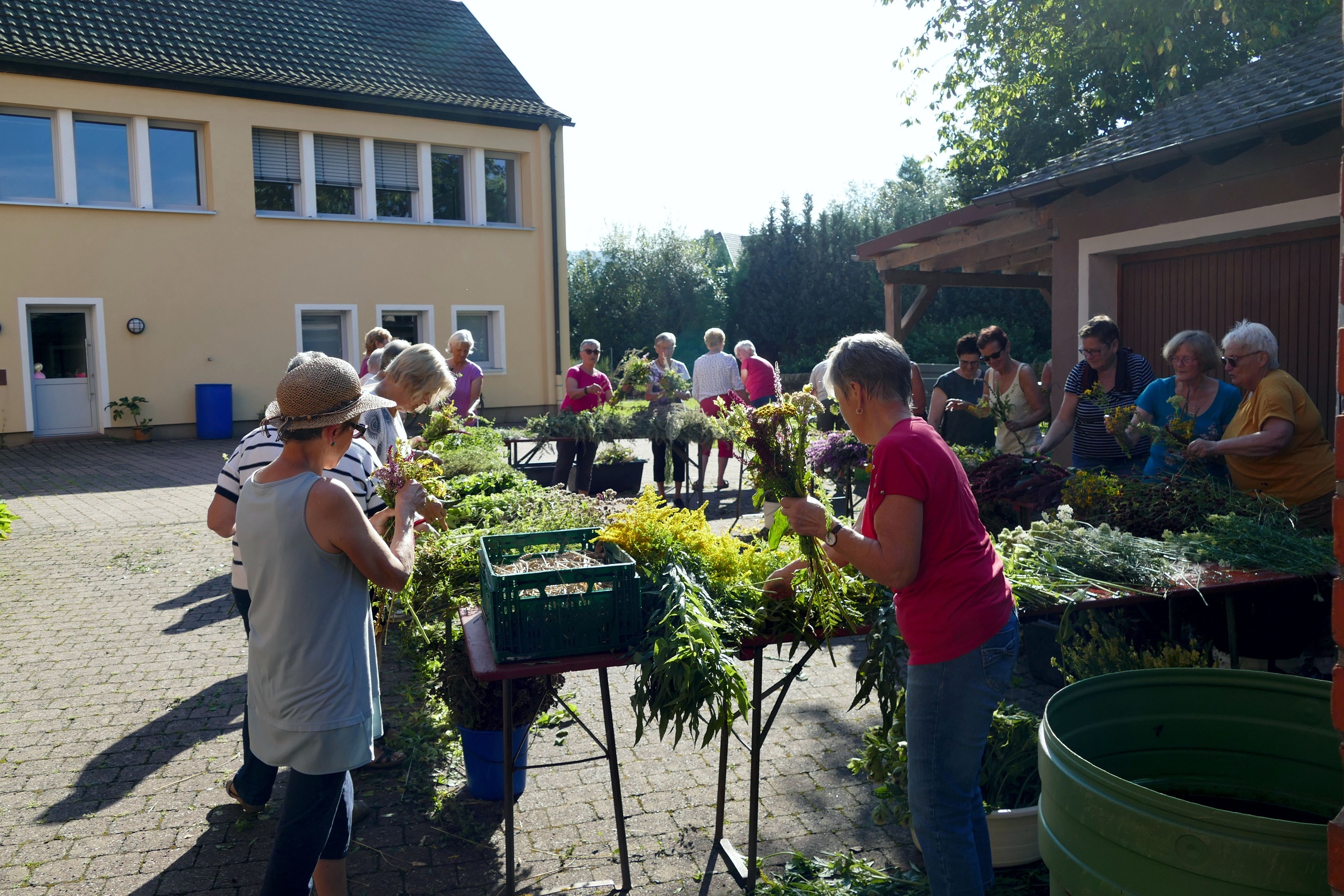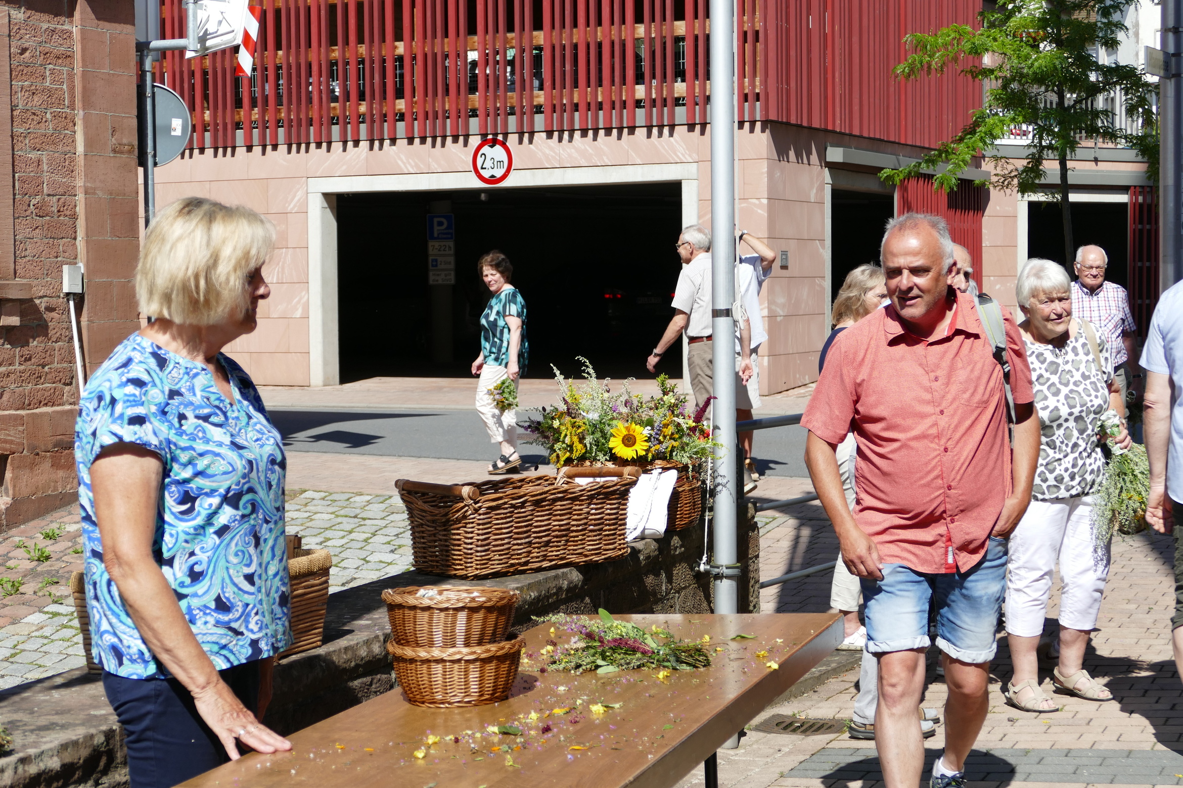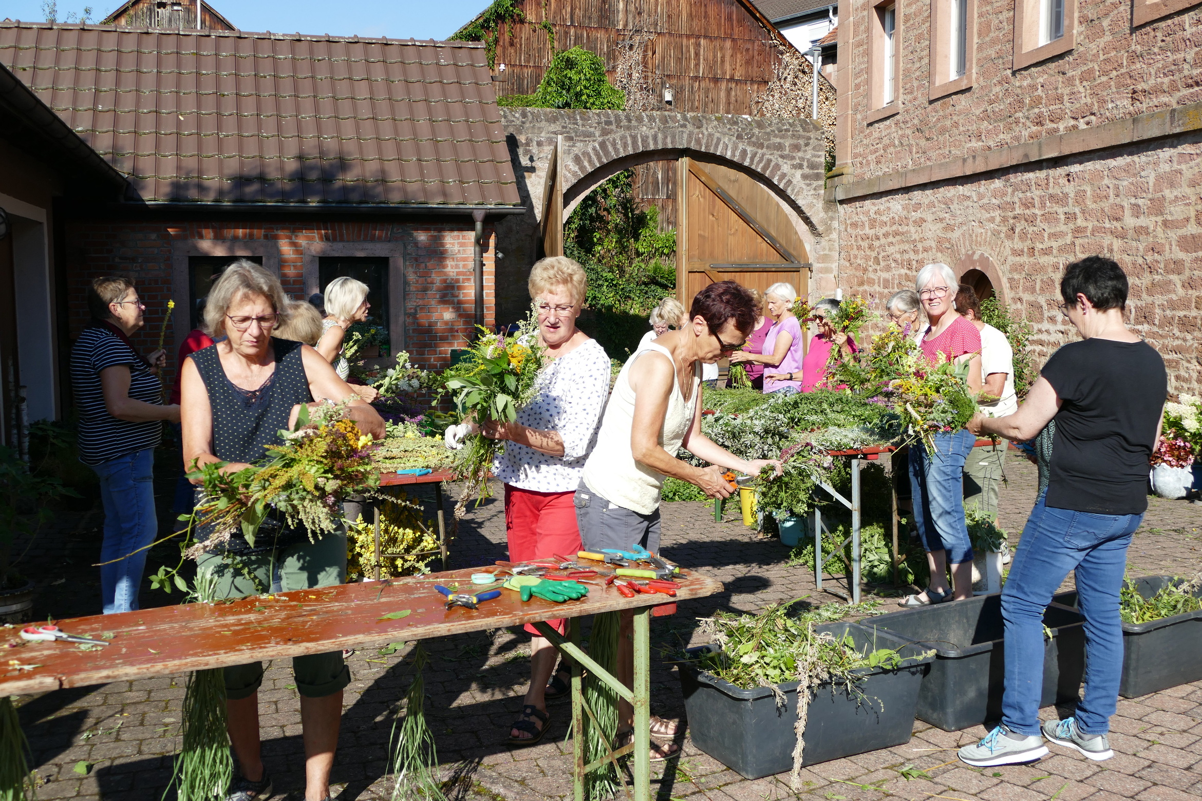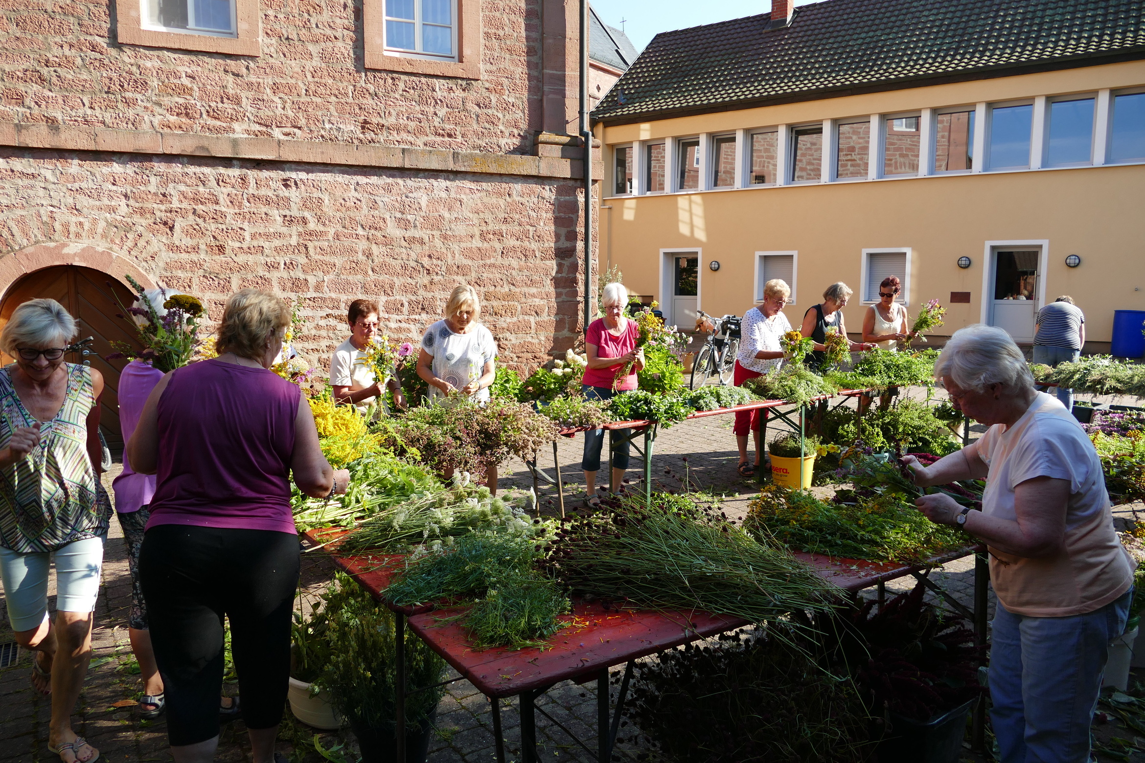 Viele fleißige Hände haben aus duftenden Blumen und Kräutern mehr als 200 Kräuterbüschel gebunden für das Fest Maria Himmelfahrt. Allerlei Heilkräuter aus den Gärten, Blumen und Pflanzen von den Wegrändern. Alles wurde mitverwendet.