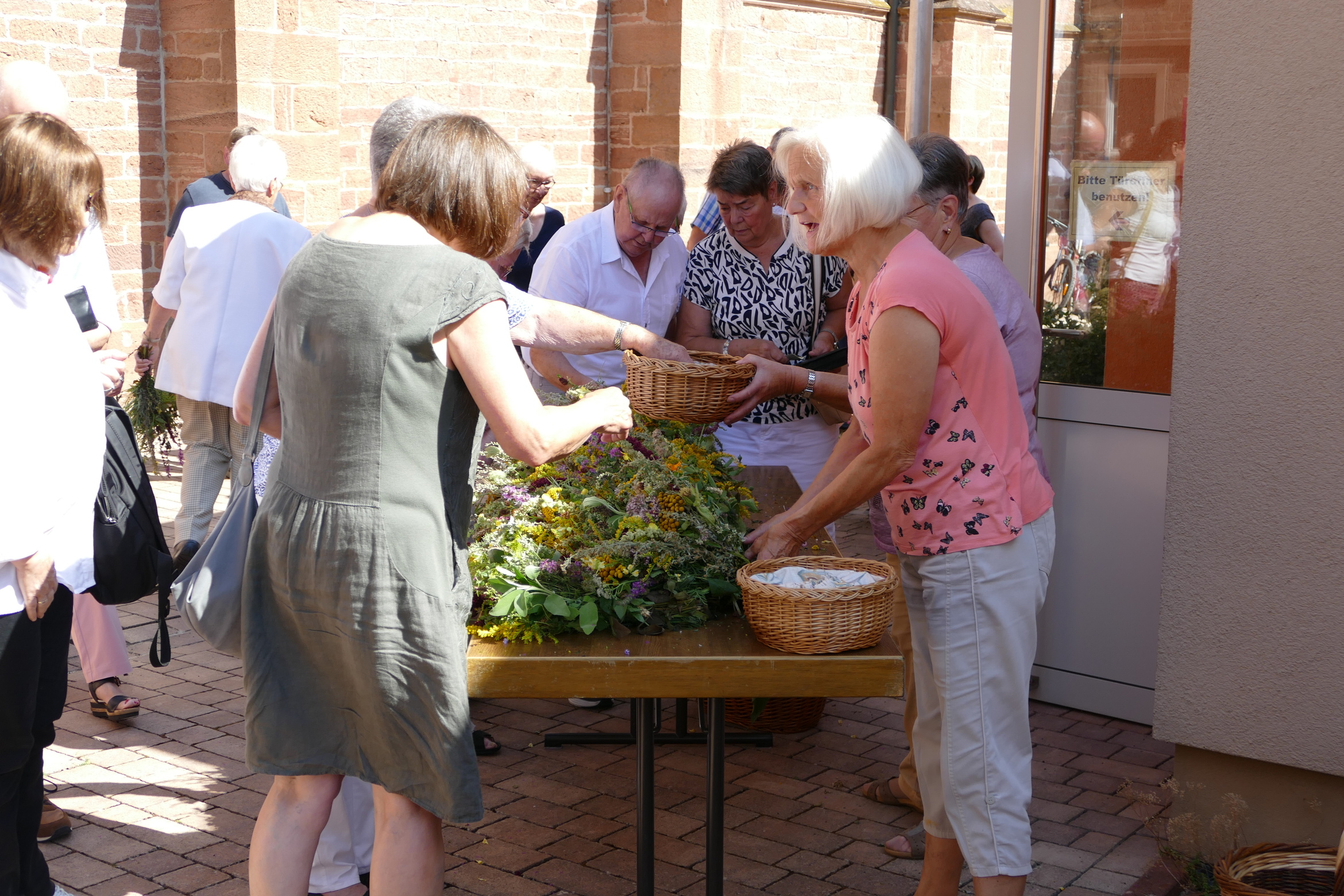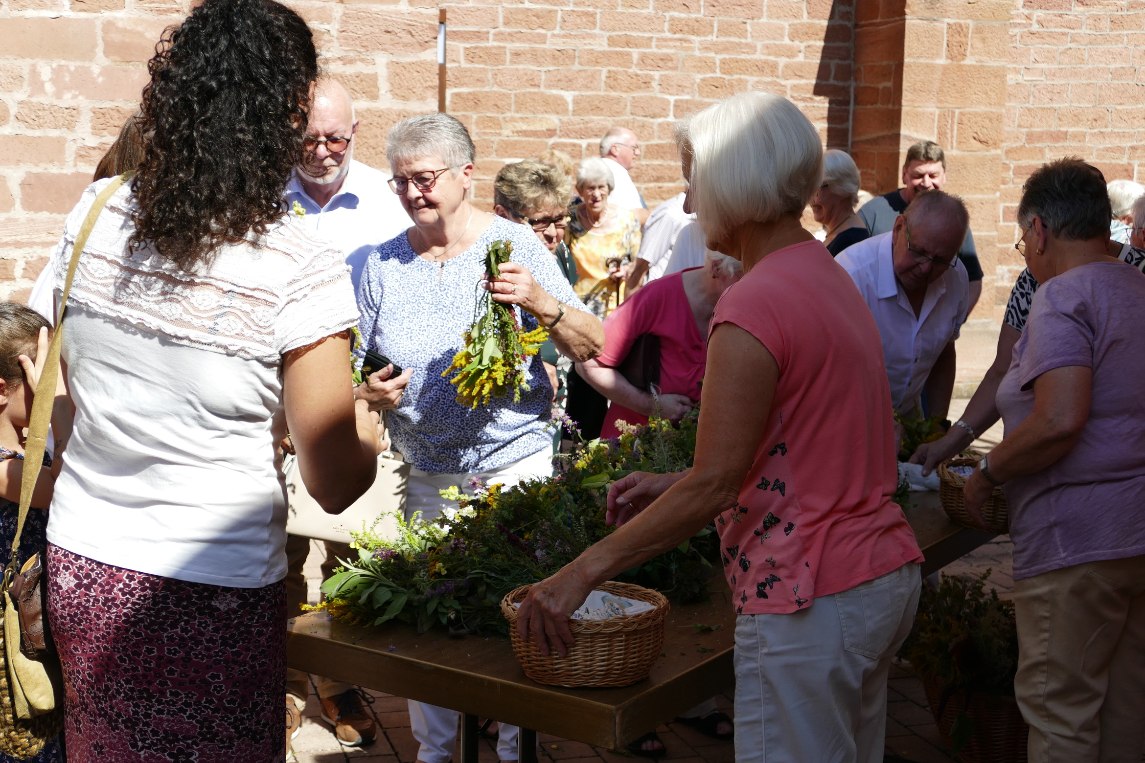 Zum Ende des festlichen Gottesdienstes wurden die Kräuterbüschel gesegnet und gegen eine Spende an die zahlreichen Gottesdienstbesucher abgegeben.