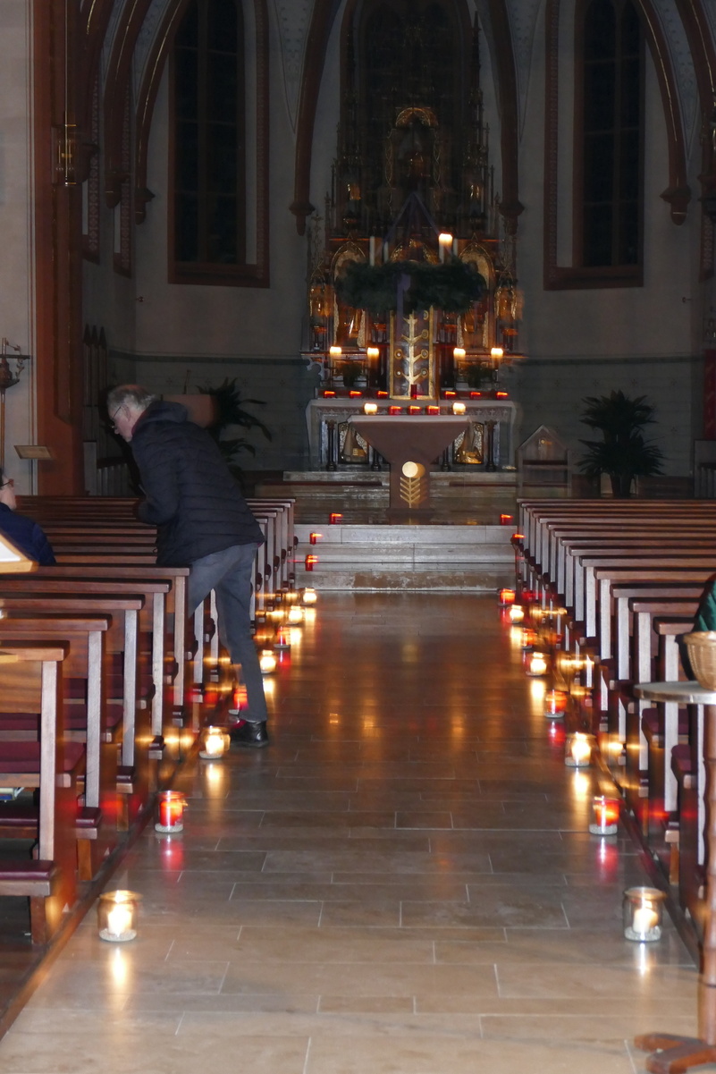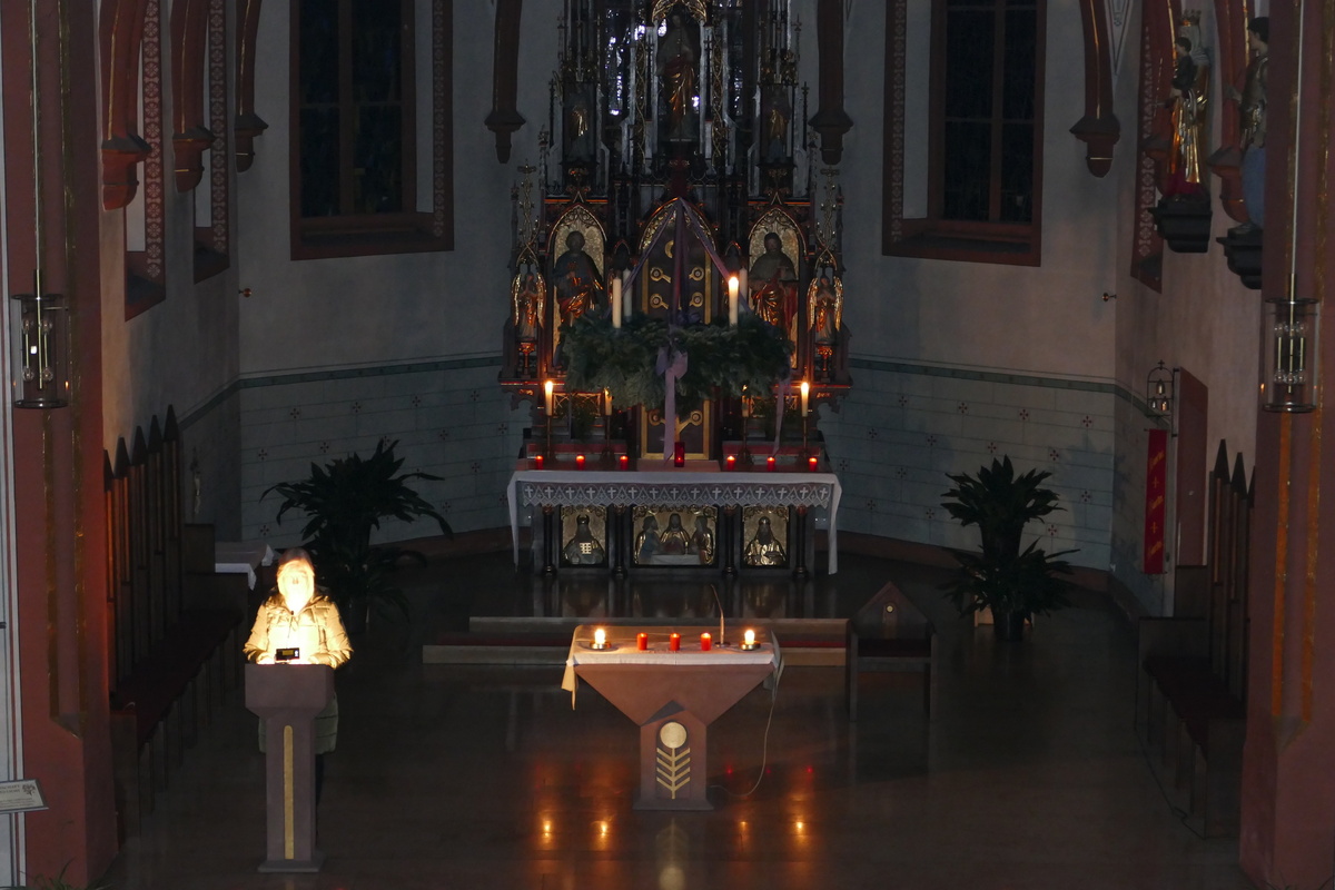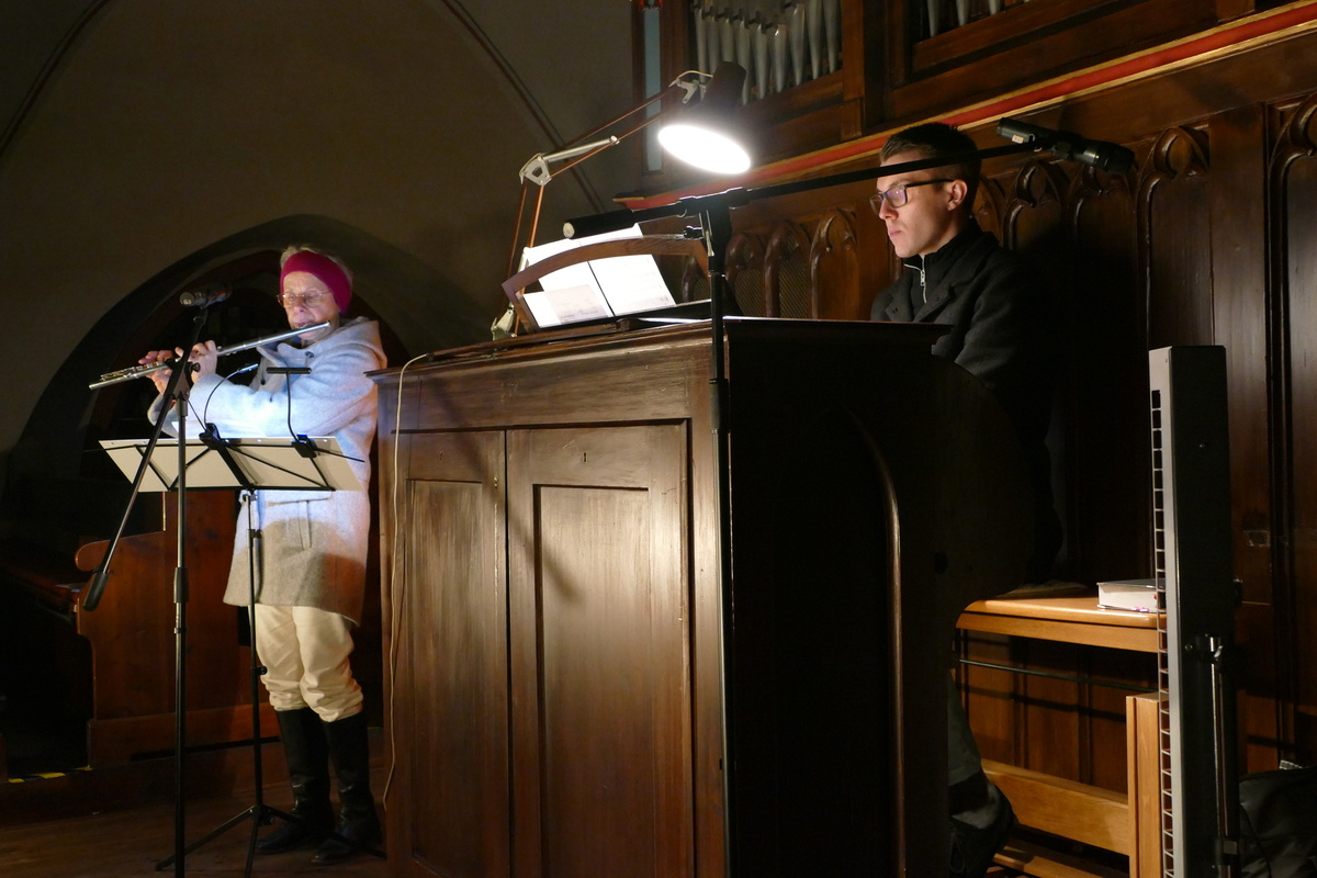 In der Pfarrkirche Kirchzell findet auch in diesem Jahr wieder an allen Adventssonntagen, jeweils um 18:00 Uhr eine meditative, musikalische Andacht statt. „Türen öffnen“ war das erste Thema der Reihe „Sonntag um Sechs“. Am Abend des 1.Advent eröffneten Marcel Markert an der Orgel und Marianne Elser an der Querflöte die Reihe „Sonntag um Sechs“. Die Pfarrkirche war zu diesem Anlass in stimmungsvolles Kerzenlicht getaucht. Silvia Schwab trug zum Thema „Türen öffnen“ entsprechende Impulse vor, die zum Nachdenken anregten. Orgelklänge, umrahmt von der Querflöte, mit Stücken namhafter Komponisten, sowie der Gesang des Duos, mit der „Herbergsuche“ gaben den Gedanken die nötige Tiefe. So war der Applaus der Besucher an alle Akteure der größte Dank für einen gelungenen Abend. Alle Besucher wurden zu Glühwein und Kinderpunsch eingeladen, um den Abend ausklingen zu lassen.