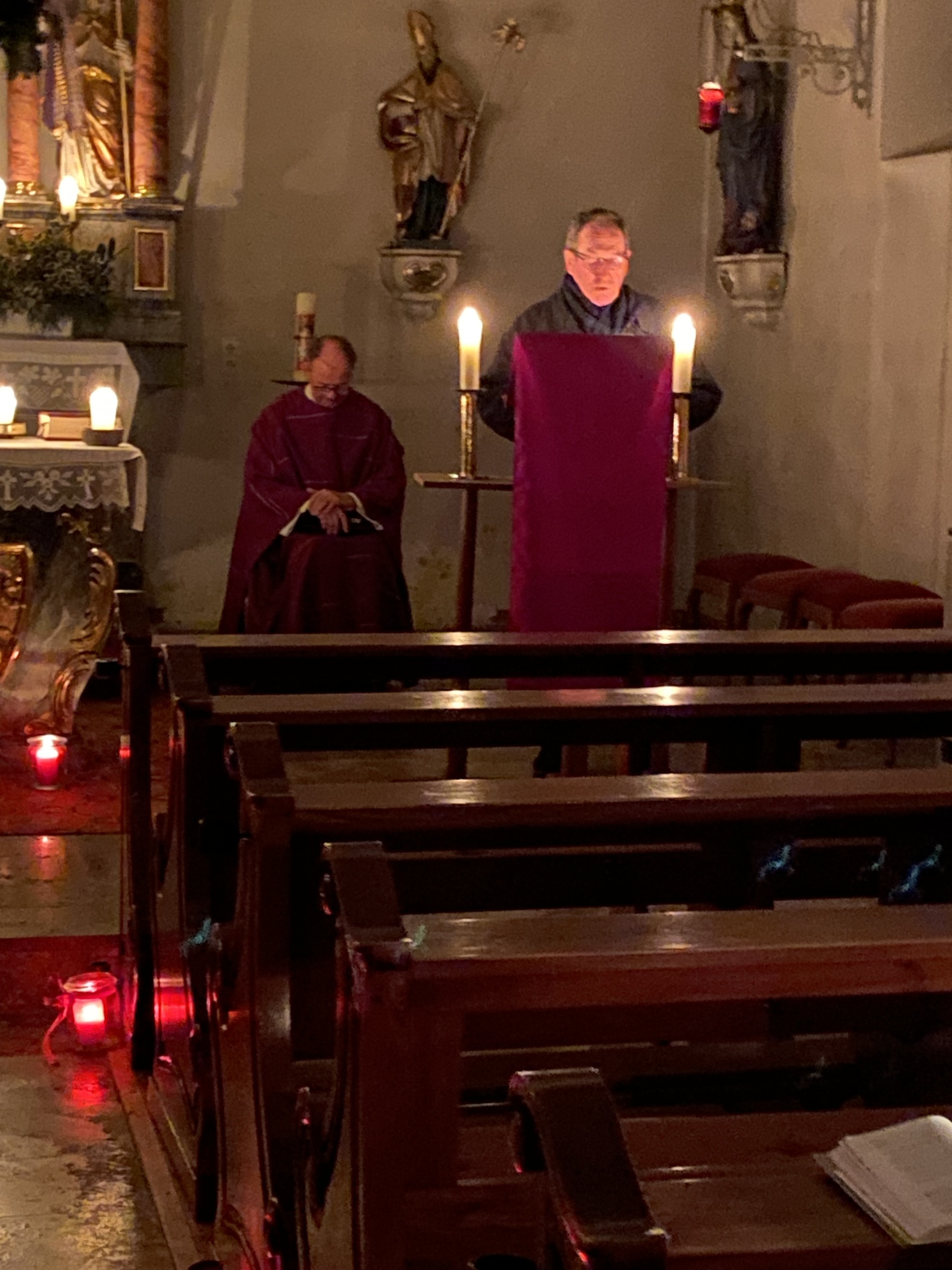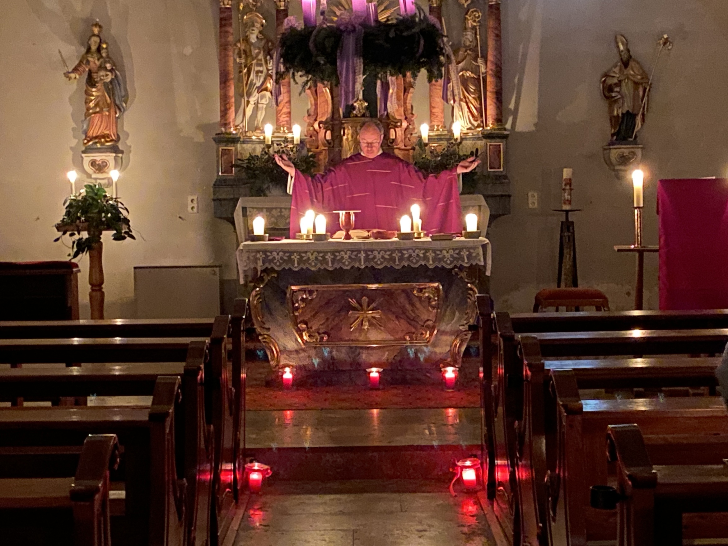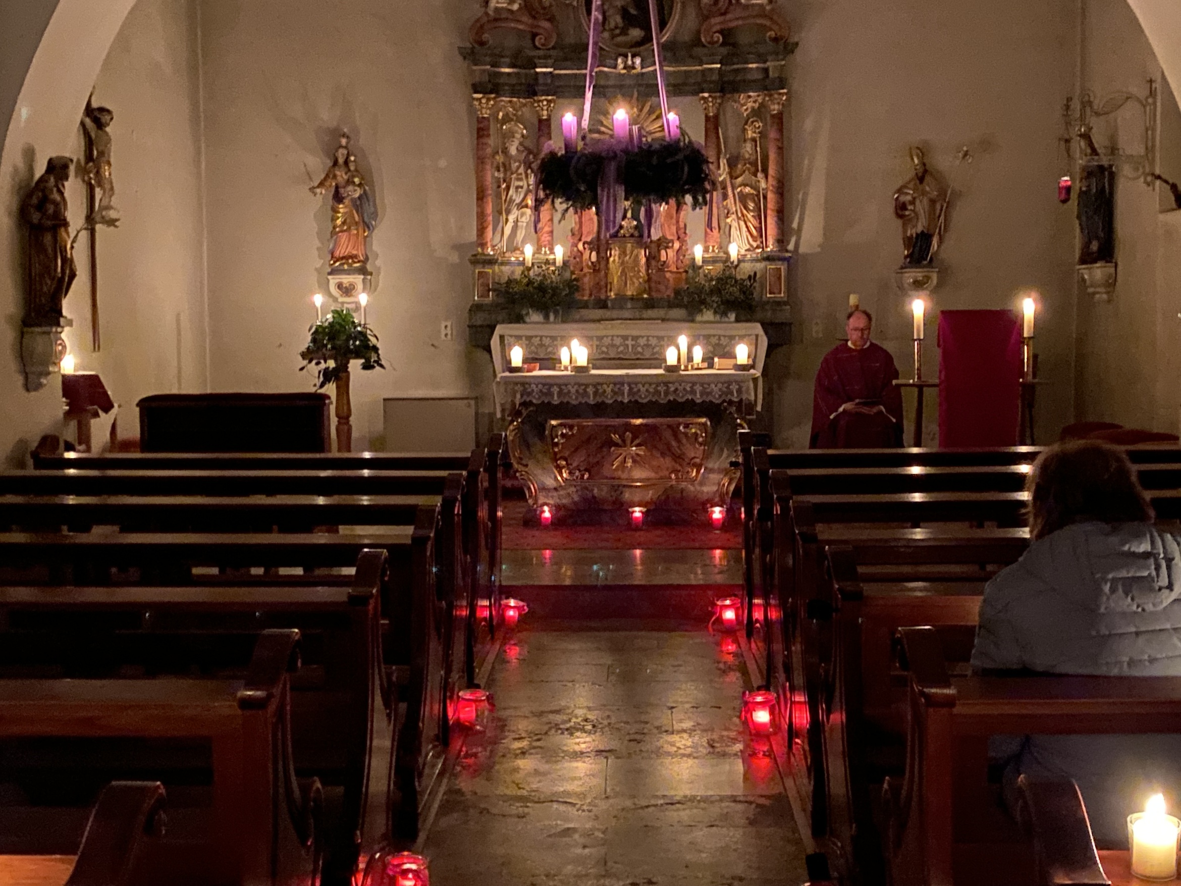 Im Schein vieler Kerzen erstrahlte die kleine Kirche im Höhenort Preunschen zur gemeinsamen Rorate. Die Mesner Otmar Fertig und Bernhard Speth hatten im Kirchenraum viele Kerzen entzündet und so eine ganz besondere Stimmung geschaffen. Marcel Markert an der Orgel unterstützte den morgendlichen Gesang und Pfarrer Michael Prokschi wusste in einer kurzen Ansprache und einem Impuls nach der Kommunion Gedanken in den Tag und für die Woche mitzugeben.