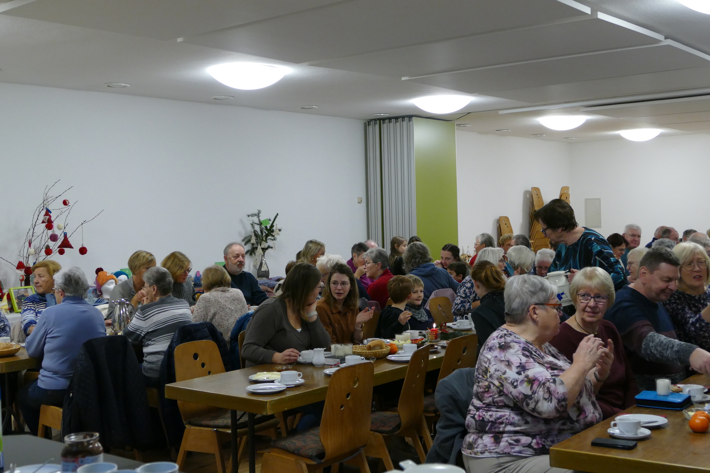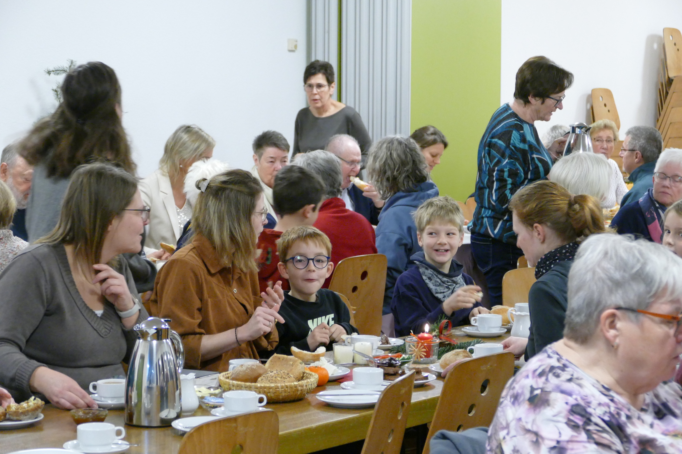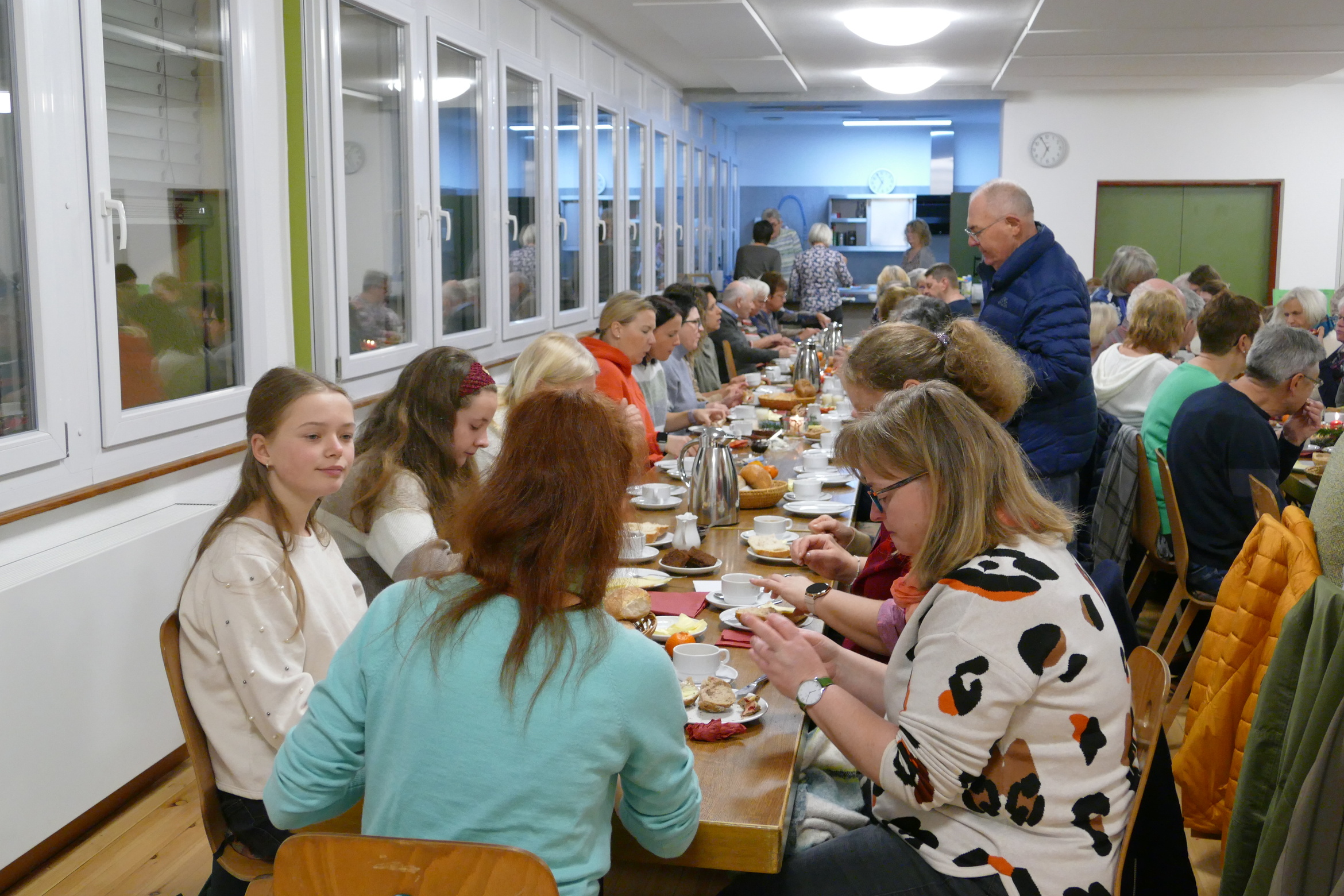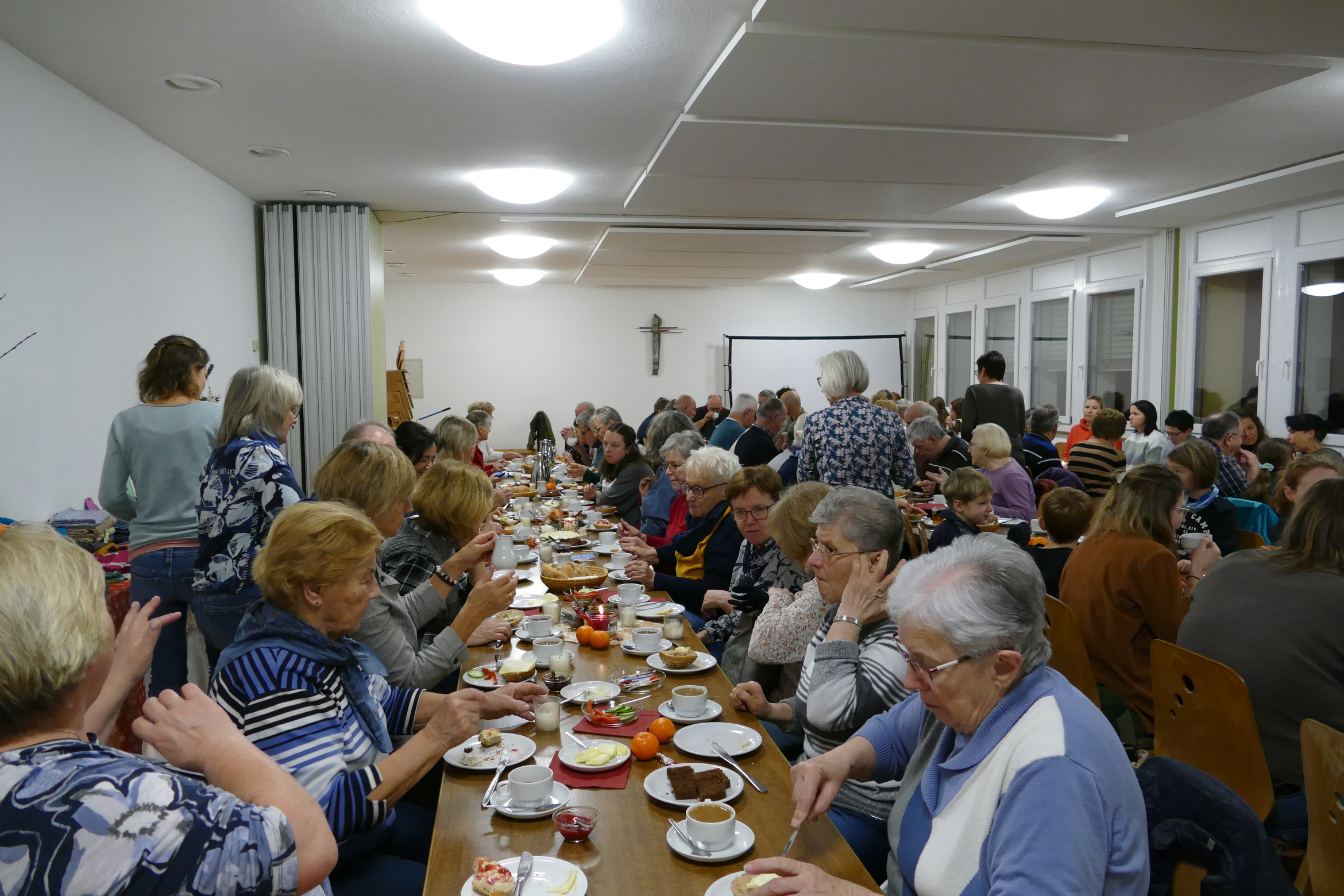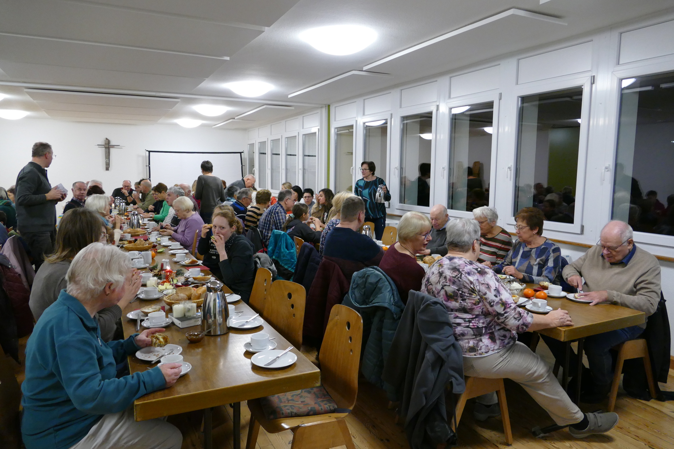 Nach dem gemeinsam Gottesdienst war im Pfarrheim alles liebevoll vorbereitet und knapp 100 Personen kamen zum Frühstück zusammen.
