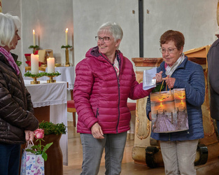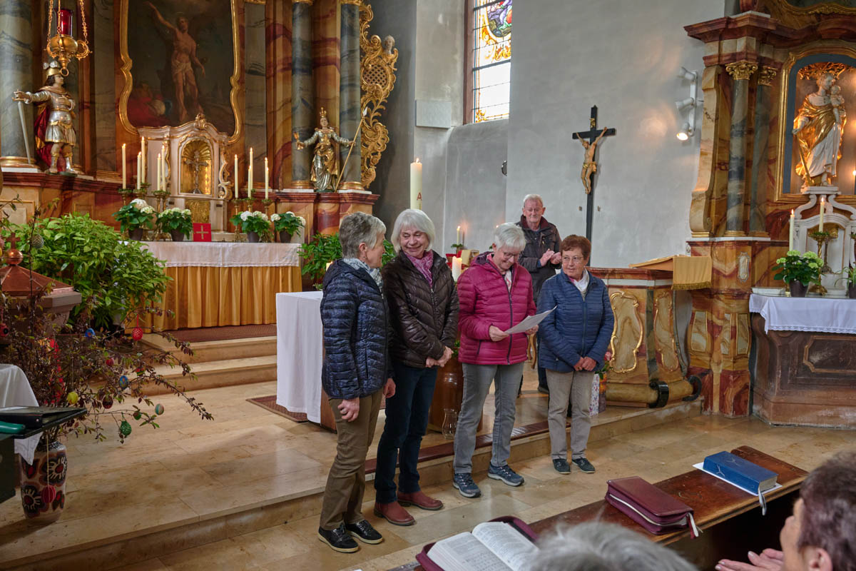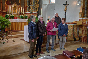 Trotz Regen lief Pfarrer Michael Prokschi mit einigen wetterfesten Rentnern und gemeinsam wurde um 13.30 Uhr der Gottesdienst gefeiert. Markus Meixner spielte die Orgel, die Mitarbeiter des Seniorenteams brachten sich im Gottesdienst mit ein. Der Gedanke der Dankbarkeit stand im Mittelpunkt und Pfr. Prokschi erinnerte an viele Kleinigkeiten des Alltages, wofür es sich zu Danken lohnt. Im Anschluss an den Gottesdienst wurden Christel Trunk, Brigitte Schneider (in Abwesenheit), Gertrud Röcklein und Gertrud Scheurich aus dem bisherigen Team verabschiedet.