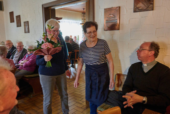 Maria Schöllig und Kasimir Schmitt dankten für die zum Teil jahrzehntelange Unterstützung und übergaben jeweils ein Geschenk.