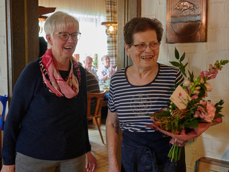 Das gemütliche Beisammen sein fand im Gasthaus Meixner statt, auch hier bekam Helene Meixner einen Blumengruß zum Dank für die stets gute Bewirtung der Senioren.