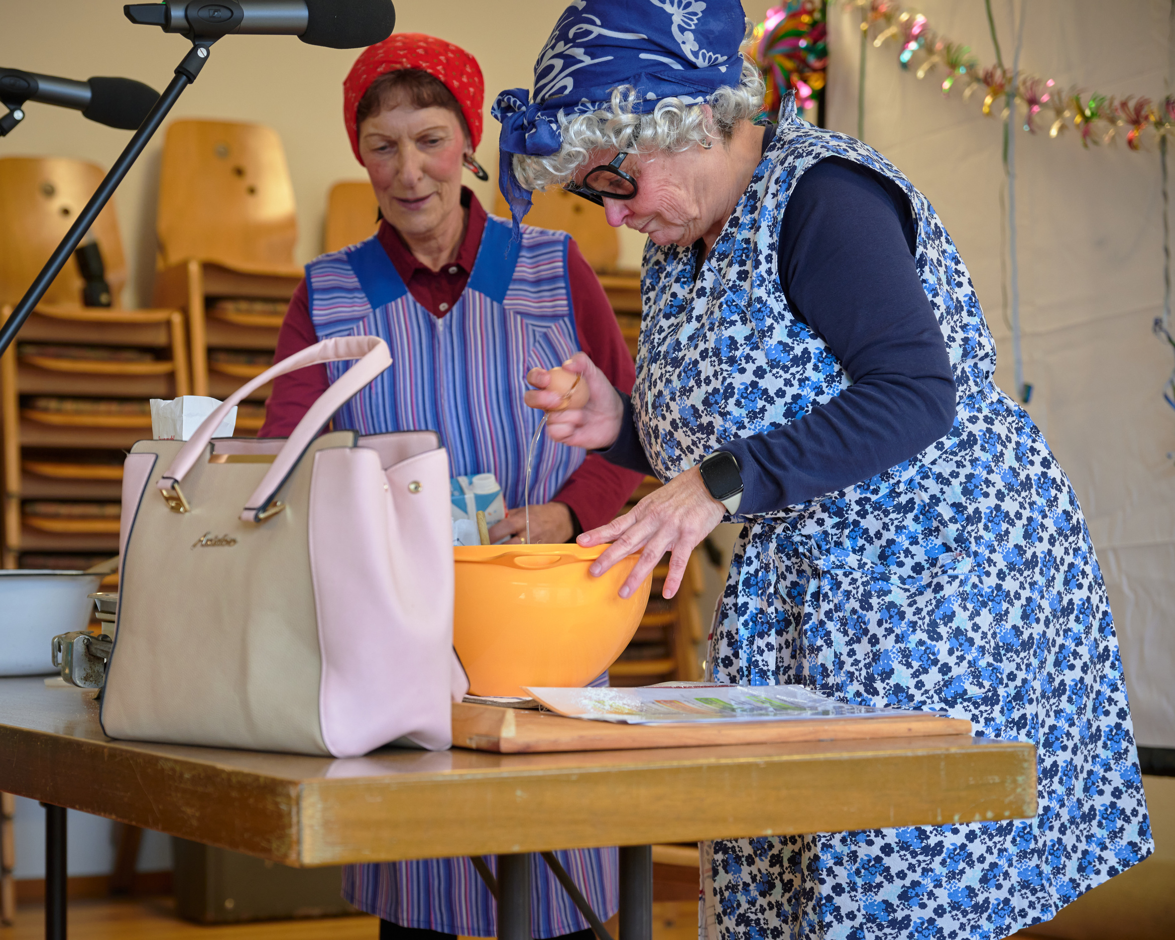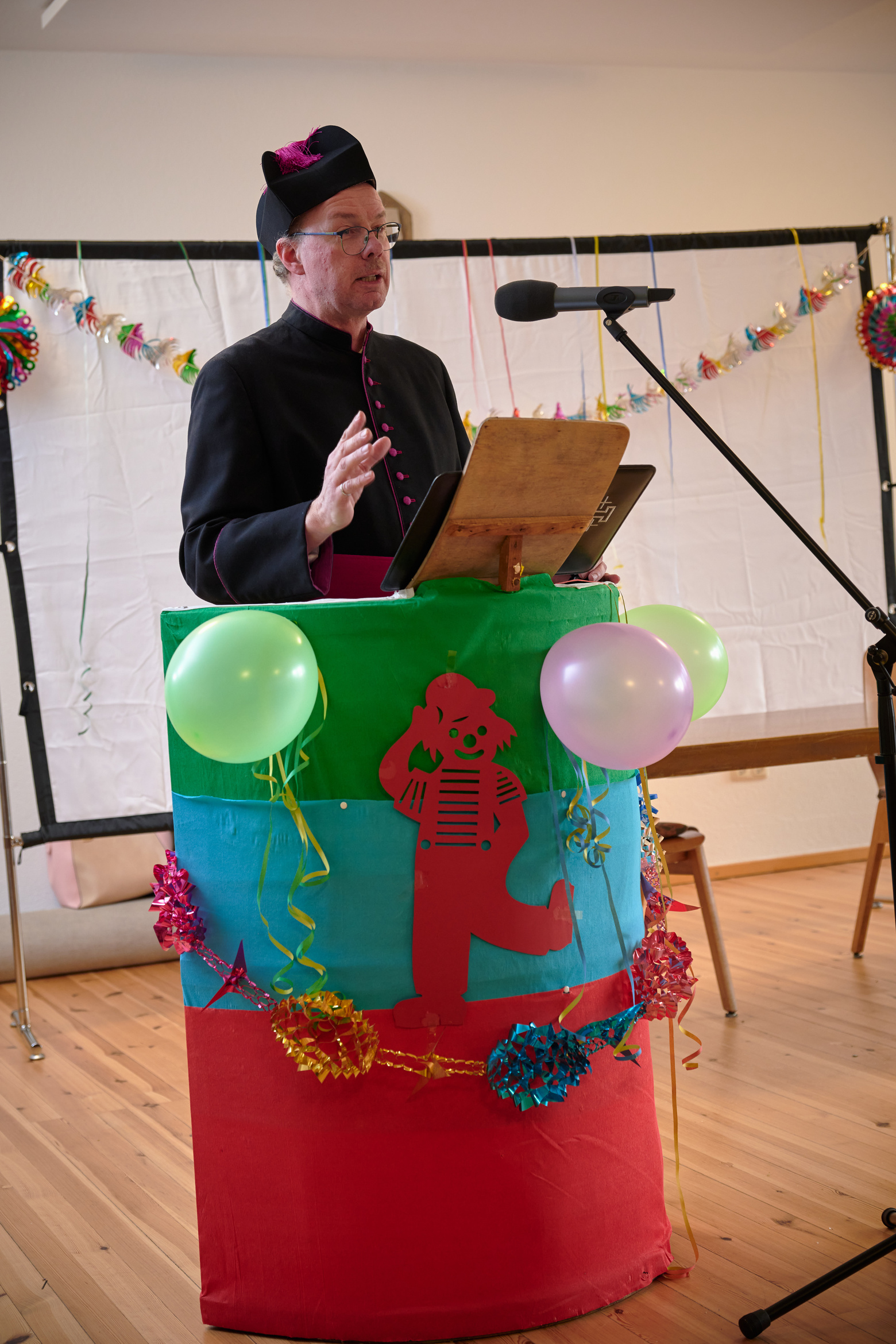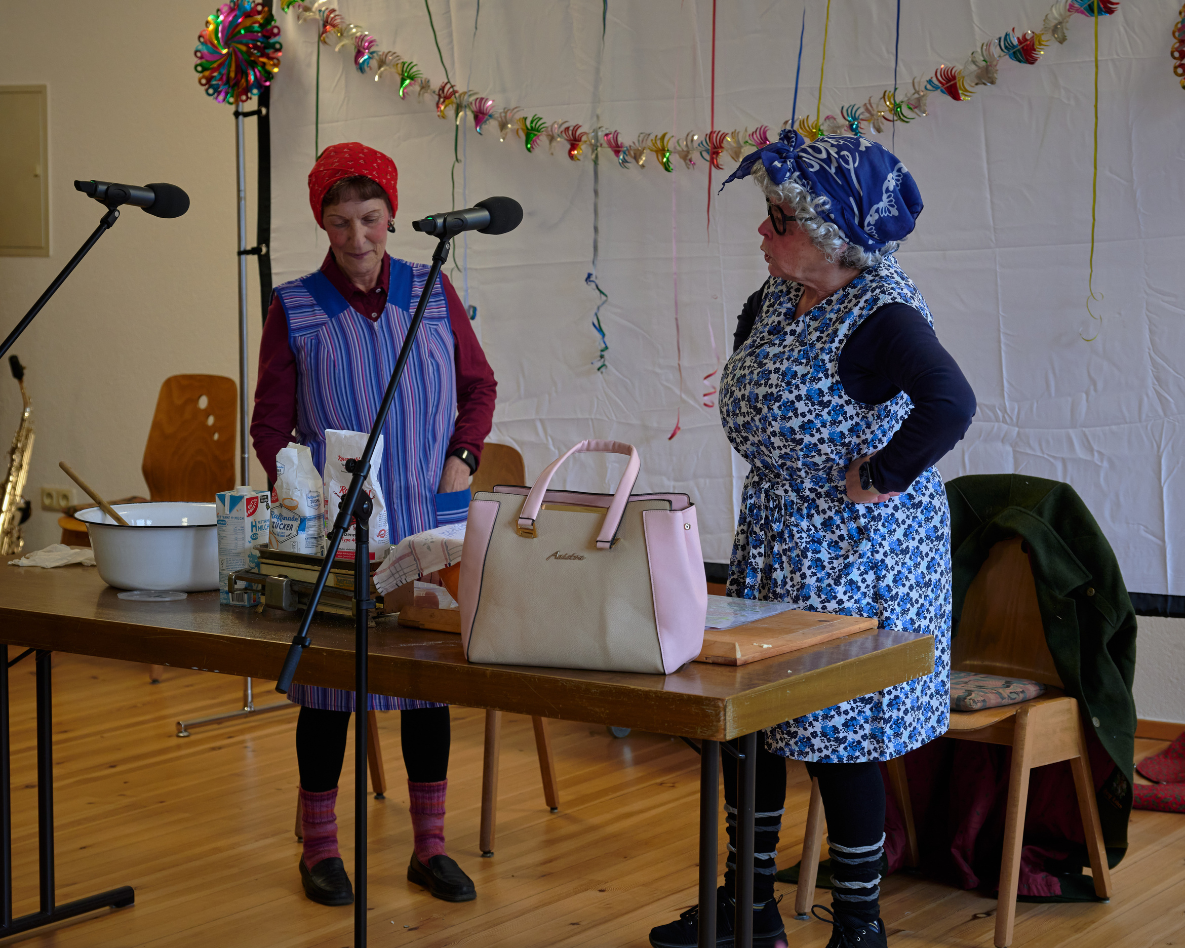 Helga Schmitt und Petra Zang wollten Faschingsküchle backen, was aber heilos daneben ging. Pfarrer Prokschi hielt eine humorvolle Predigt und sagte dem Teufel Alkohol den Kampf an. Maria Schöllig wusste zusammen mit Kasimir Schmitt Lustiges aus dem Seniorenkreis zu berichten und Heinrich Meixner erzählte von seinen Erlebnissen beim Bergwandern. Ein abwechslungsreiches Programm welches mit leckeren Krapfen und einem hausgemachten Wurstsalat als Donebach abgerundet wurde.