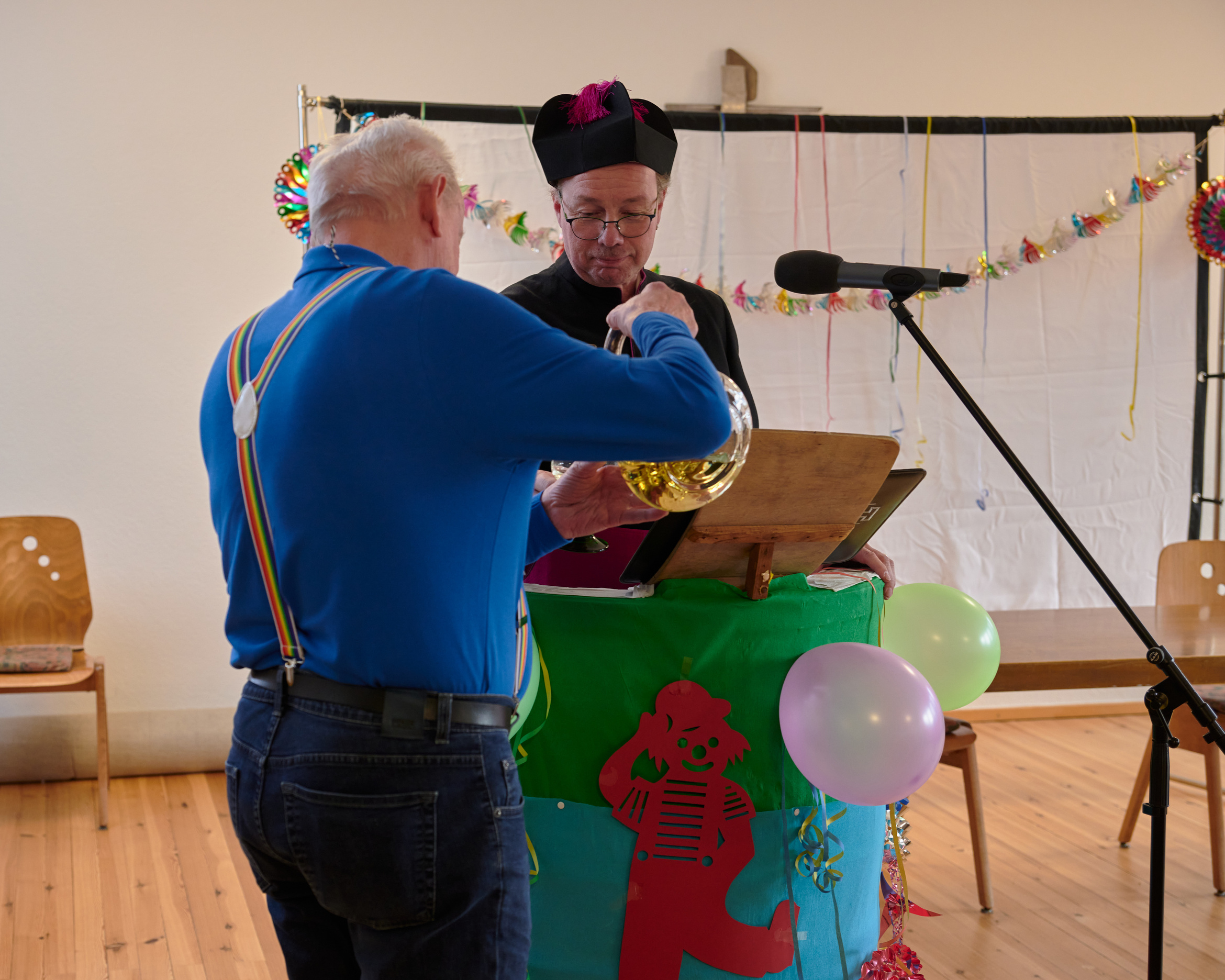 Das Seniorenkreisteam hatte zum närrischen Faschingsnachmittag geladen und gut 70 Seniorinnen und Senioren sind mit ganz unterschiedlichen Verkleidungen der Einladung gefolgt. Musikalisch schwungvoll unterstützt von Peter Horn an der Quetsche, Kurt Schwab am Saxophon und Markus Meixner am Keyboard wurde gesungen und geschunkelt. Das Team um Maria Schöllig hatte ein buntes Programm zusammen gestellt und bei den humorvollen Beiträgen wurde viel gelacht.