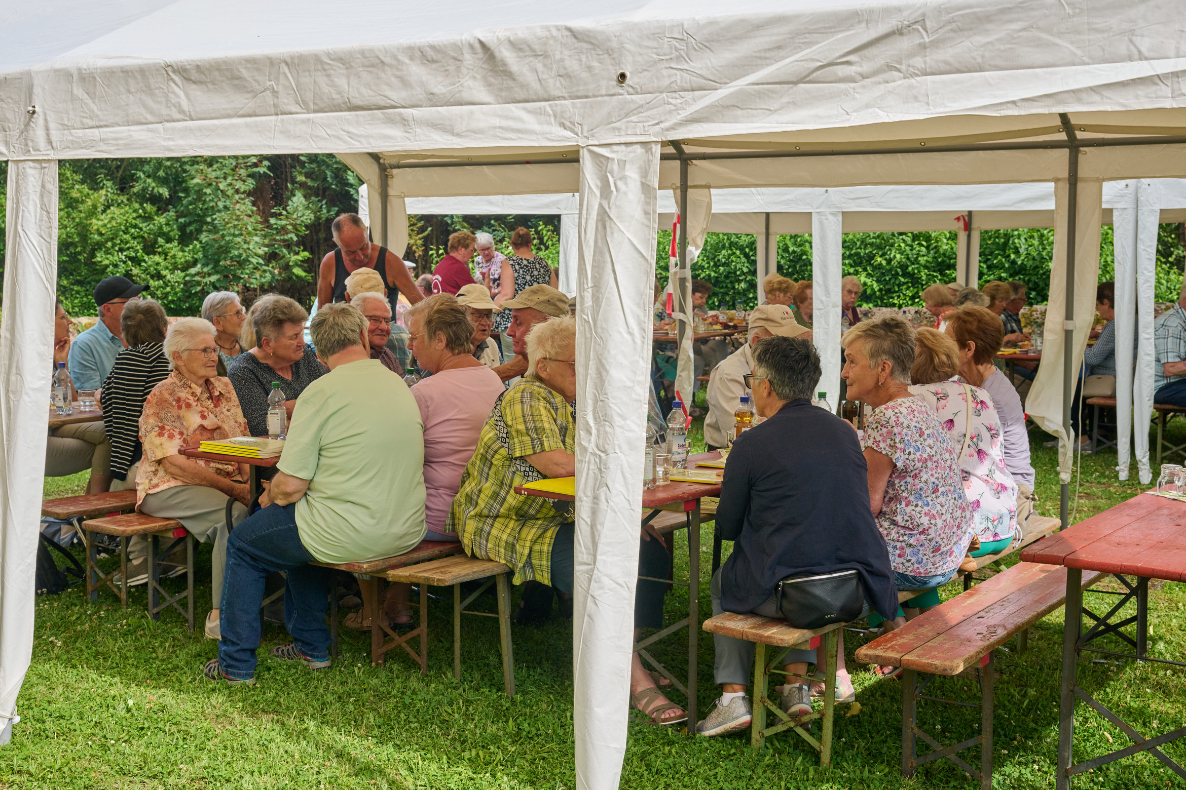 Bei sonnigem Wetter und angenehmen Wetter fand am 16.Juli der Seniorennachmittag im Pfarrgarten Kirchztell statt. Neben den Kirchzeller Senioren waren auch viele Gäste aus Laudenbach gekommen und verbrachten einen zünftigen Nachmittag. Die Blasmusik lud zum Mitsingen ein. Bei kühlen Getränken und leckeren Bartwürsten lies es sich gut aushalten. Pfarrer Michael Prokschi spendierte für alle ein erfrischendes Eis und es war für alle ein kurzweiliger Nachmittag.