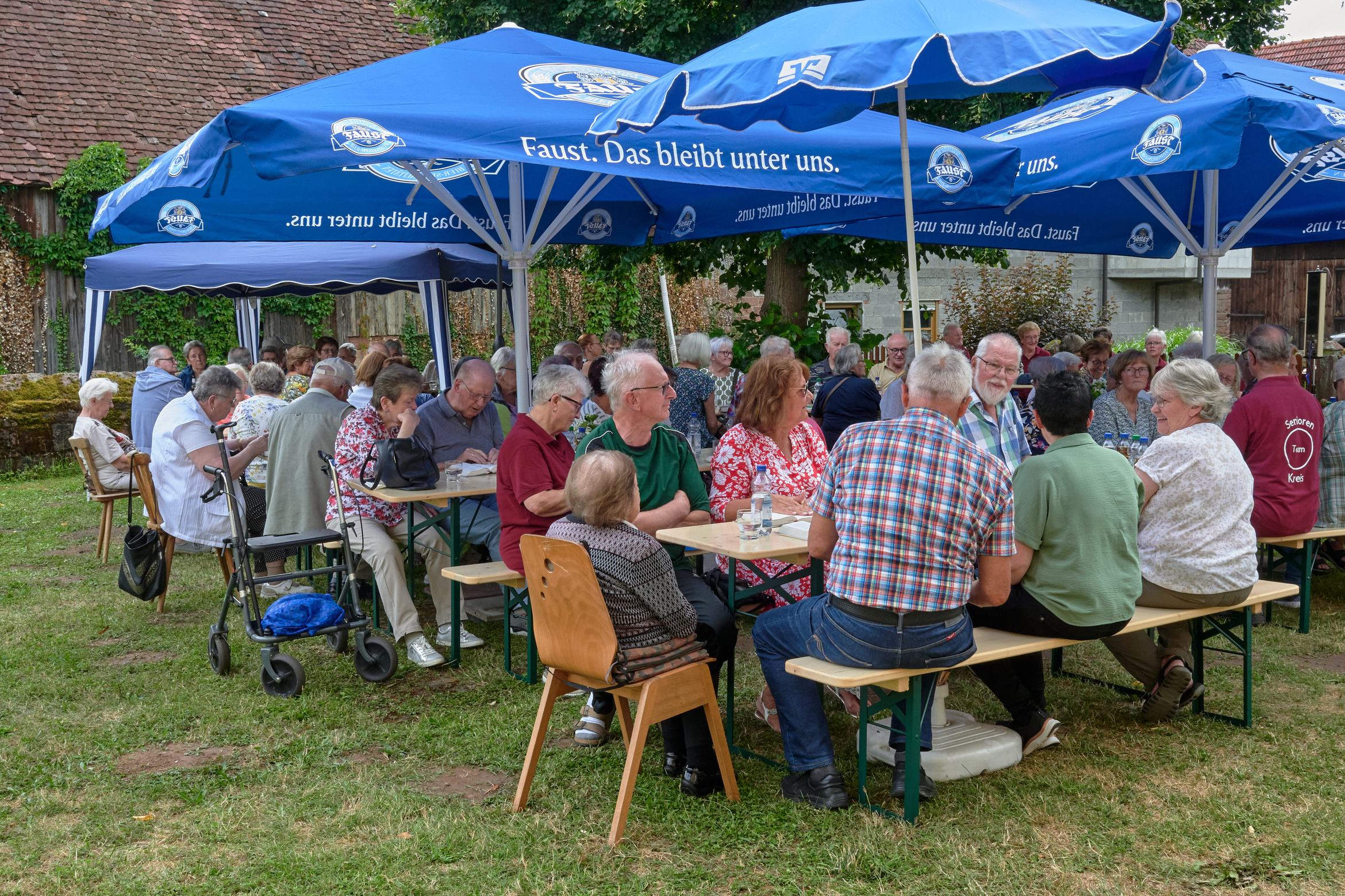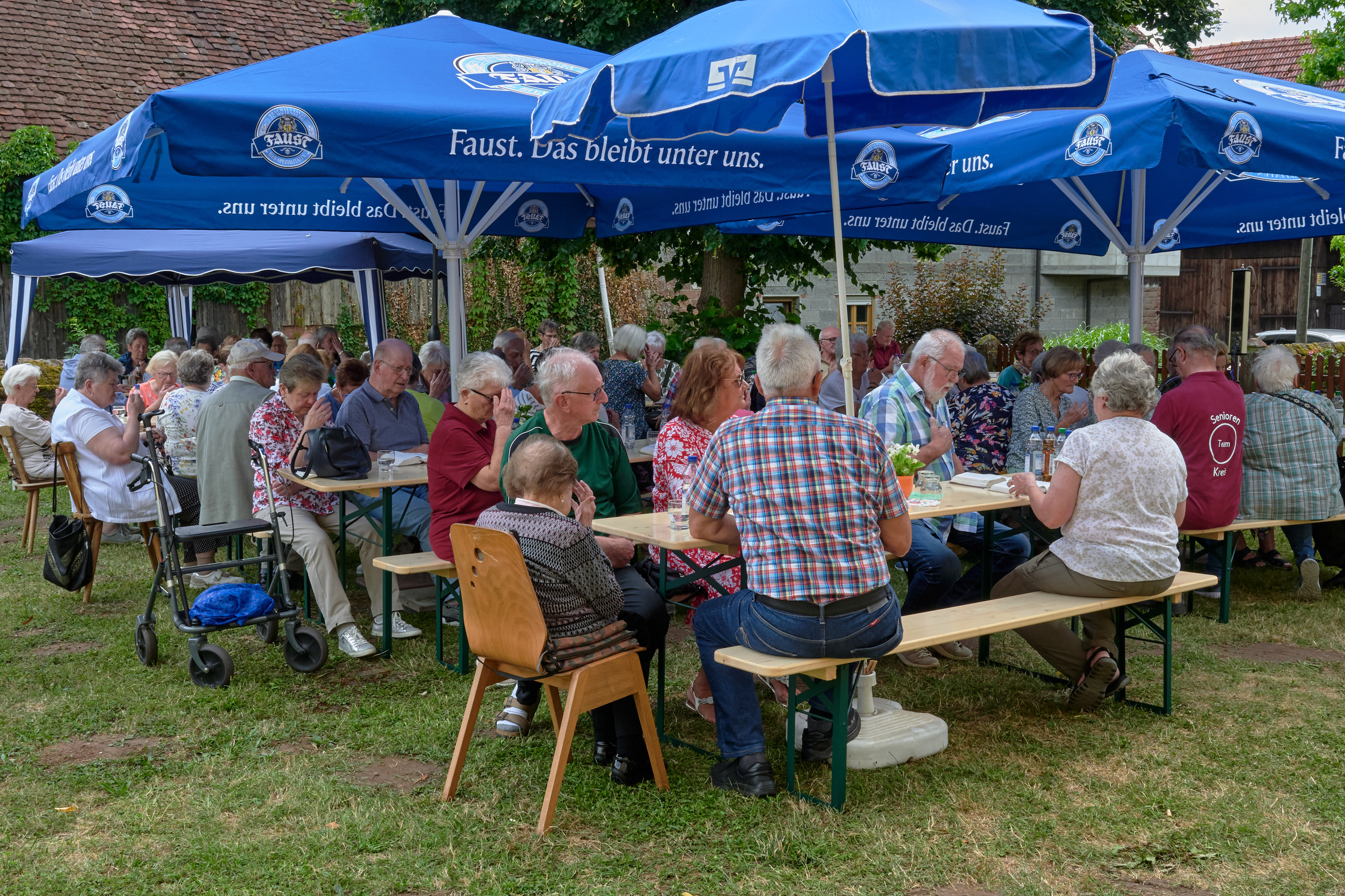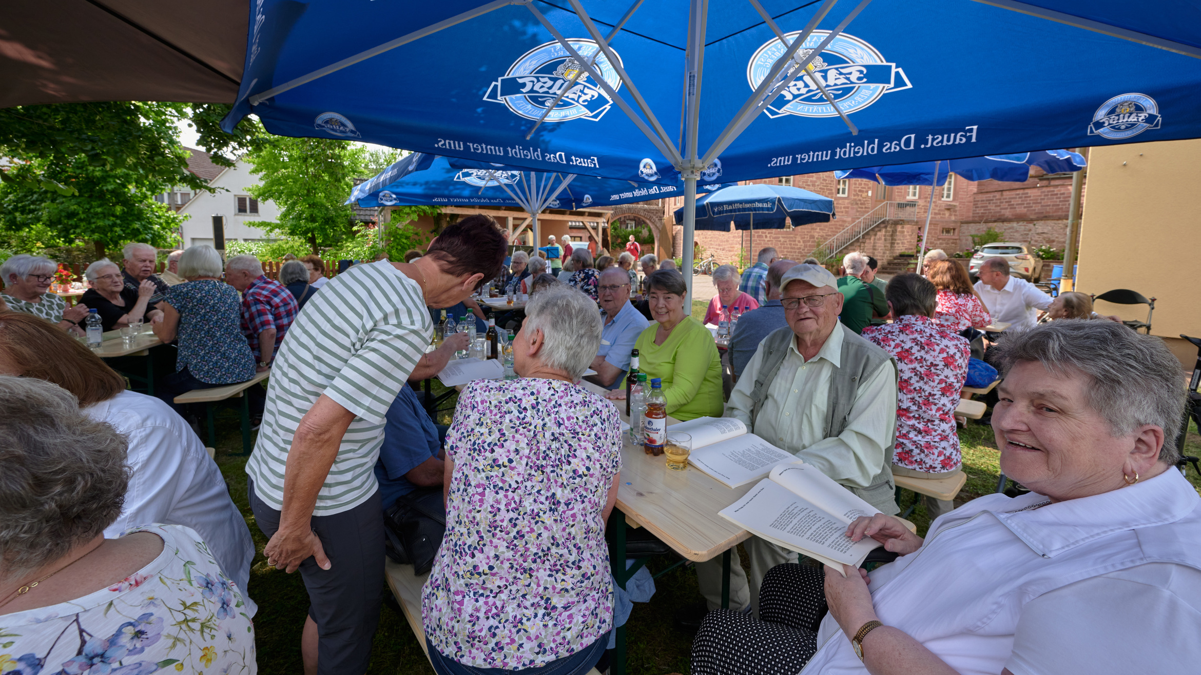 Maria Schöllig konnte gut 80 ältere Menschen begrüßen, das Team hatte unter der mächtigen Lind die Tische und Bänke gestellt.
