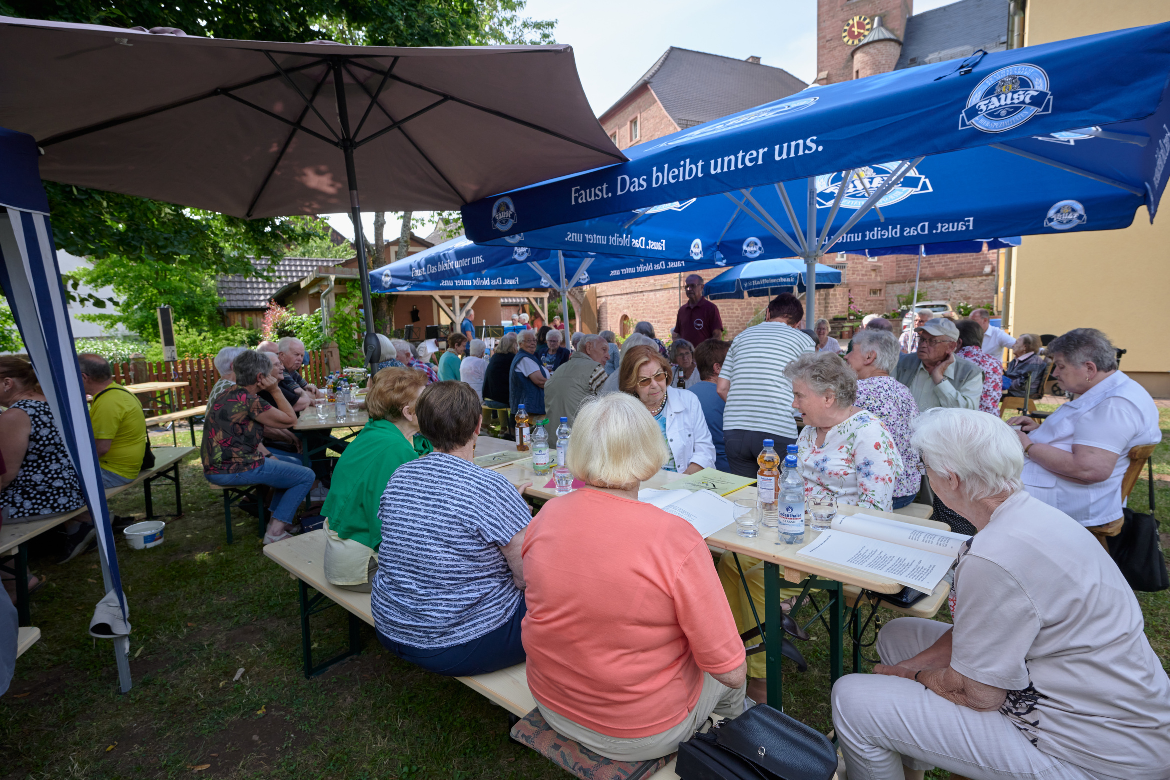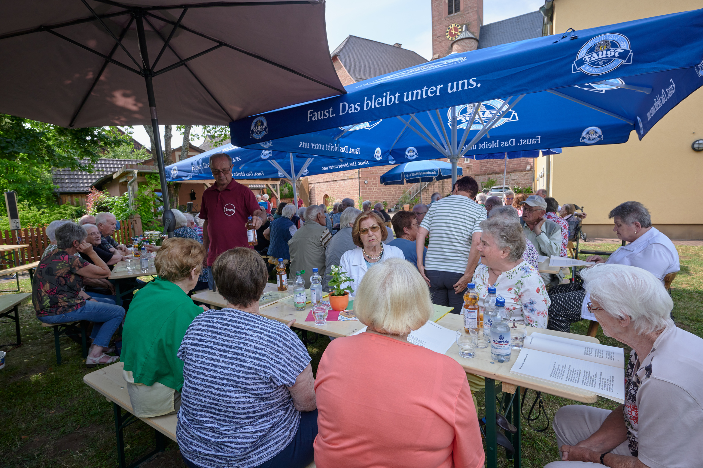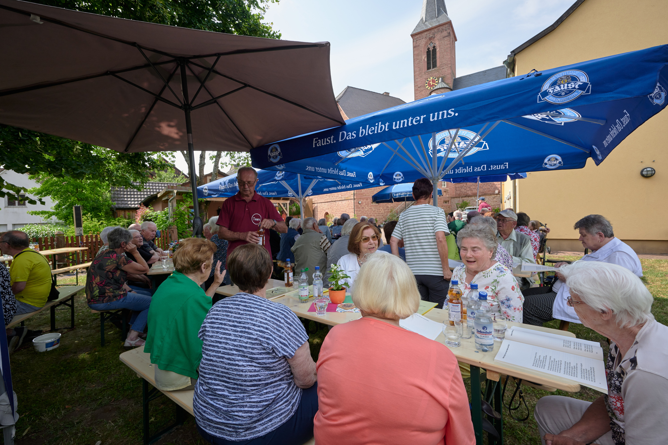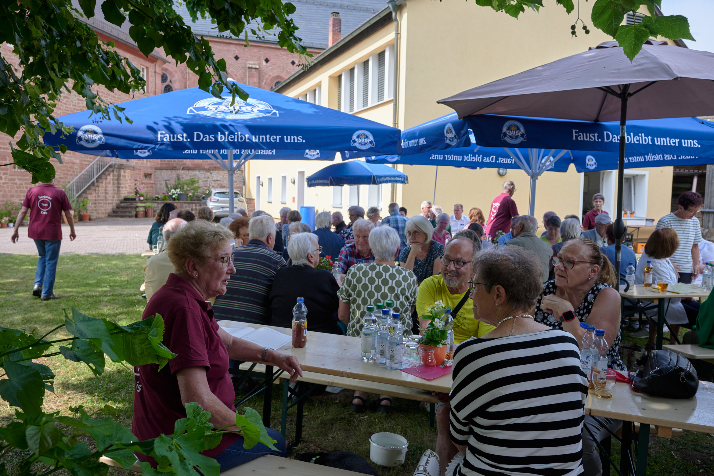 Maria Schöllig konnte gut 80 ältere Menschen begrüßen, das Team hatte unter der mächtigen Lind die Tische und Bänke gestellt.