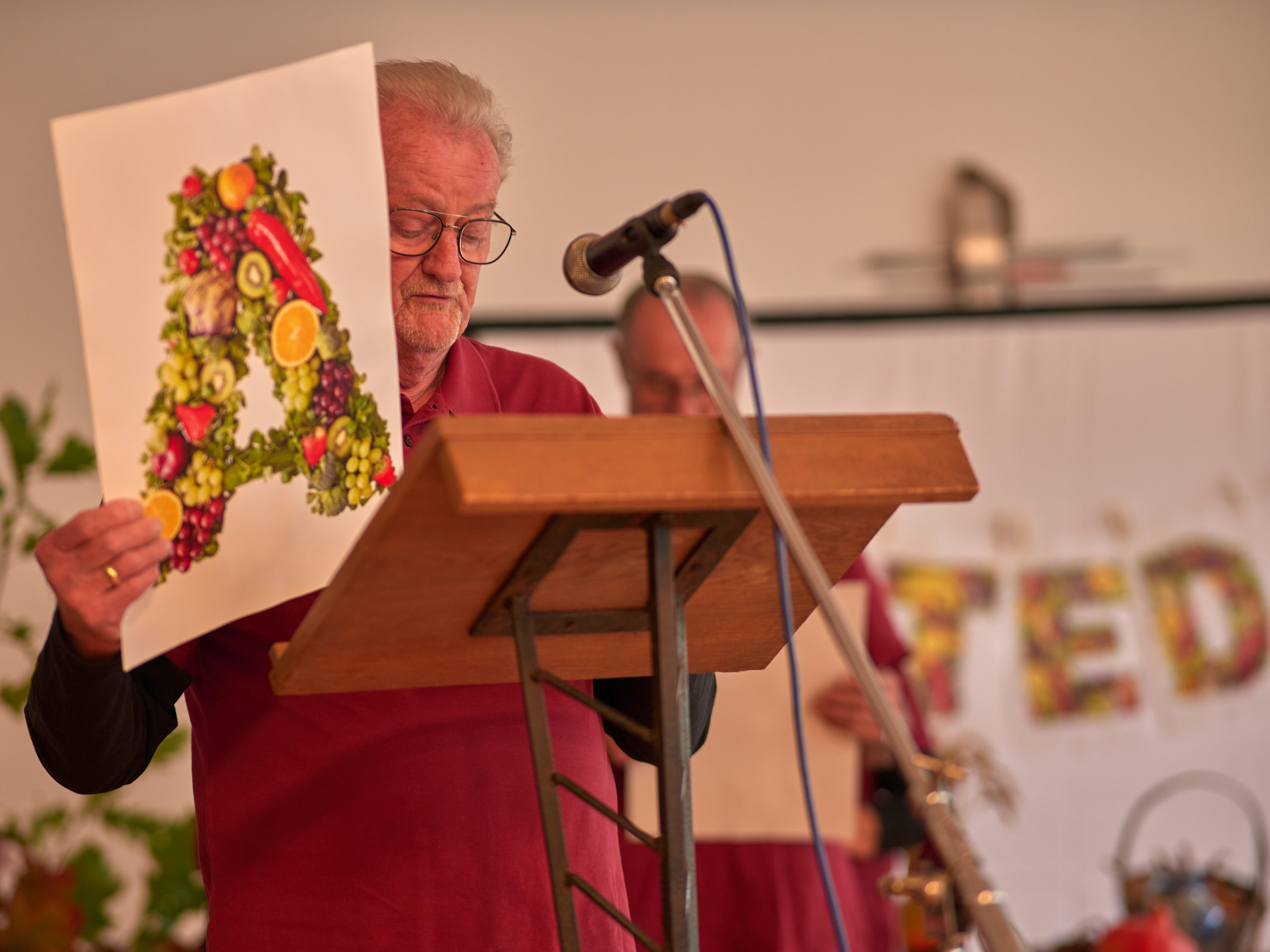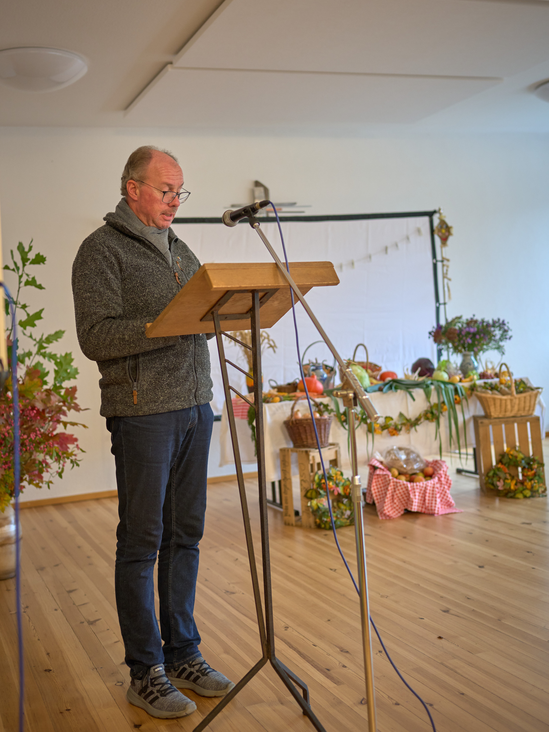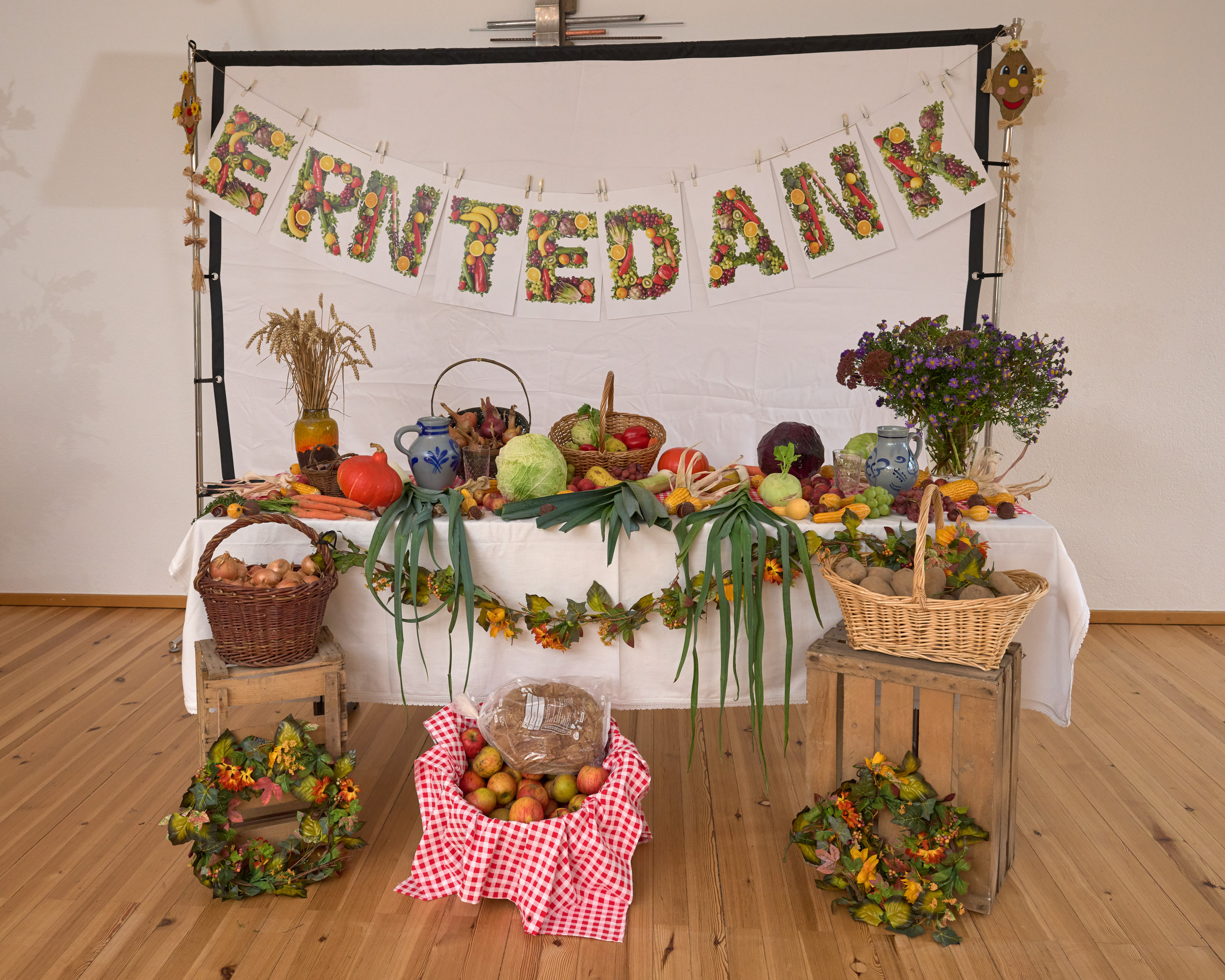 Das Team hatte liebevoll mit viel Mühe zum Detail für Erntedank geschmückt und es fand zu Beginn eine besinnliche Andacht mit Pfarrer Michael Prokschi statt.
