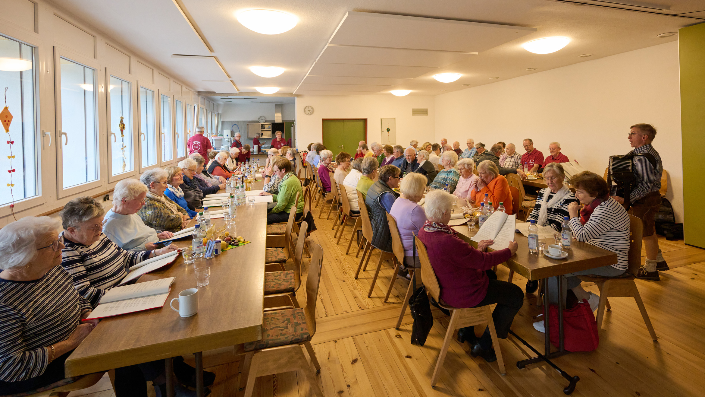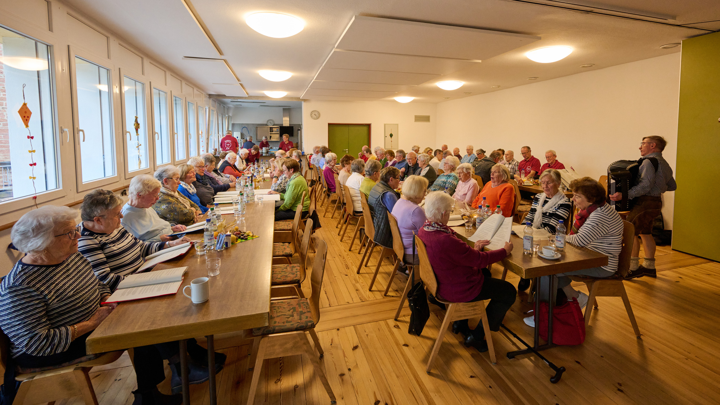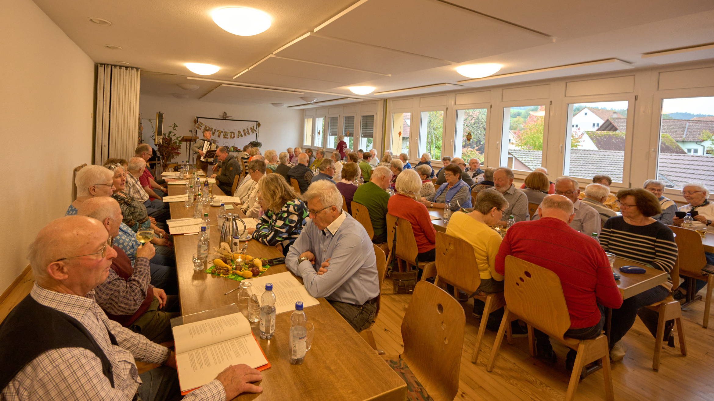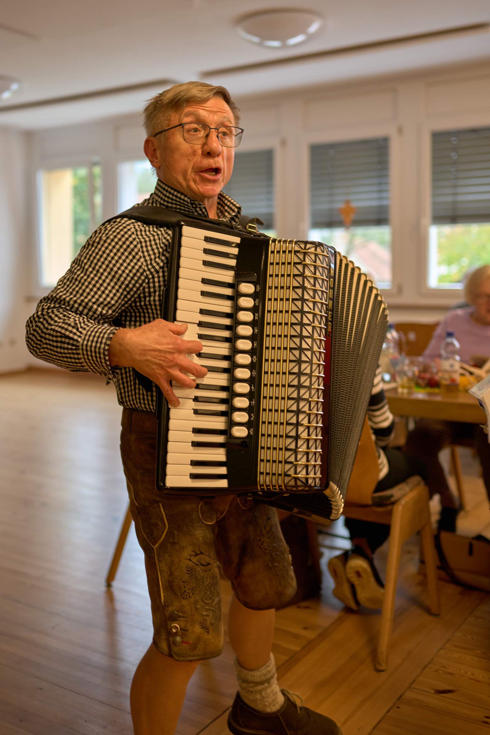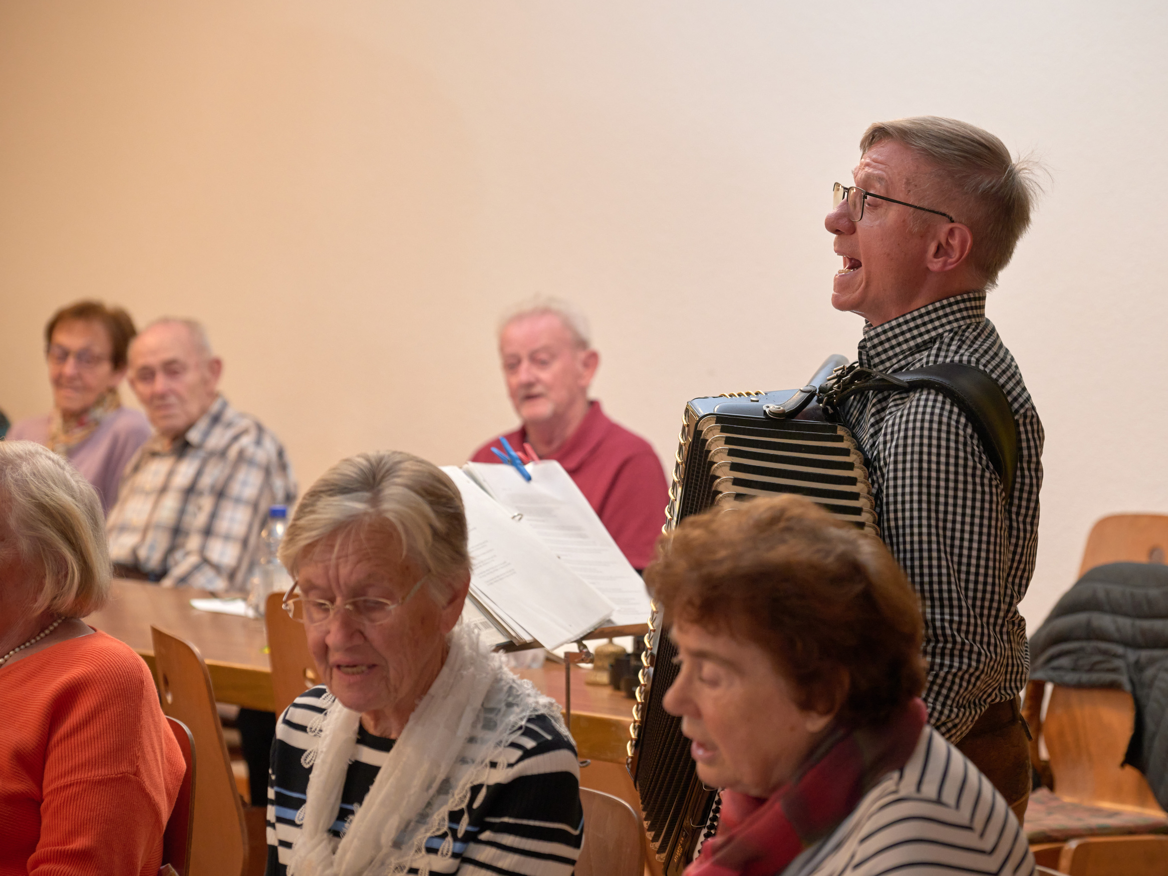 Zeit für Dankbarkeit, so der Gedanke. Marcel Markert begleitete das Beten und Singen. Nach einem stärkenden Kaffee und leckerem Kuchen sagen die älteren Gäste, unterstützt von Peter Horn bekannte Volkslieder wie auch Schlager. Geschichten und Gedichte lockerten den Nachmittag auf. Eine schmackhafte Gulaschsuppe rundete den gemeinsamen Nachmittag ab.